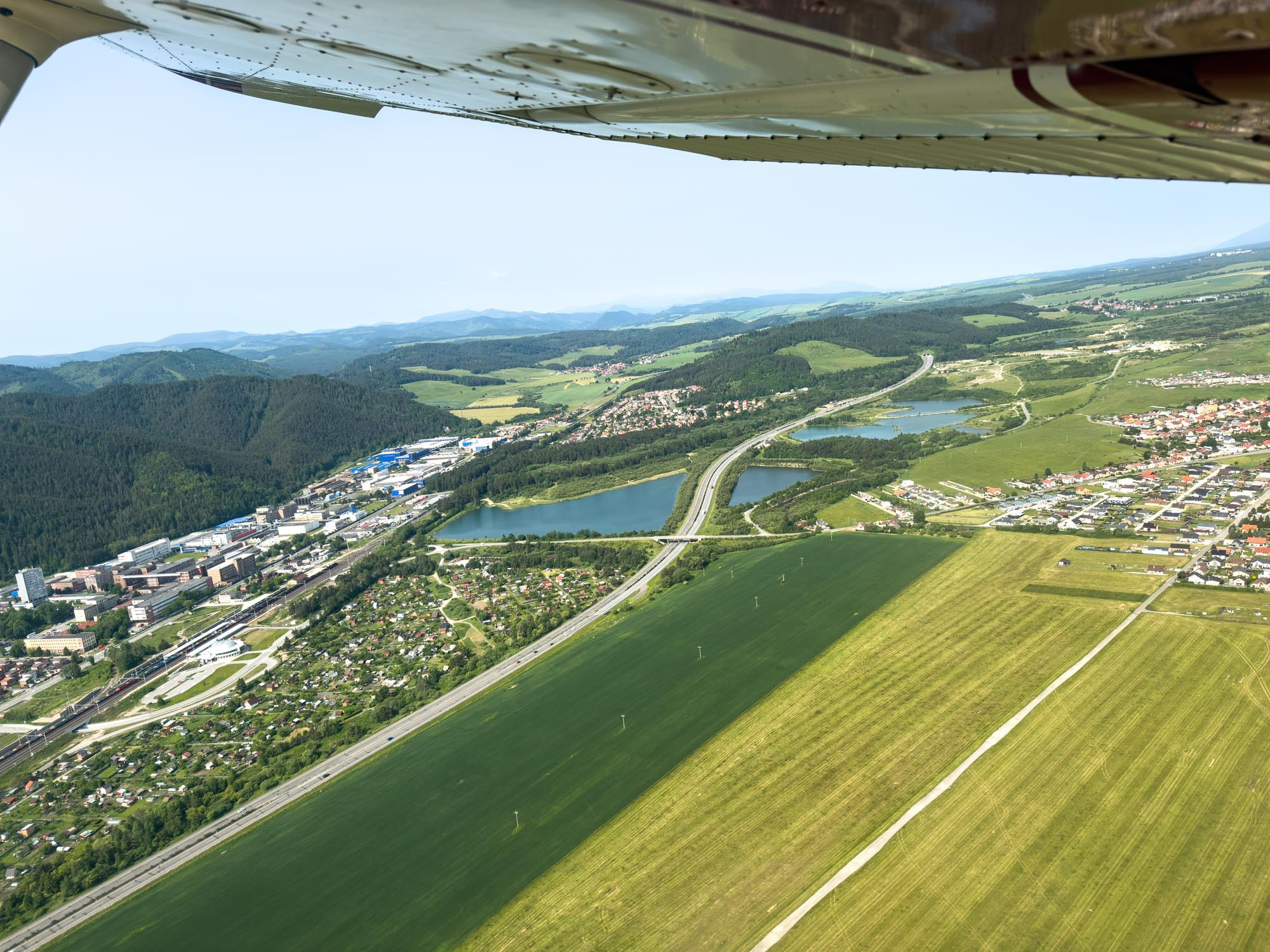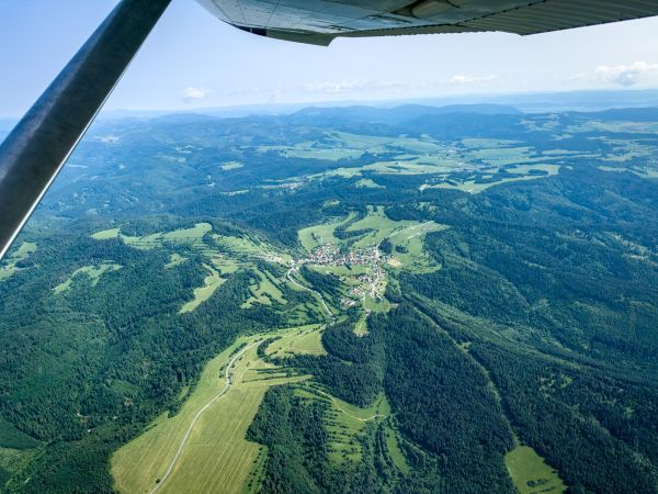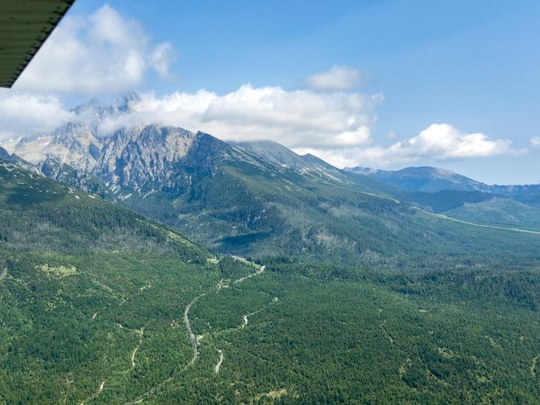 Wir starten in die Richtung, von der wir gekommen sind, überfliegen also Poprad und die Autobahn und sehen als nächstes schon das „Slowakischen Paradies“ (Nationalpark Slovenský raj). Hendrik darf jetzt das Steuer übernehmen und fliegt stolz den kleinen Flieger. Dann übernimmt wieder unser Pilot und Hendrik hat wieder die Kamera in der Hand.
