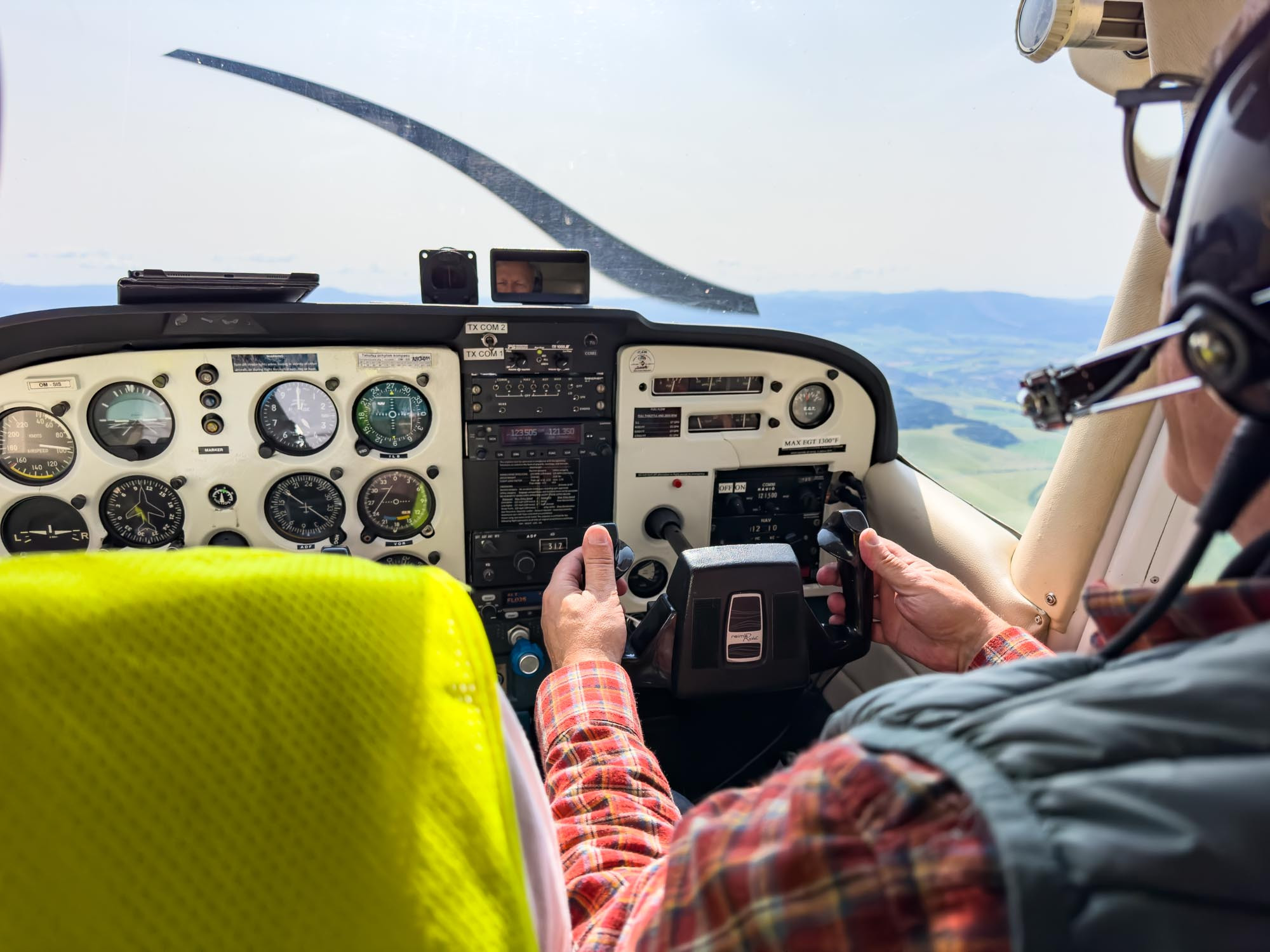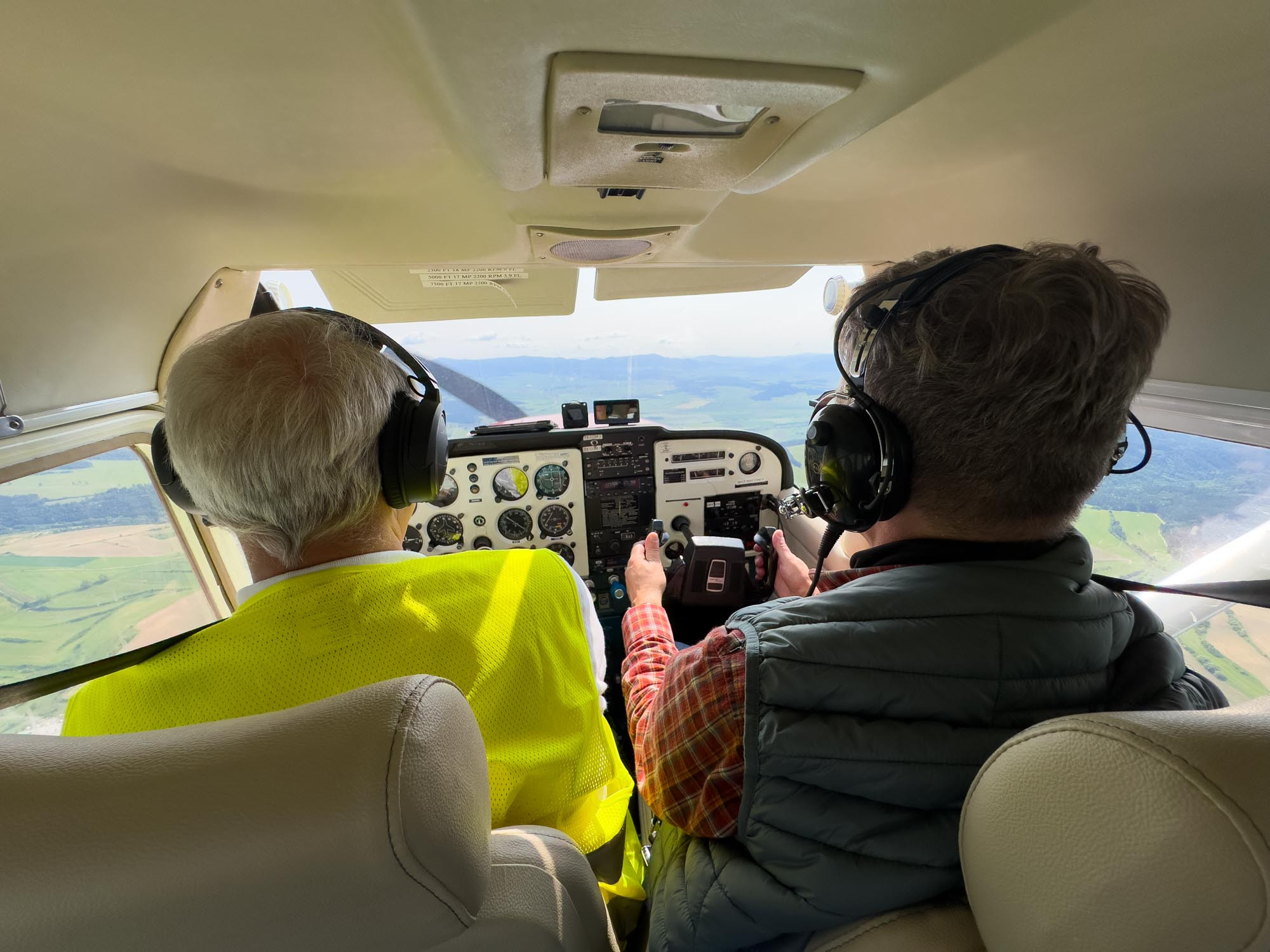 Wie auch immer, es wird schon gut gehen. Viel Platz ist nicht im kleinen Flieger. Wir bekommen Kopfhörer gegen den Lärm und das wir uns verständigen können, anschnallen und los gehts. Ich muss die ersten Minuten doch ziemlich gegen meine Höhenangst kämpfen, nach einer kurzen innerlichen Ansage an meinen Körper und Konzentration auf eine ruhige Atmung ist die aber im Griff und ich kann nach unten schauen und den Flug in vollen Zügen genießen.