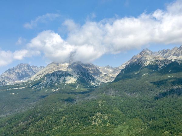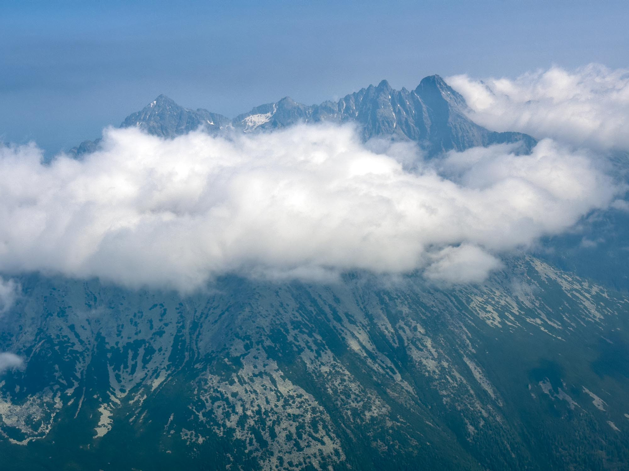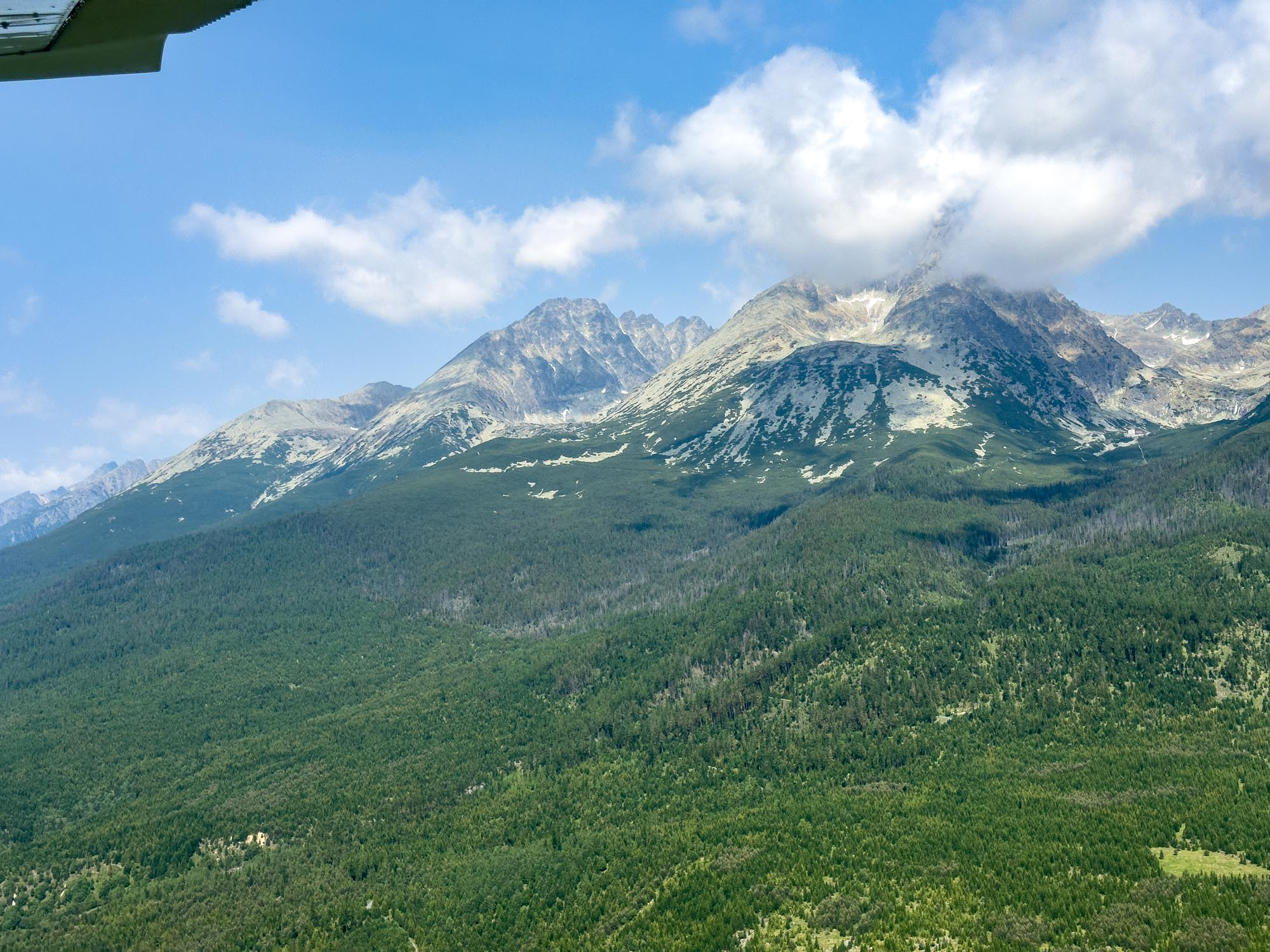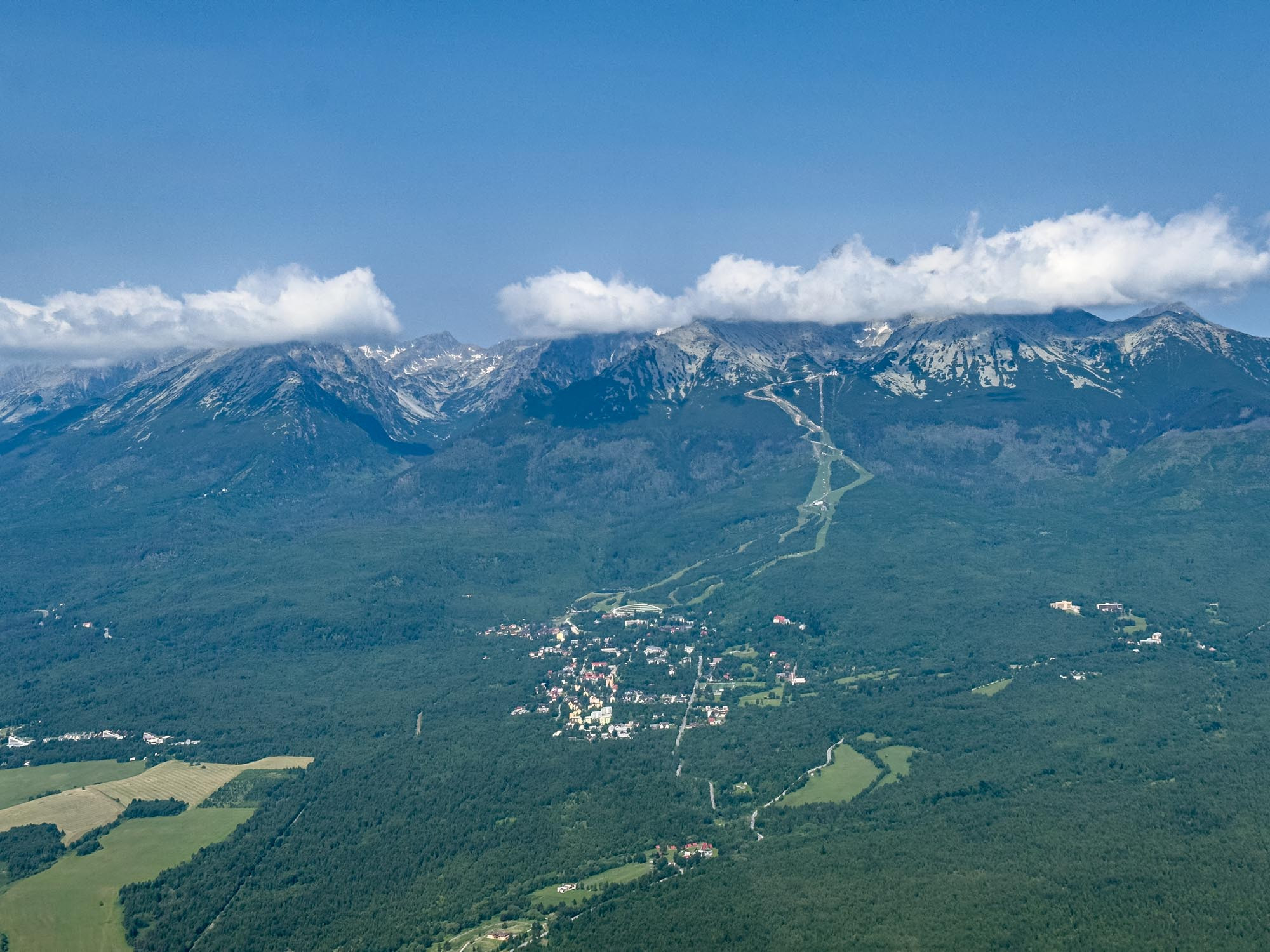 Die Berggipfel der Tatra mal "auf Augenhöhe" zu sehen, ist beeindruckend. Die Lomnitz Spitze, auf der wir letztes Jahr gewesen sind und wie sie alle auch heißen … Wir fliegen mal mit, mal über den Wolken, insgesamt sind es leider mittlerweile viele Wolken und es ist zuweilen ziemlich schwer, einen Blick in und auf die Bergwelt zu bekommen. Aber dafür sind es doch schöne Erinnerungsfotos geworden … Strbske Pleso, ein Kurort in der Hohen Tatra am Ufer des Tschirmer Sees fast zum Schluss.