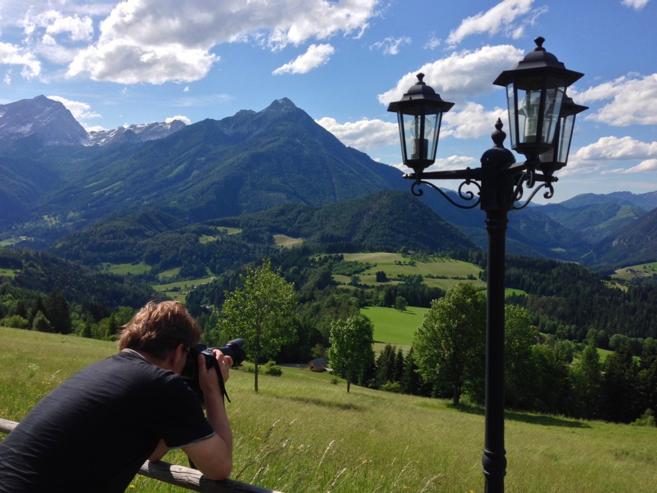 Heute stehen die Außenaufnahmen vom Gasthof "Sonnfeld" auf dem Programm. Das Wetter spielt jetzt zur Abwechslung auch mal mit und so sind uns schöne und vor allem brauchbare Fotos sicher:
