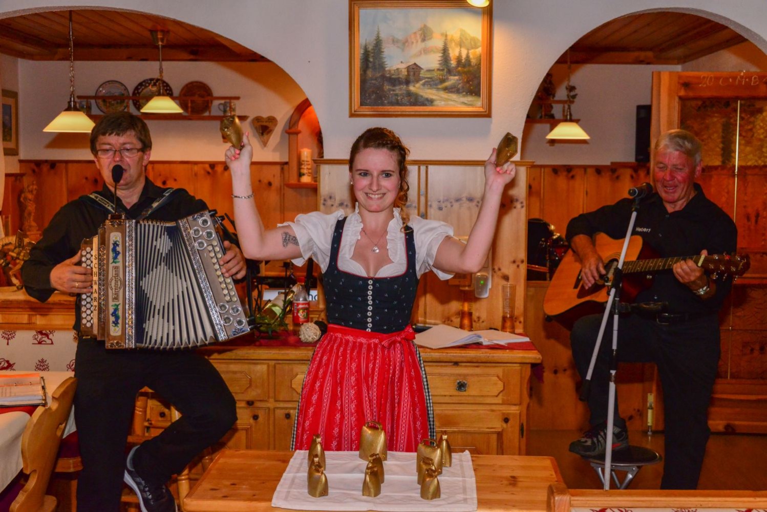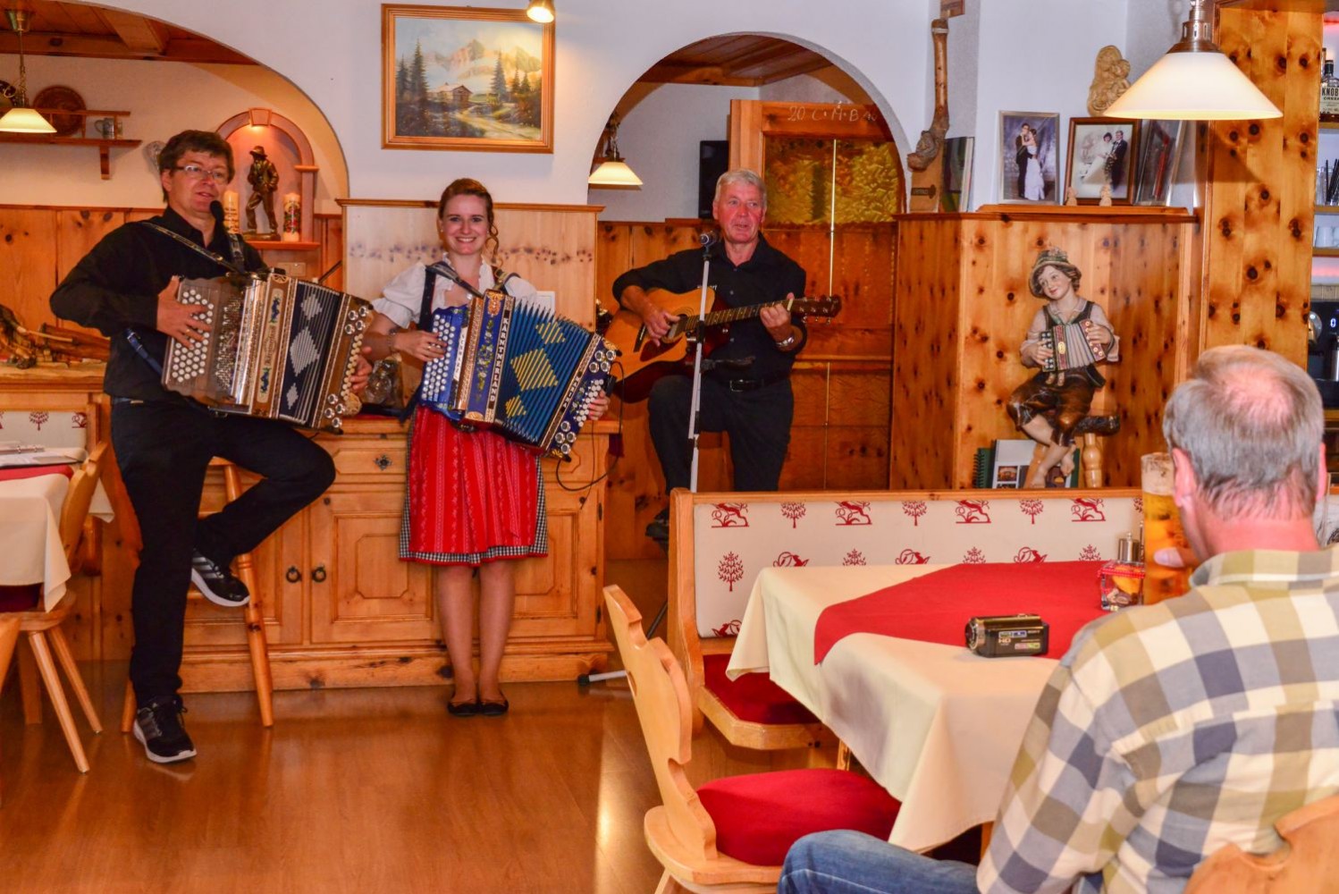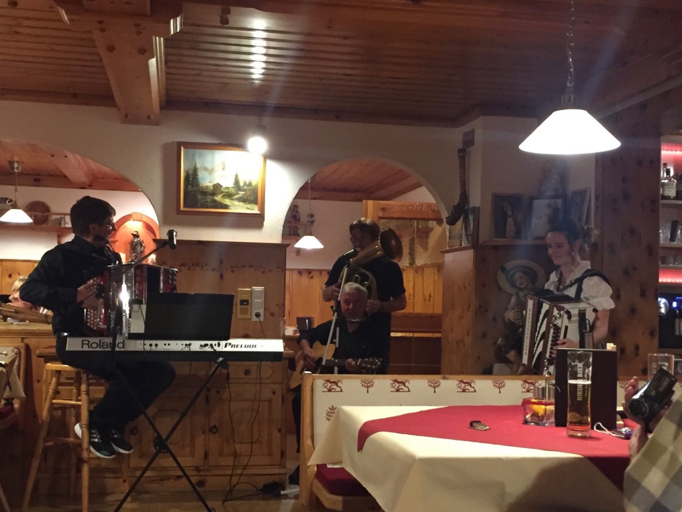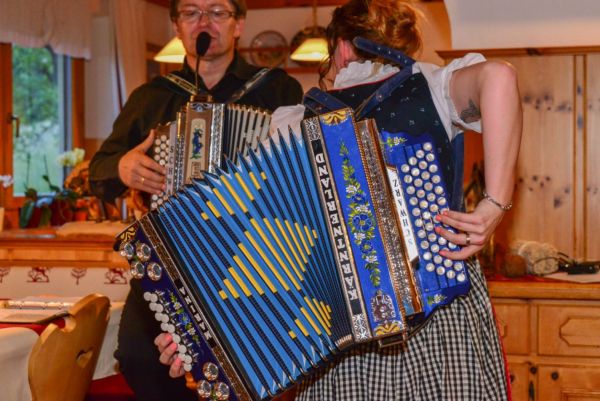 Am späten Nachmittag kaufen wir noch die letzten Dinge für unsere Fahrt nach Italien und Spanien ein und fangen schon ein wenig an mit Packen. Das fantastische Drei-Gänge-Menü bringt uns bauchplatzkapazitätsmäßig wieder an unsere Grenzen. Uns tun wirklich die Bäuche weh. Aber Schwächeln ist nicht, es steht noch ein traditioneller Hausmusikabend auf dem Programm. Und der wird genial! Was mit und auf einer Harmonika so alles möglich ist, das muss man einfach erlebt haben ...