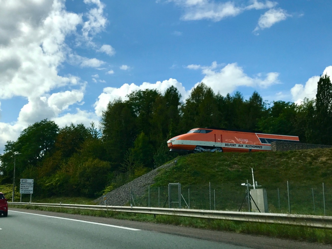 Ab der französischen Grenze ist unsere Fahrt entspannt und die Autos auf der Autobahn kann man zählen. Bei Belfort begrüßt uns schon all die Jahre Frankreichs erster Schnellzug, der TGV 001, der es nur bis heute auf noch kein Foto geschafft hat. Früher wurde der französische ICE hier gebaut, heute ist Belfort nur noch einer von vielen Bahnhöfen.