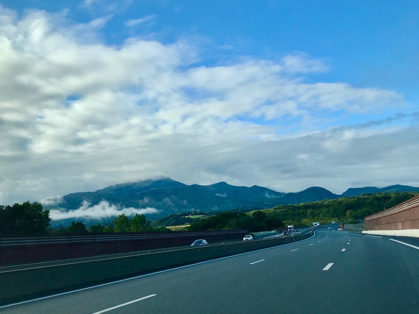 Der nächste Tag beginnt recht früh, wir sind gegen halb acht bereits wieder unterwegs. Die Sonne meint es gut es mit uns, perfektes Reisewetter! Am Horizont lassen die Pyrenäen grüßen.