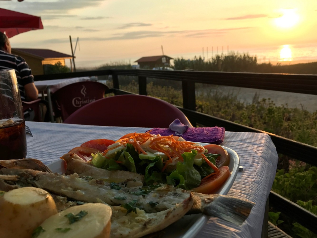 Ein Abendbrot im Sonnenuntergang haben wir nicht alle Tage und wir genießen diese Zeit in vollen Zügen. Jetzt belegen wir sozusagen die Plätze in der ersten Reihe und können uneingeschränkt beobachten, wie die Sonne im Meer versinkt … UND dabei kulinarische Höhepunkte erleben!