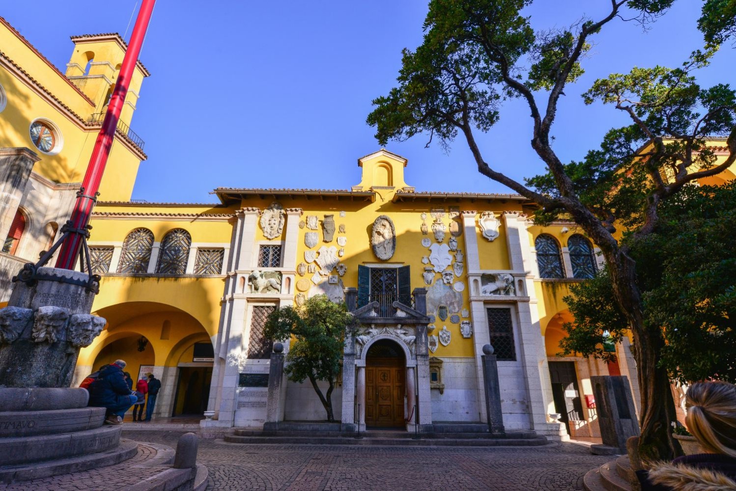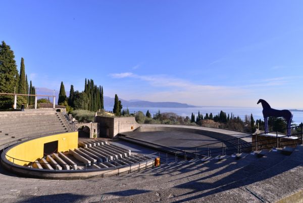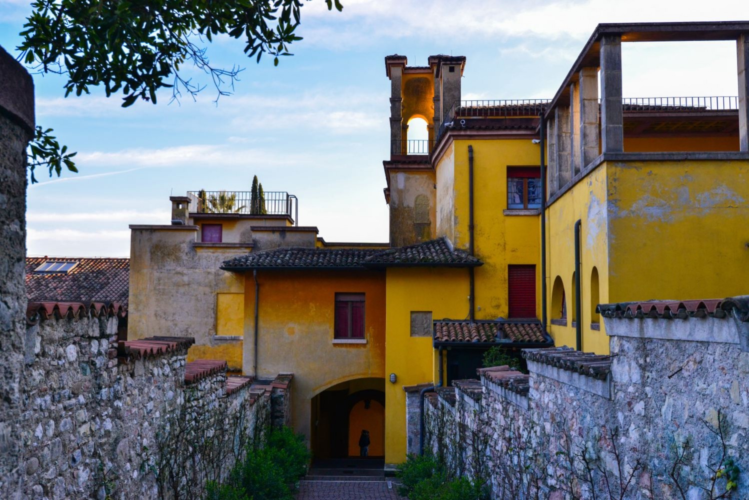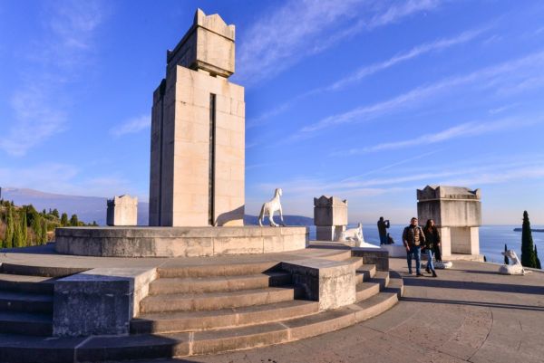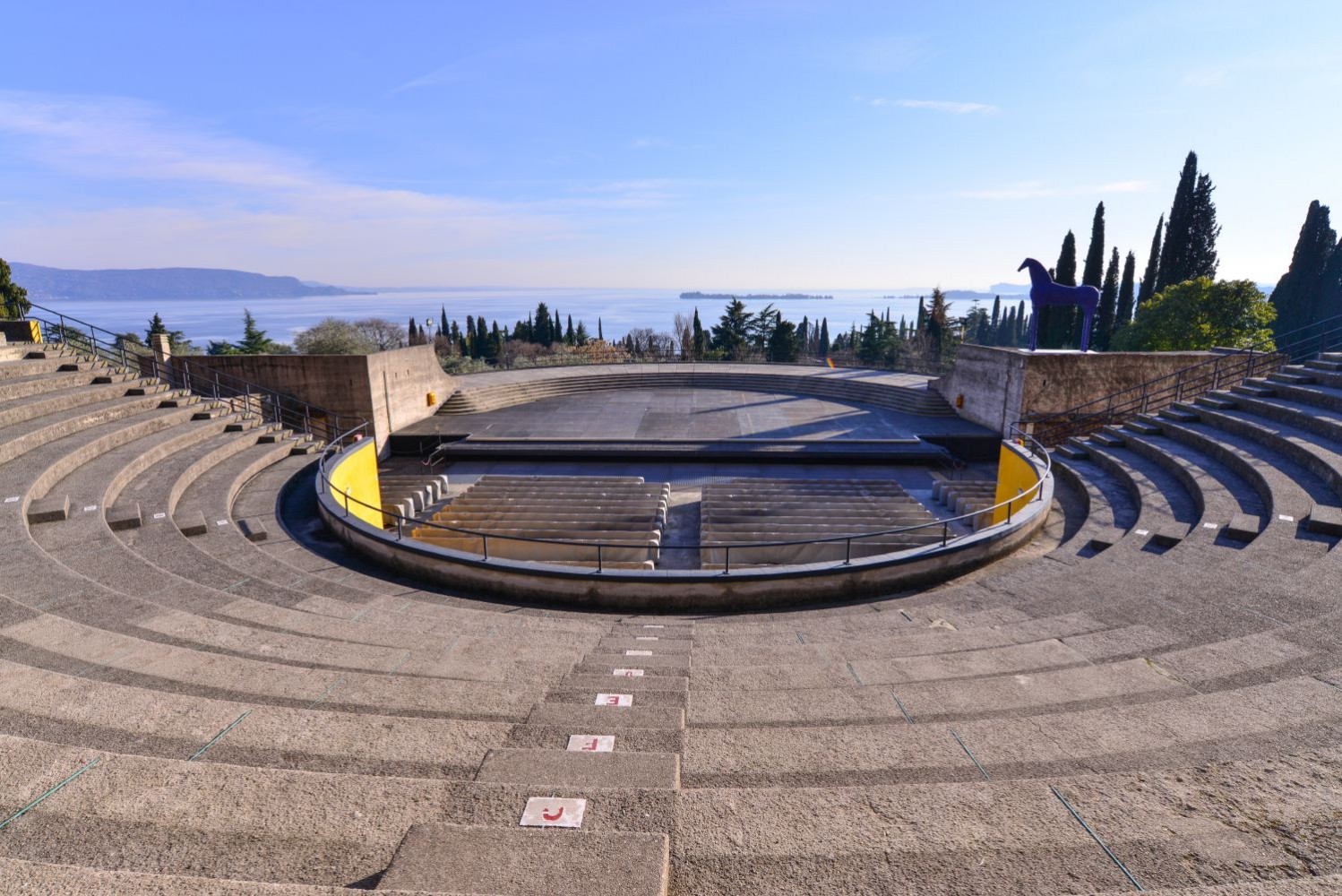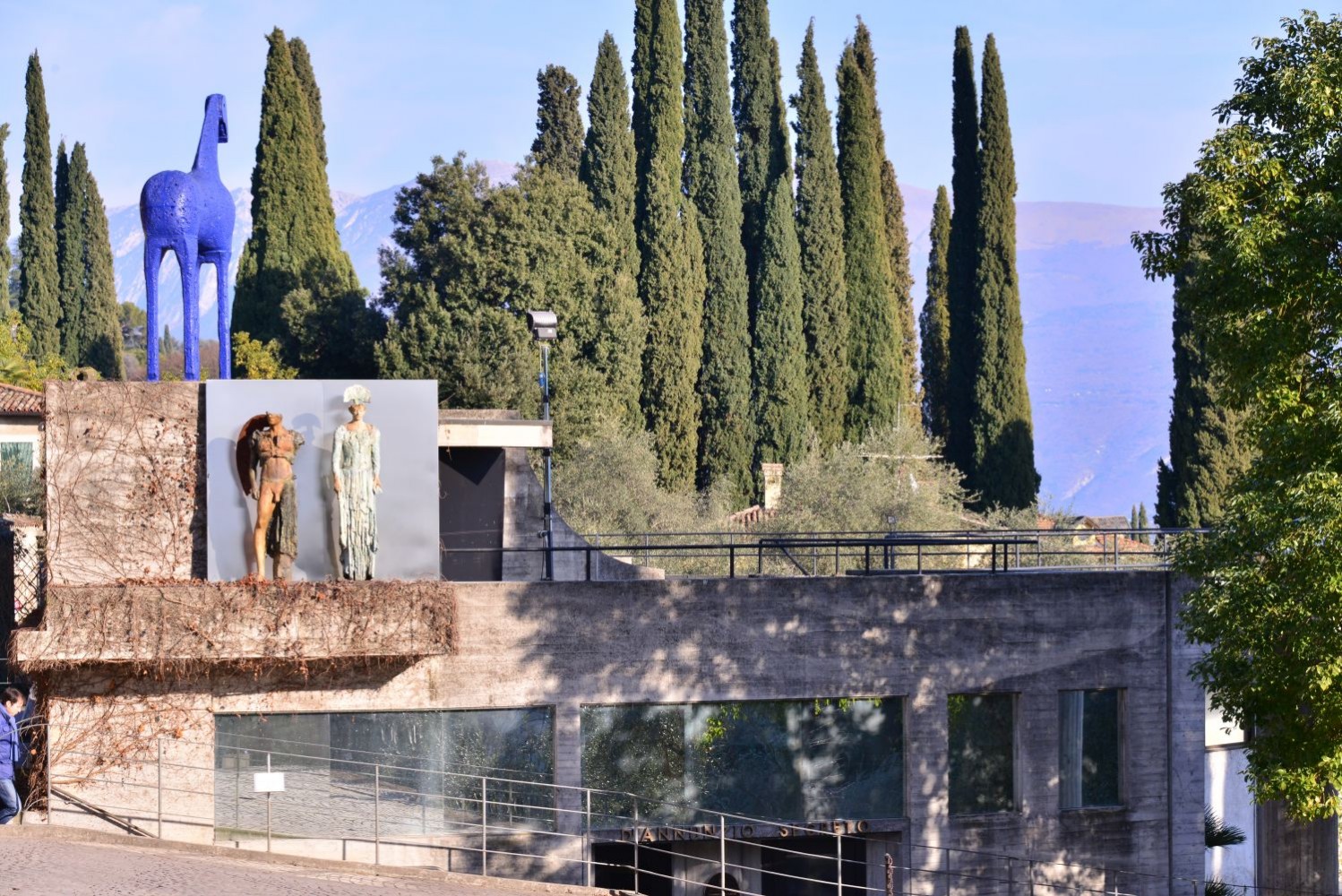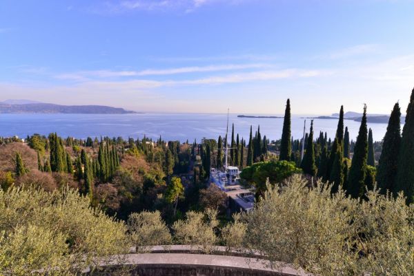 Unweit, genauer gesagt nur einen Ort weiter in Gardone Riviera, gibt es einen versteckten aber interessanten Museumskomplex, den „Vittoriale degli italiani“, deutsch etwa: „Siegerdenkmal der Italiener“ (Foto 1). Er ist der ehemalige Wohnsitz des italienischen Schriftstellers Gabriele D’Annunzio. Dieser ließ das Anwesen ab 1921 gestalten. Heute umfasst das parkähnliche Gelände neun Hektar und besteht aus Gebäuden, einem Freilichttheater, aus Gärten, kleineren Parks, Plätzen und Wasserspielen.