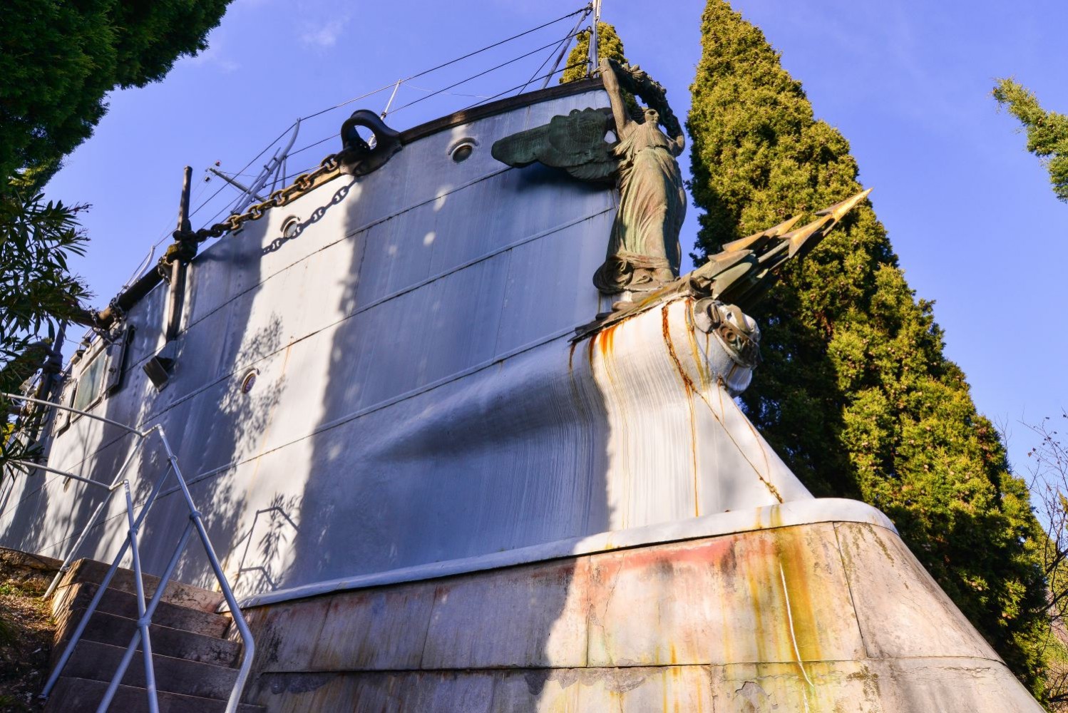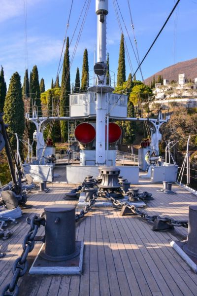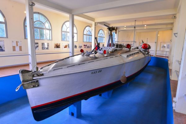 Das Torpedoboot (Foto 21) war 1923 ebenfalls ein Geschenk der italienischen Marine an den Dichter. Heute steht es in einer eigens für das Boot entworfenen Halle, an deren Außenwand das Motto Memento Audere Semper („Denke daran, immer zu wagen“) zu lesen ist (Foto 22).