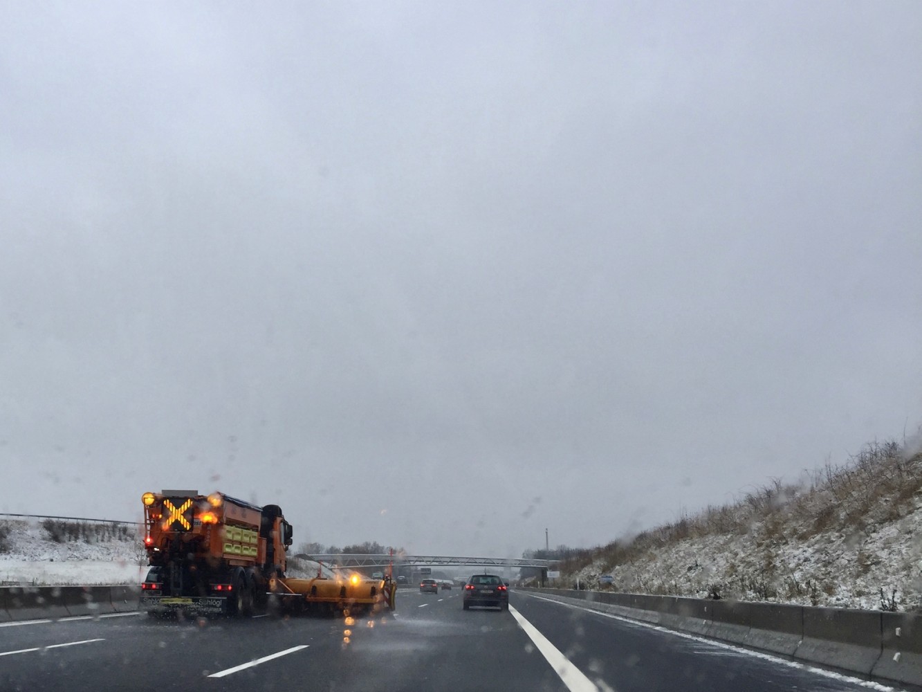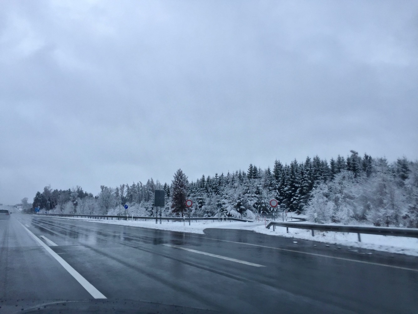 Reichlich 800 km liegen vor uns. Eigentlich kein Problem (eher "Wochenendausflugsradius"), aber das Wetter spielt nicht mit. Es regnet, schneeregnet, schneit seit Fahrtantritt und die Prognose verheißt nichts wirklich Gutes.