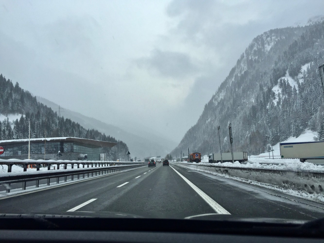 Auf der Inntal-AB geht es dann endlich ruhiger und flüssiger zu. Hier sind zwar nur 100 km/h erlaubt, aber die können wir endlich entspannt fahren. Ab Innsbruck versucht stellenweise sogar die Sonne sich einen Weg durch die Wolken zu bahnen.