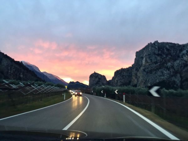 Bei der Anfahrt an den Gardasee werden wir für unsere Strapazen belohnt. Der Himmel begrüßt uns hier in allen Farben und wir sind uns sicher, wieder einmal alles richtig gemacht zu haben ...