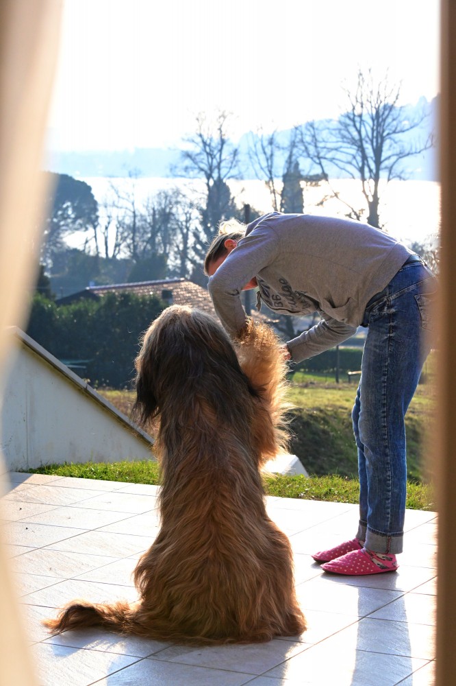 Heute Morgen gibt die Sonne wieder alles. Da wird - neben unserem Ausgehstyling - auch der Vierbeiner in Spezial-Herzchen-Frisierpantoffeln [smily5] von Ariane noch hübsch gemacht und los geht es, neue Fleckchen rund um den Iseosee zu ergründen.