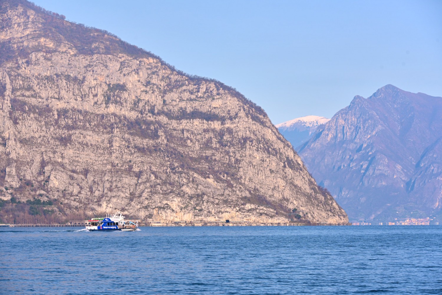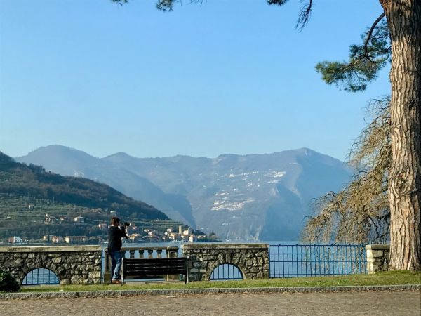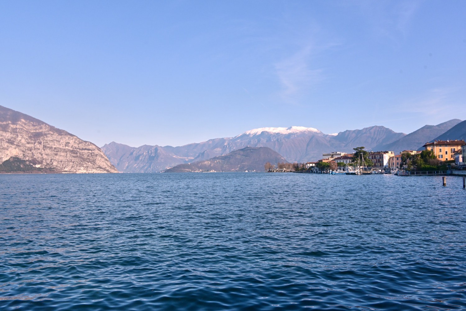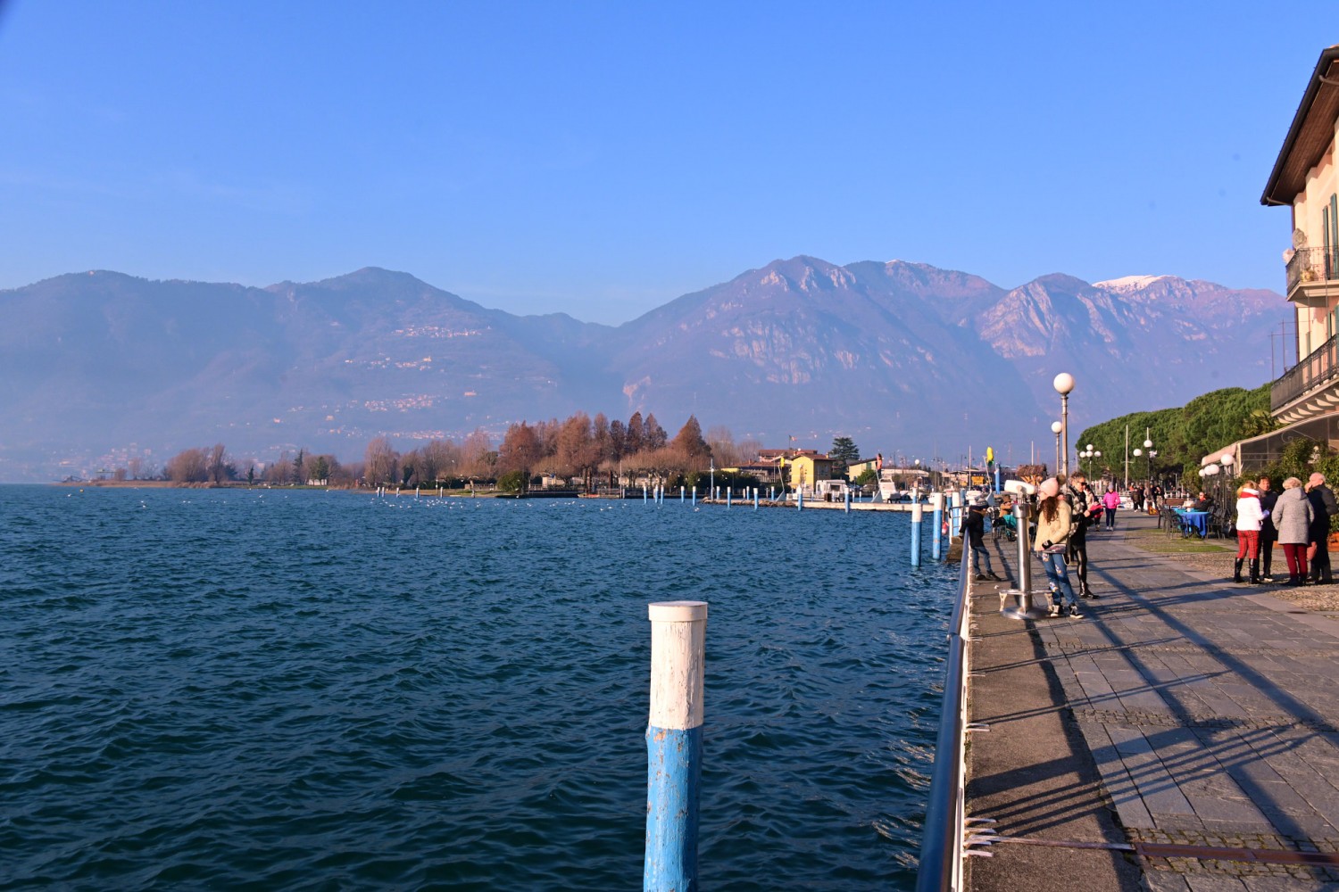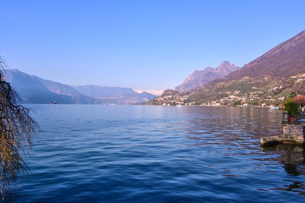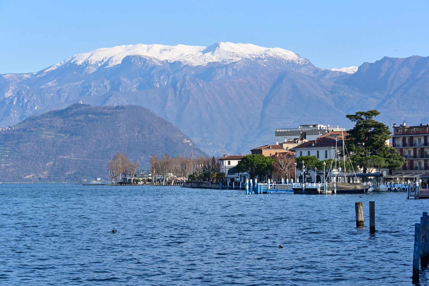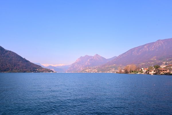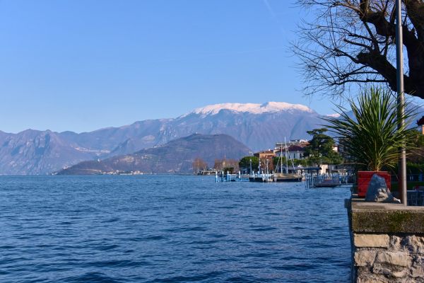 Von der Seepromenade aus gibt es einen faszinierenden Blick auf die Bergwelt rund um den See, die teils Schnee bedeckten Gipfel und die „Monte Isola“, die Insel im Iseosee, die dank Christos „Floating Piers“ 2016 über das Wasser gehend zu Fuß zu erreichen war. Wie das damals aussah, sehr ihr hier: