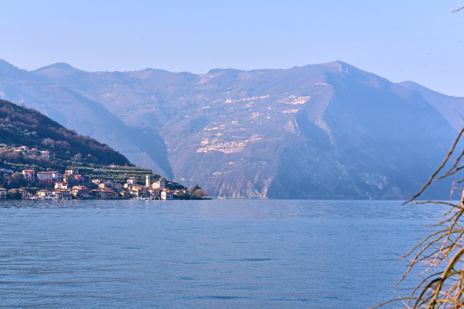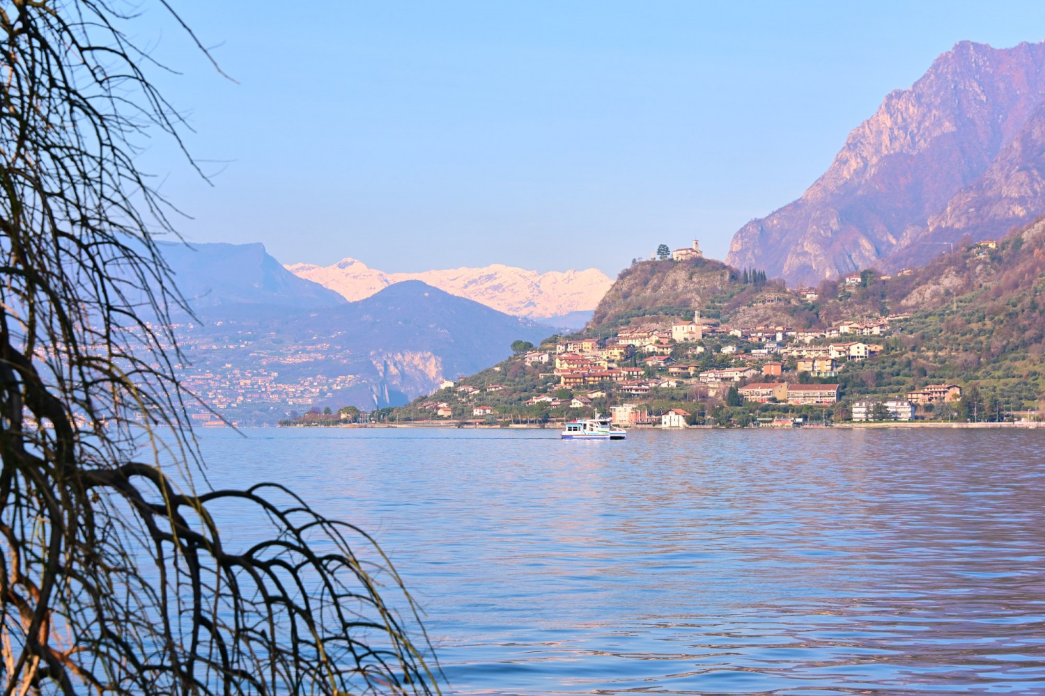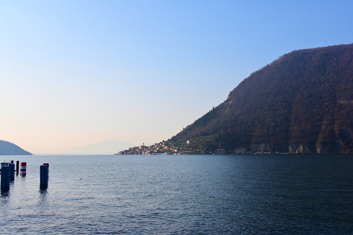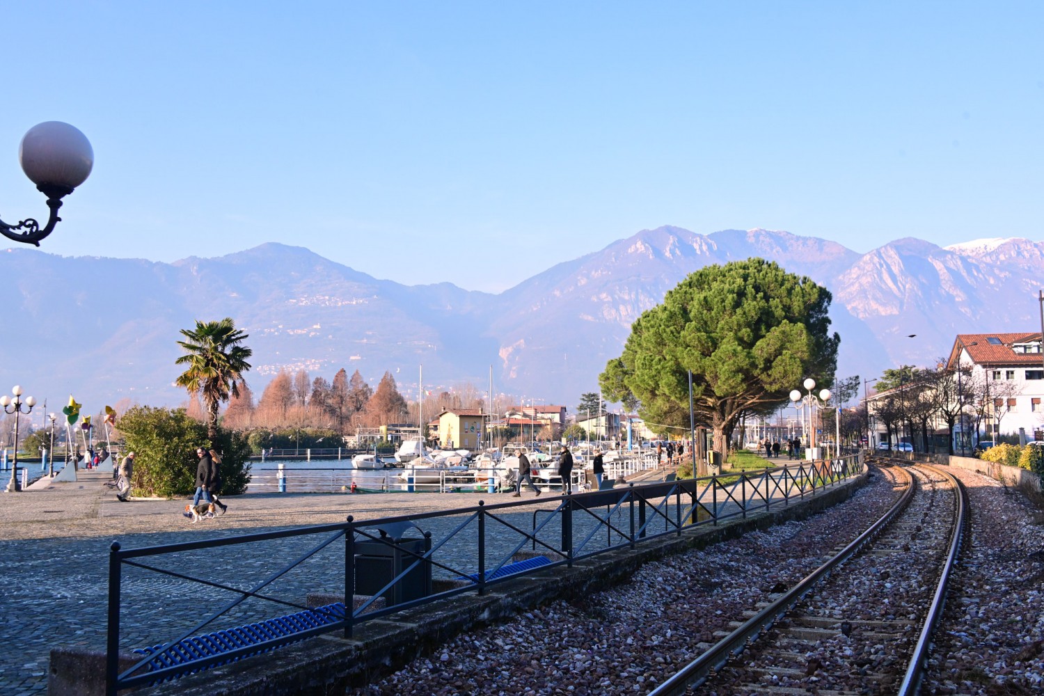 Von der Seepromenade aus gibt es einen faszinierenden Blick auf die Bergwelt rund um den See, die teils Schnee bedeckten Gipfel und die „Monte Isola“, die Insel im Iseosee, die dank Christos „Floating Piers“ 2016 über das Wasser gehend zu Fuß zu erreichen war. Wie das damals aussah, sehr ihr hier: