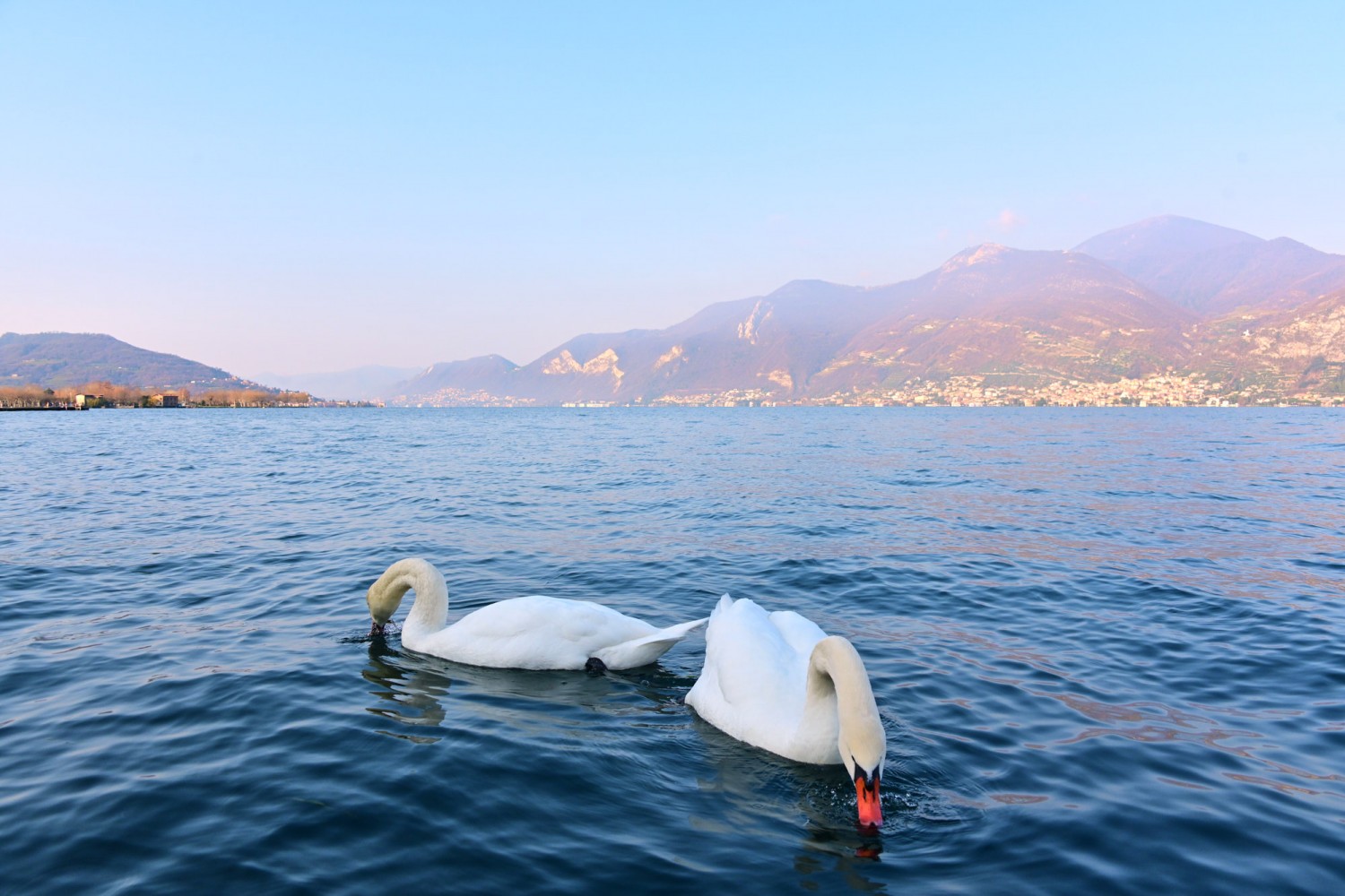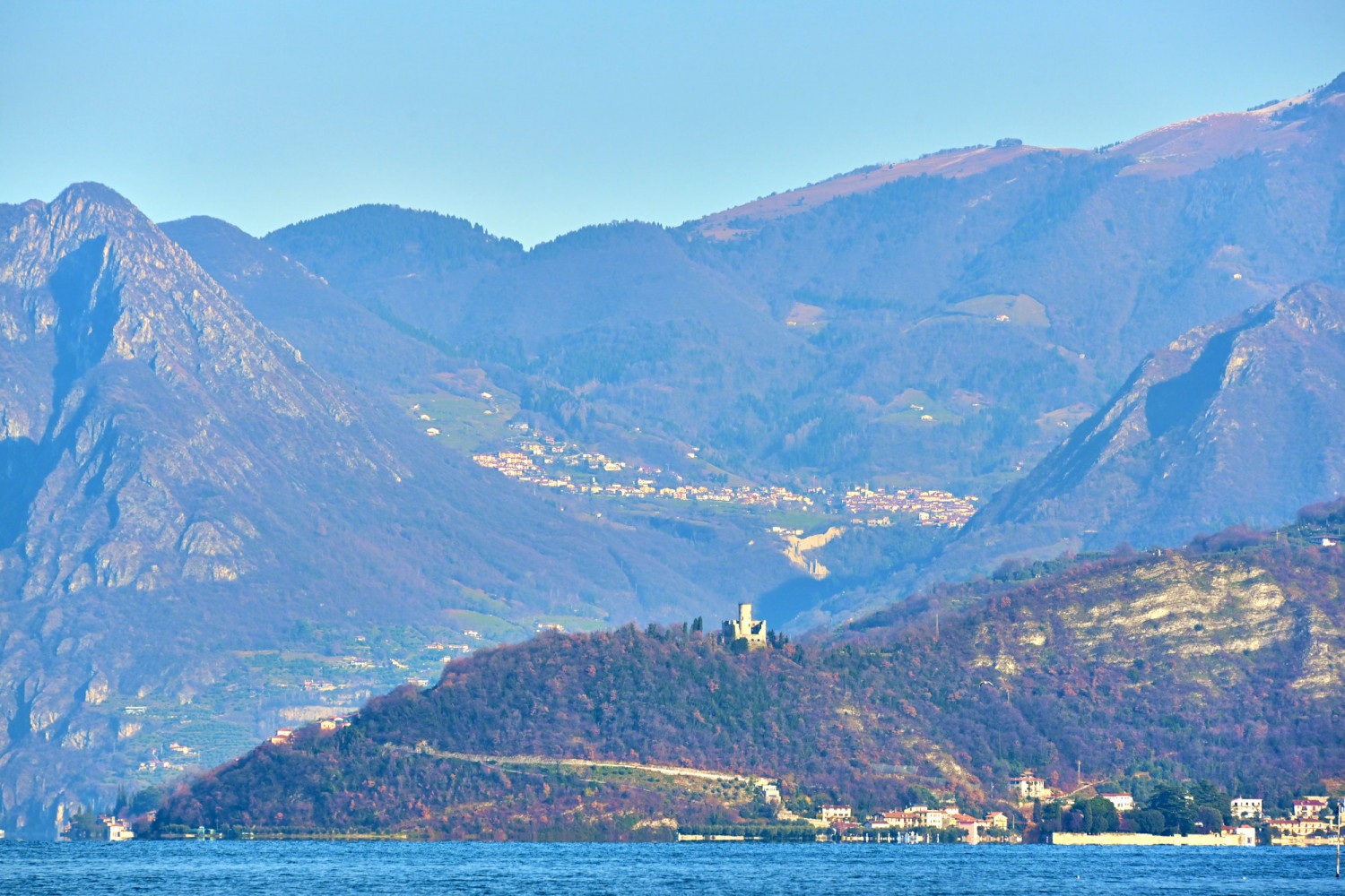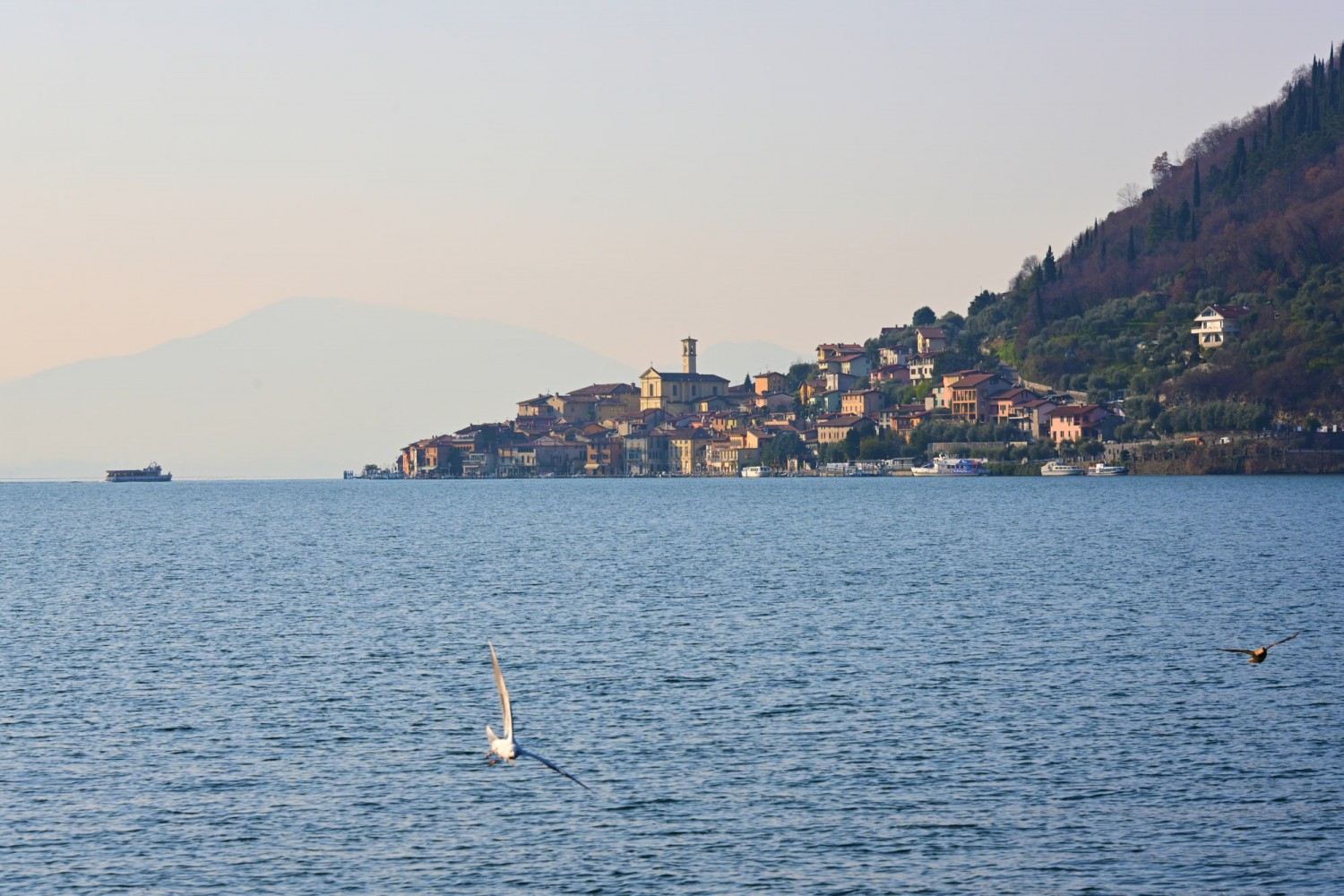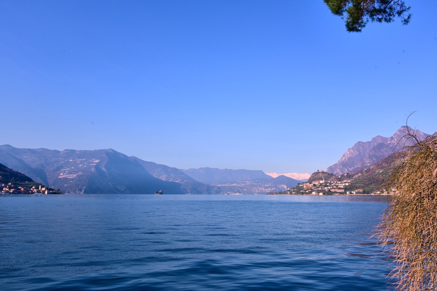 Von der Seepromenade aus gibt es einen faszinierenden Blick auf die Bergwelt rund um den See, die teils Schnee bedeckten Gipfel und die „Monte Isola“, die Insel im Iseosee, die dank Christos „Floating Piers“ 2016 über das Wasser gehend zu Fuß zu erreichen war. Wie das damals aussah, sehr ihr hier: