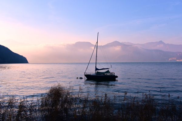 Je weiter wir wieder in Richtung See hinunter gelangen, um so dichter wird der Nebel. Wir fahren dennoch weiter am Ostufer entlang ins mittelalterliche Dorf Pisogne am nordöstlichen Ende des Sees. Hier ist kein Nebel, noch nicht. Aber viel Zeit haben wir nicht mehr. Der Wind bläst hier schon stärker und kälter, es ist unangenehm und auch die Sonne vermag nicht mehr wirklich zu wärmen. So schlendern wir hier nur kurz am See entlang, verweilen kurz in einem geschützten Cafe und sehen dann die Nebelwand direkt auf uns zu kommen.