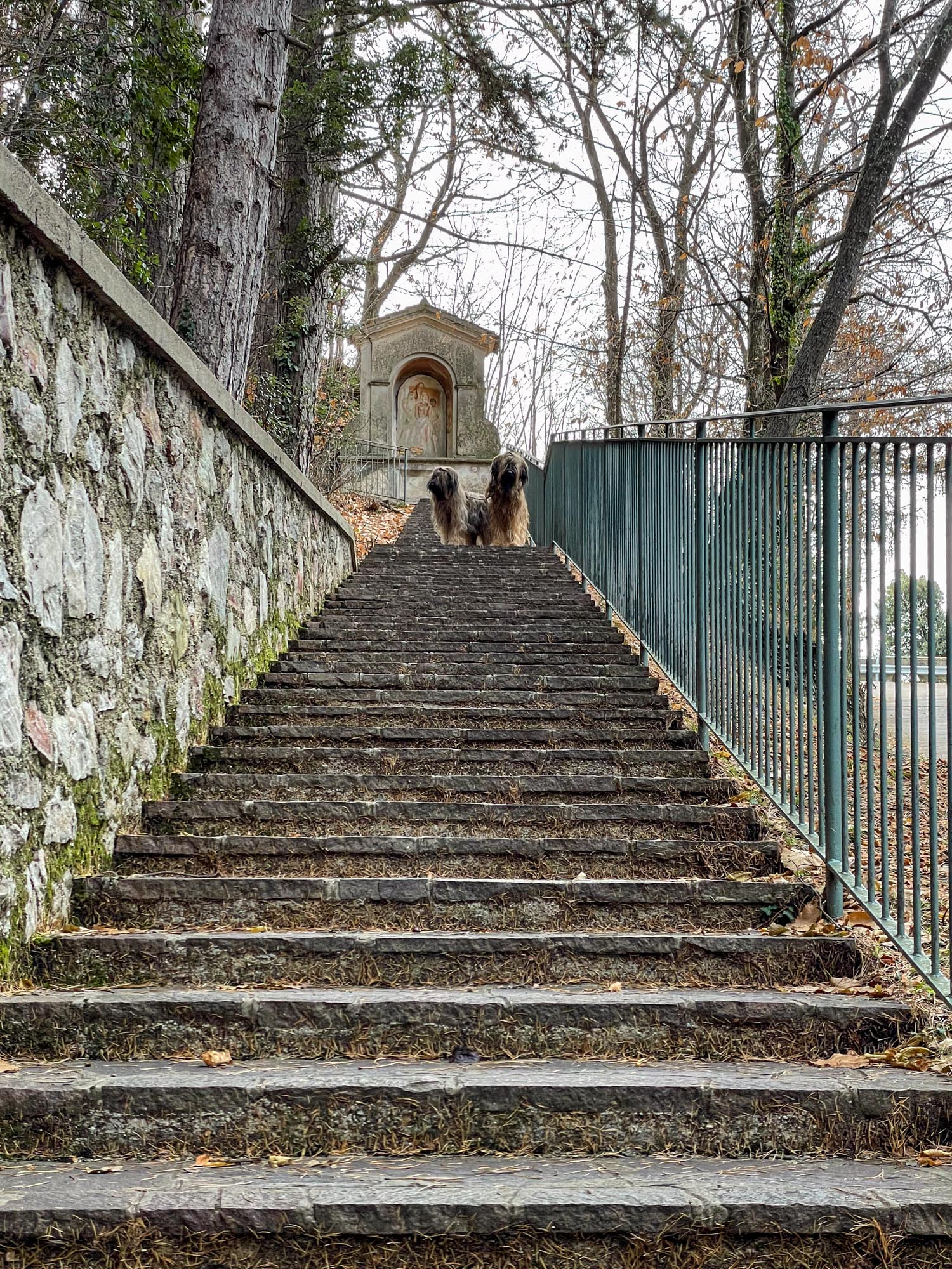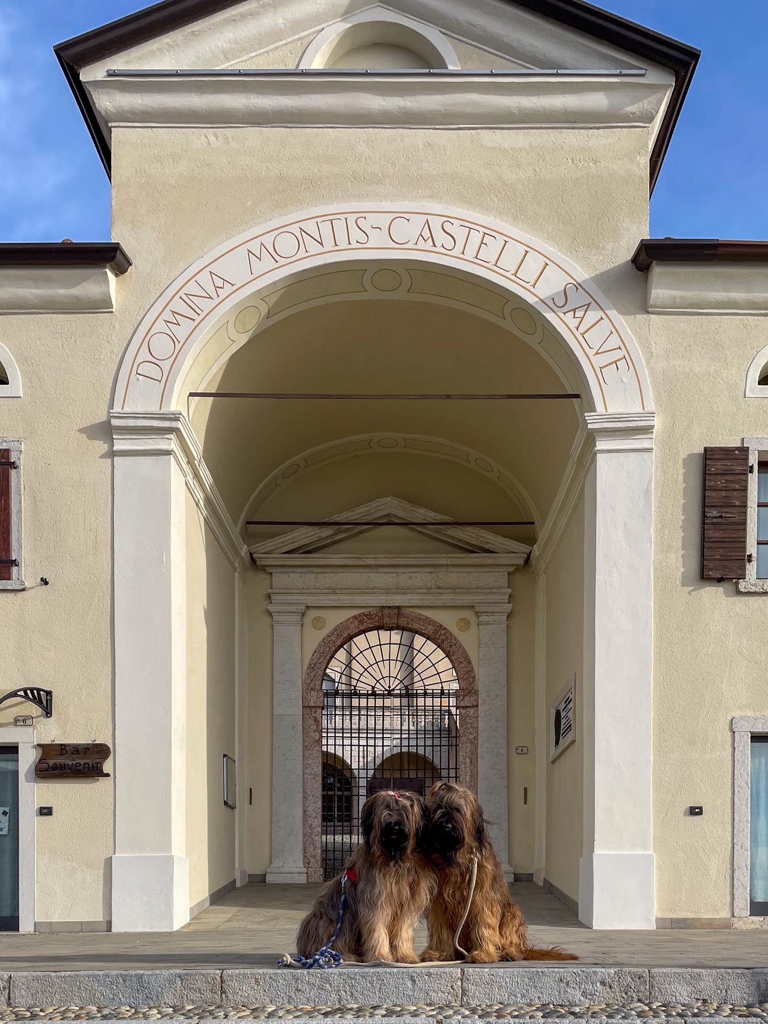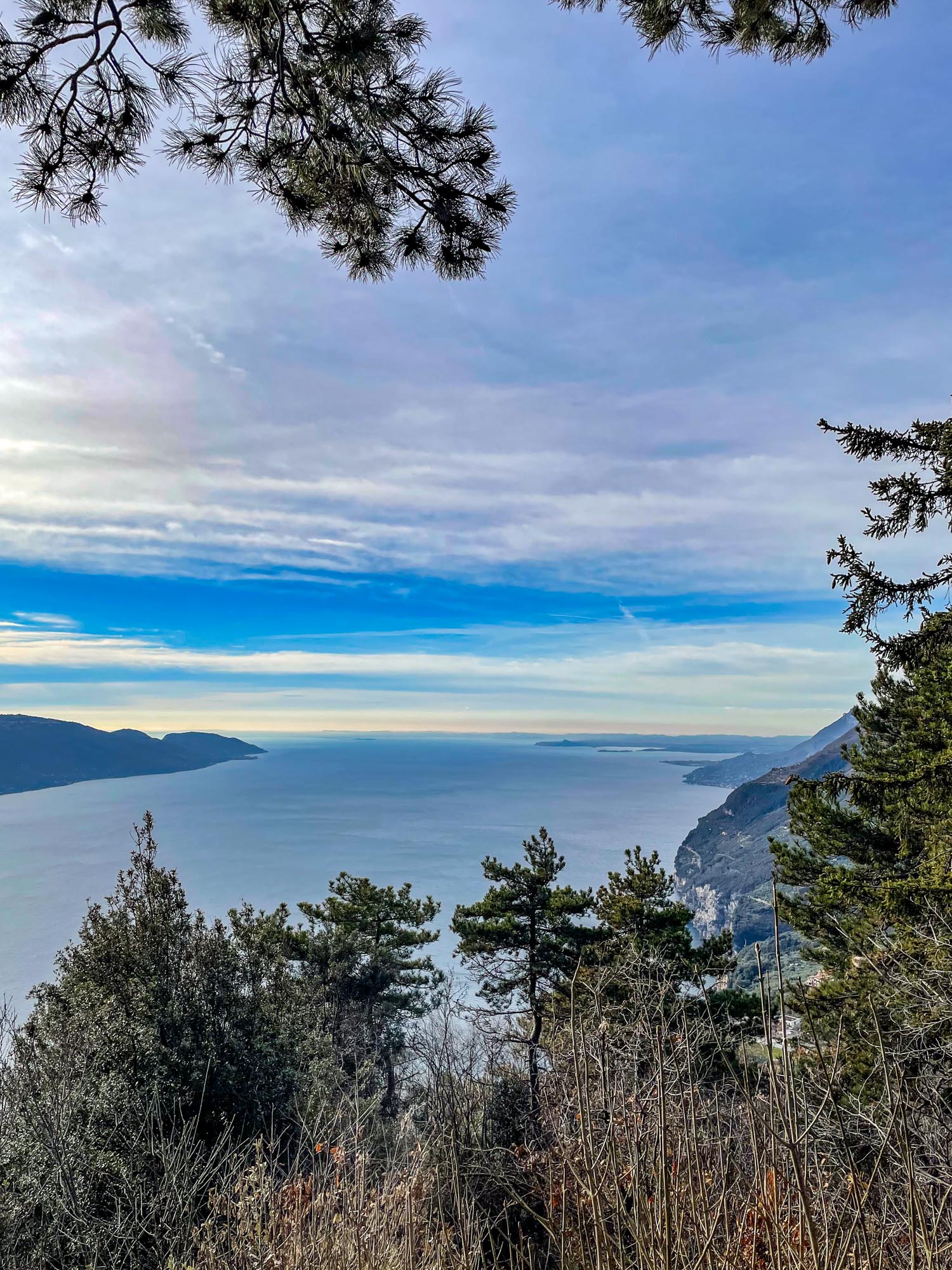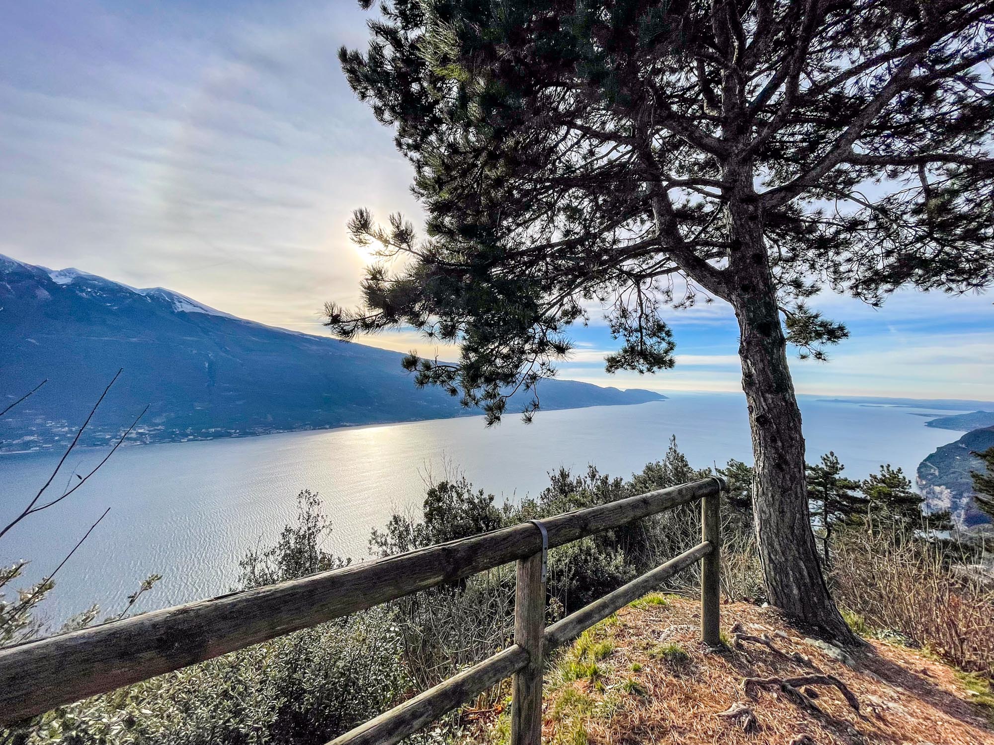 Während Hendrik noch die knapp 2.000 Notdienste auf die Webseite und den Screen einarbeitet, gibt es für Hunde und Frauchen eine große Hunderunde. Hinter unserem Haus geht es auf knapp 2 km rund 130 Meter bergauf zur »Geheiligte Stätte Santuario di Montecastello« mit der Katholische Kirche »Eremo di Montecastello«. Von hier aus hat man, wie schon auf Fotos im Silvester-Reiseblog von 2021 zu sehen ist, einen fantastischen Blick auf den Gardasee. Vom Süden und der Ostseite des Gardasees ist der steile Felsen mit der Kirche schon von weitem zu sehen.