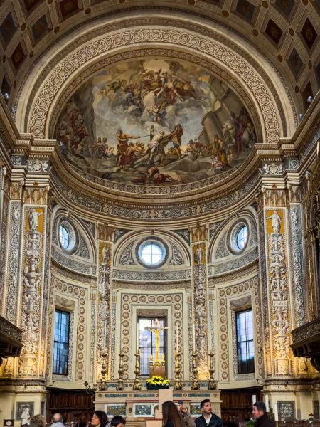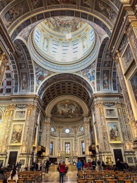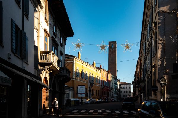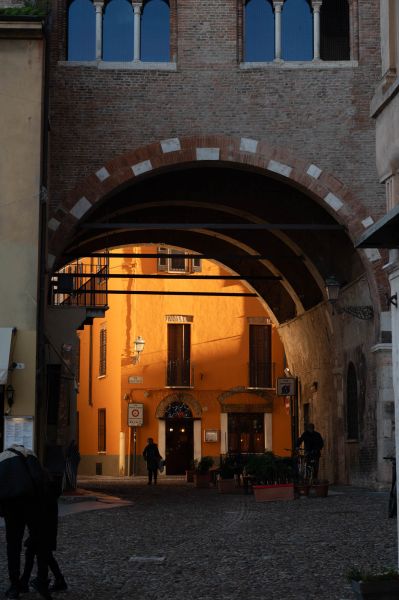 Mantua zeigte sich uns als quirlige Stadt mit vielen Menschen, zu unserer Freude ohne einen einzigen (erkennbaren) Touristen. Eine typische Stadt mit größeren Straßen und engen Gassen, große und mächtige Häuser, filigran saniert und einige stark heruntergekommen. Das sicher größte Highlight ist die imposante Renaissancekirche »Basilica di Sant'Andrea« mit beeindruckendem Gewölbe und Reliquiar, der das Blut Christi enthalten soll. Hat eine Straße am späten Nachmittag den richtigen Winkel, kann man auch zwischen den hohen Häusern ein paar vom Tag übrige Sonnenstrahlen erhaschen.