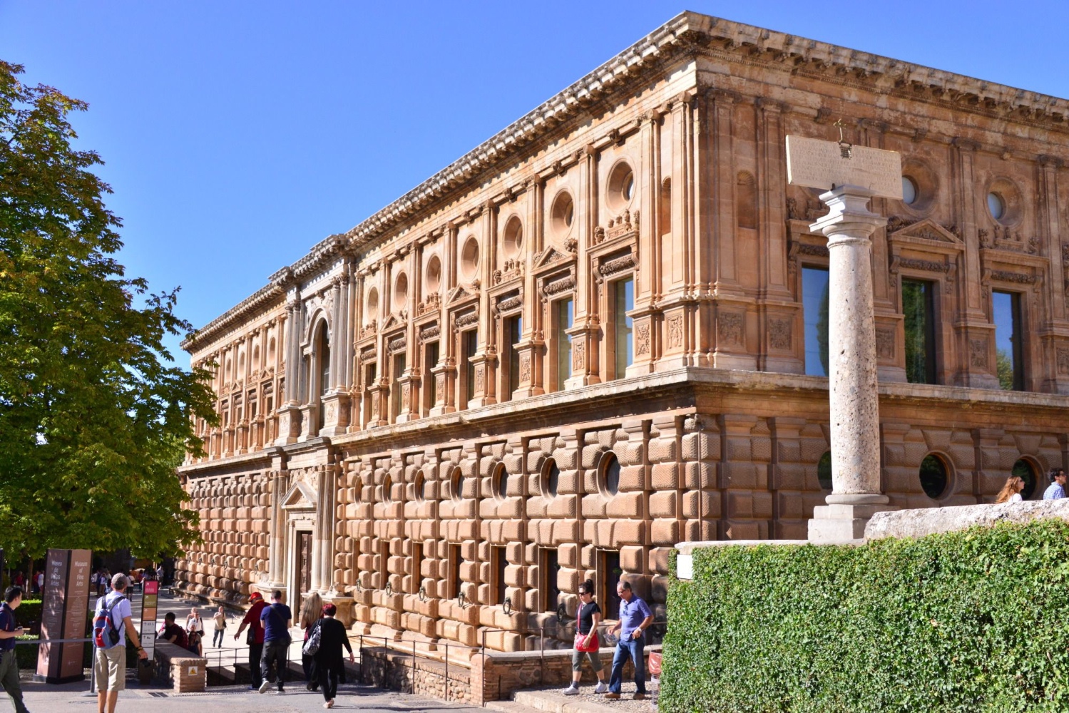 Der Weg zu den Nasridenpalästen führt vorbei am Palast Karl V. (Palacio Carlos V.) (Bilder 14 – 16). Der wuchtige Renaissancebau, dem ein Teil der ursprünglichen Alhambra zum Opfer fiel, passt eigentlich gar nicht zur übrigen filigranen Bauweise. Der Palast beherbergt heute das Museo de la Alhambra.