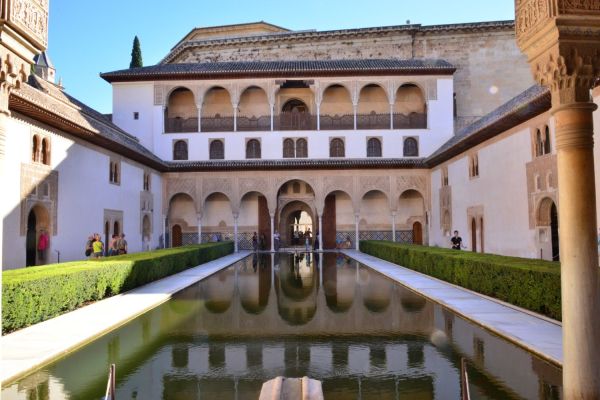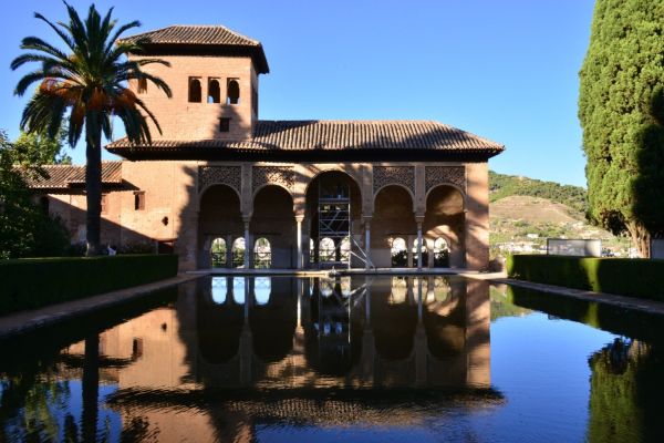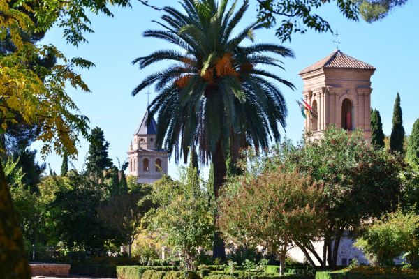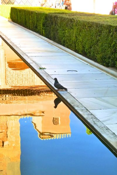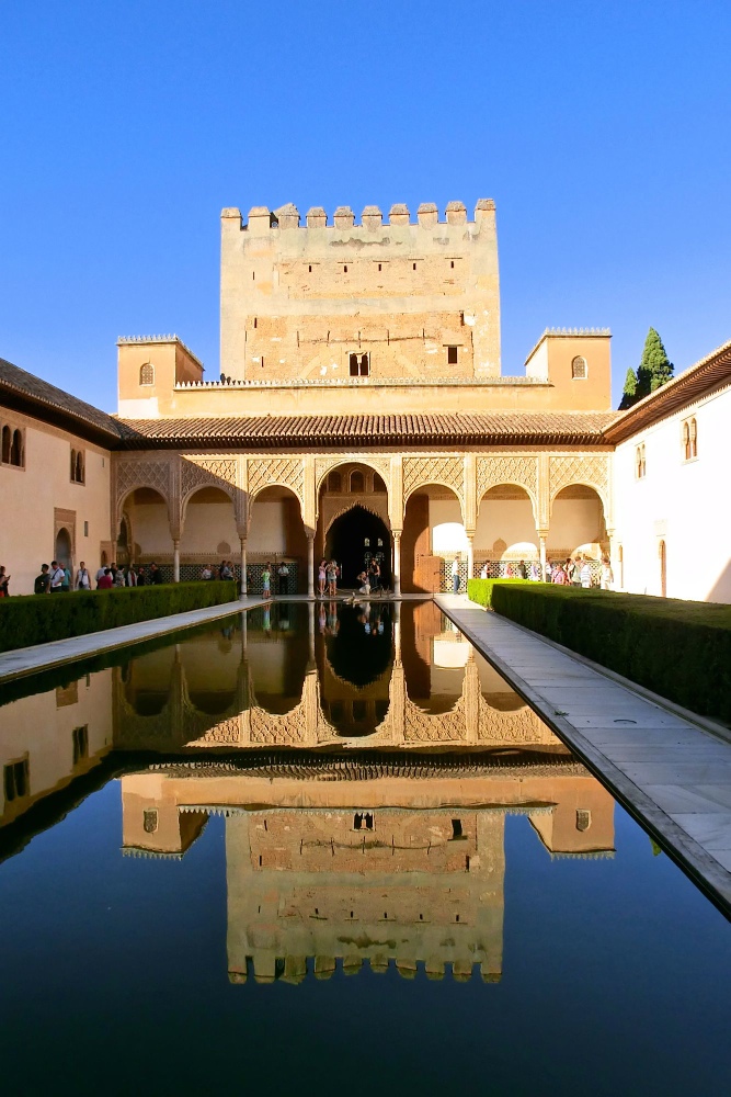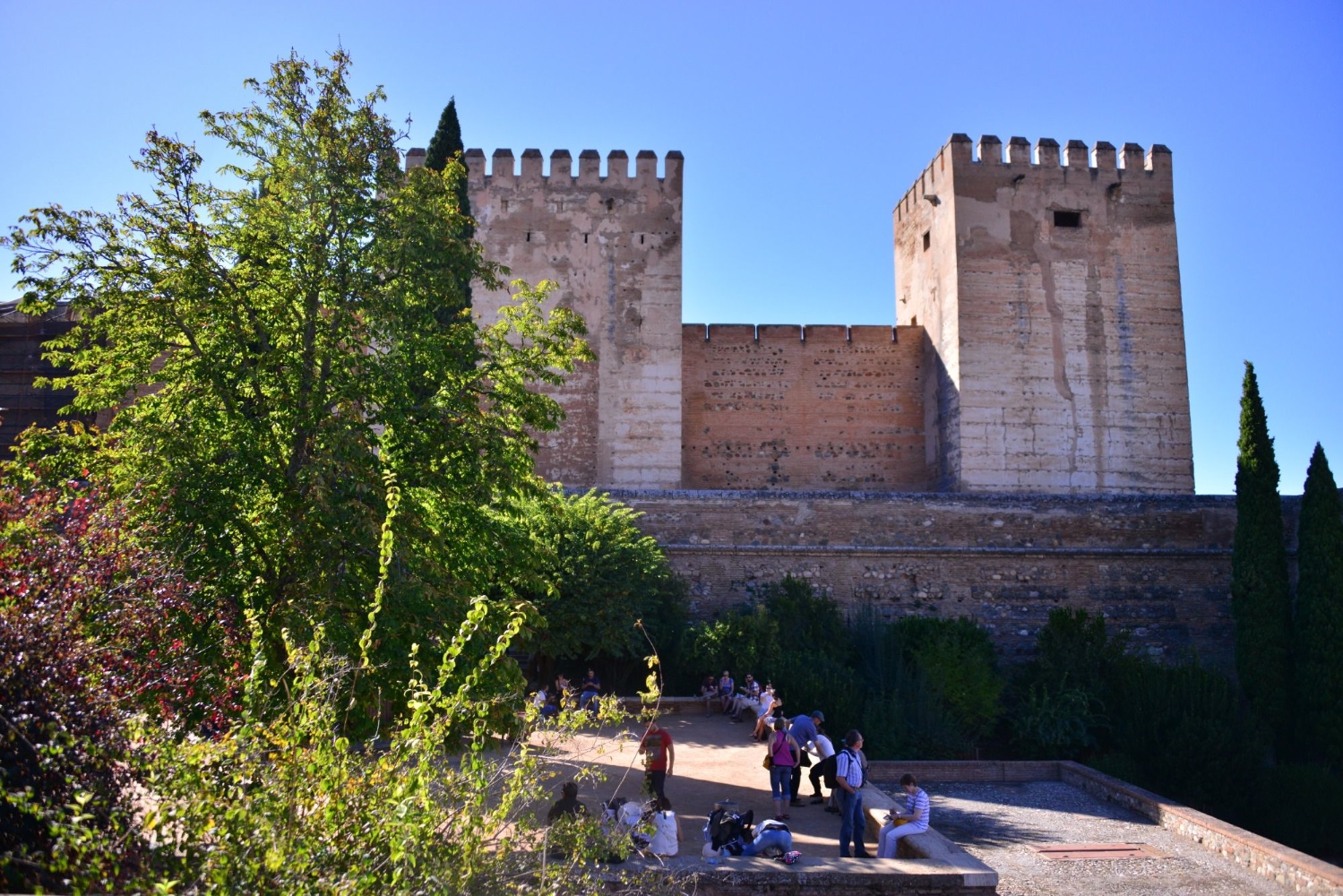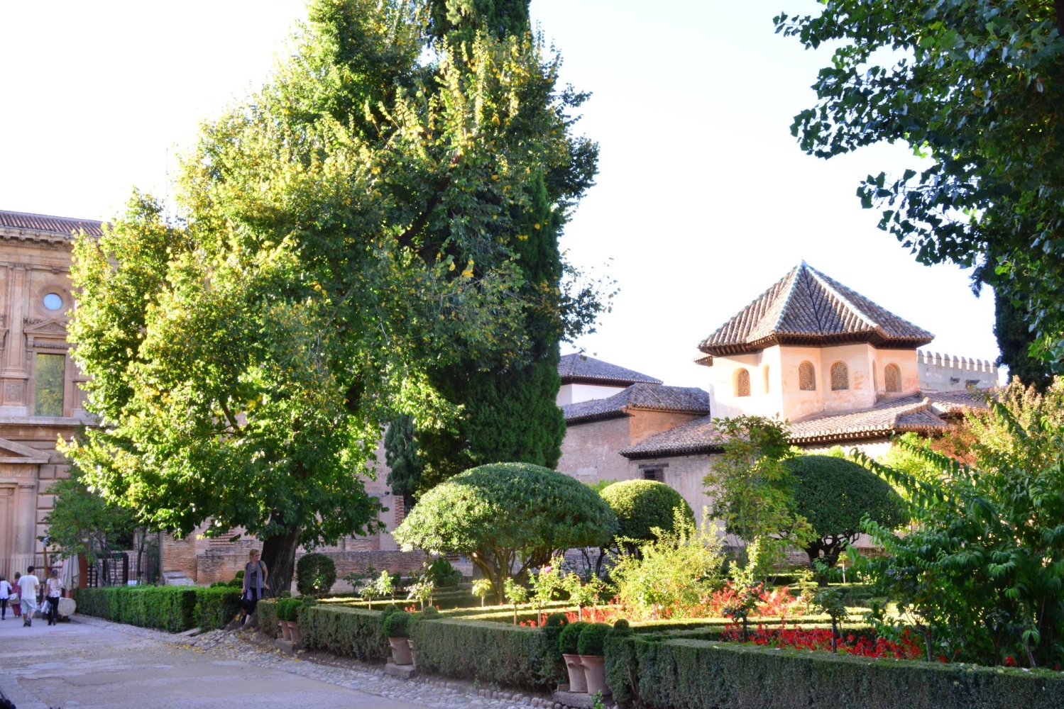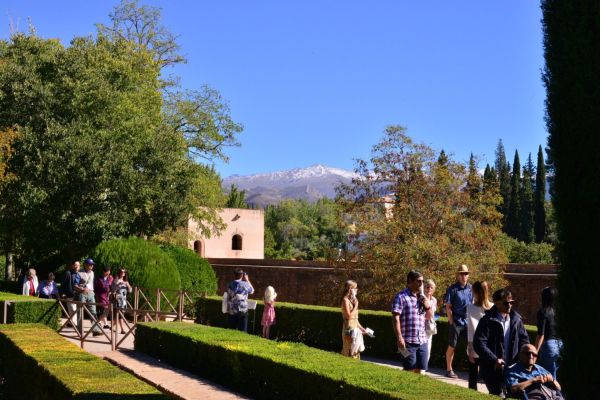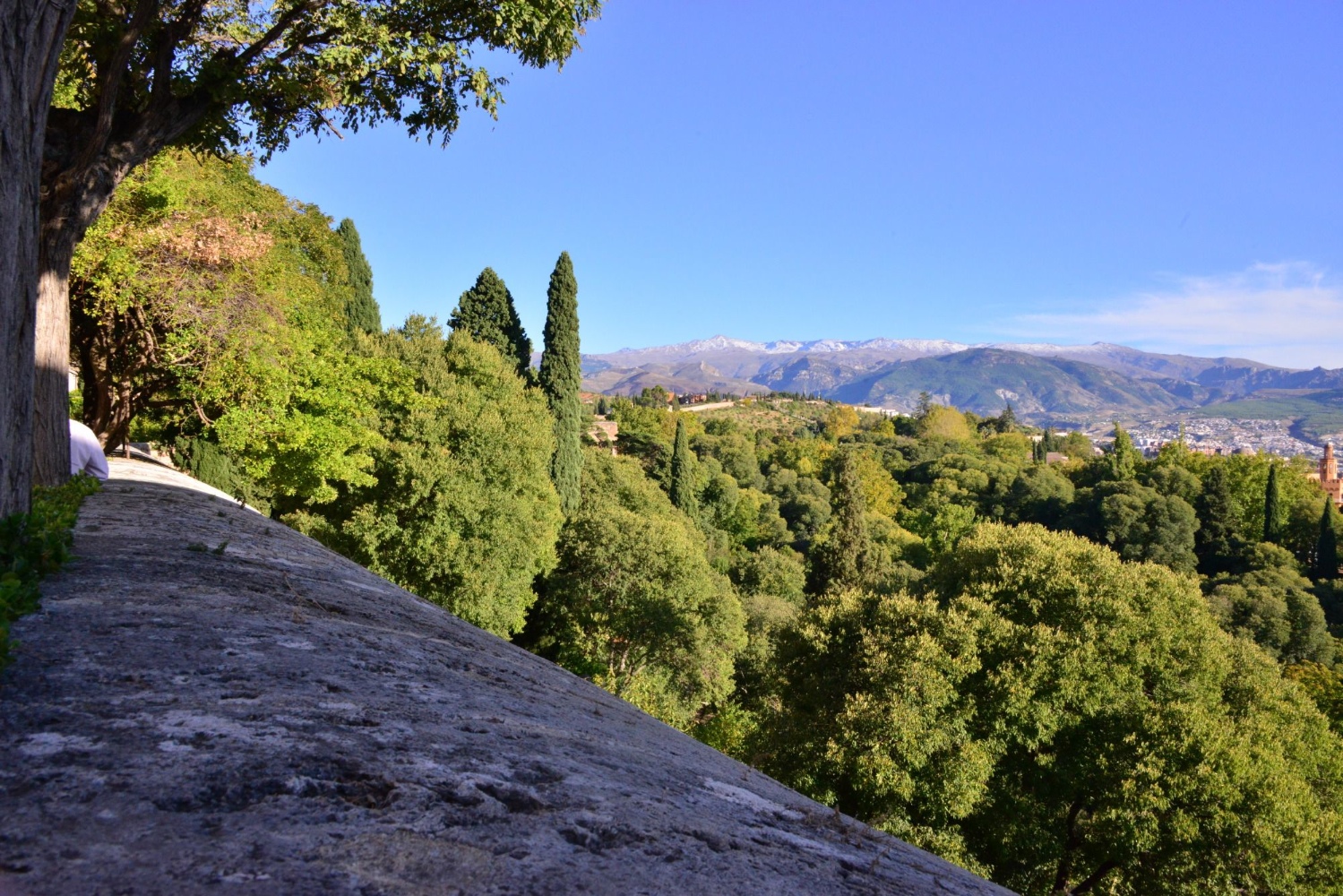 Die Alhambra besteht Im Wesentlichen aus drei Teilen, der Festung (Alcazaba), den Nasriden-Palästen (Palacios Nazaríes) und dem Landgut Generalife mit seinen bekannten Gärten. Bei 30°C im Schatten schlendern wir zunächst durch die weitläufigen, wunderschönen Anlagen (Bilder 11 – 13), immer wieder erblicken wir durch die Bäume den Veleta und die Sierra Nevada.