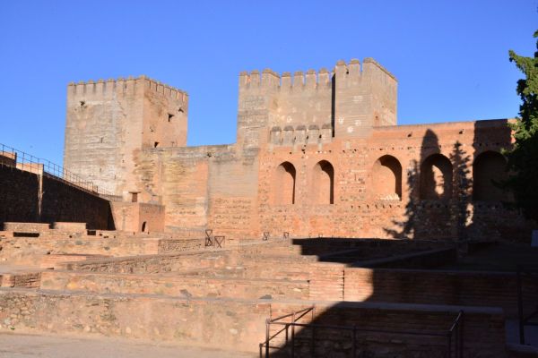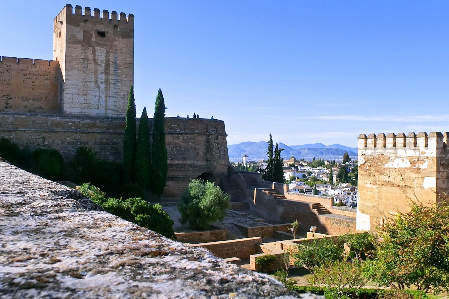 Wir haben nur noch wenige Minuten Zeit, um uns kurz auf der Alcazaba umzuschauen. Von dort aus haben wir noch einmal einen atemberaubenden Blick auf die verschneiten Gipfel der Sierra Nevada und die Stadt Granada mit ihrer Kathedrale (Bilder 45 – 50).