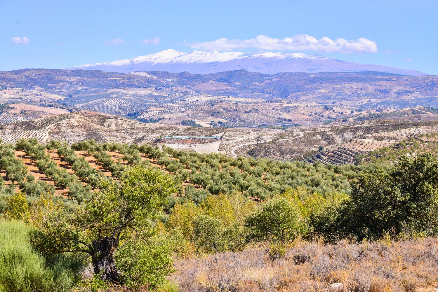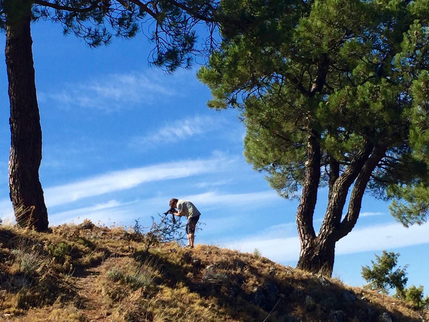 Nur nicht zu lang soll die Fahrt werden. Wir starten von Velez Málaga aus in nördliche Richtung ins Hinterland (Fotos 3 & 4). Wir überqueren den ersten Pass (Foto 5). Es wird auch hier in Spanien langsam etwas herbstlich, in dem Sinne von: es färben sich die ersten Blätter an den Bäumen... (Fotos 6 & 7). In „Alhama de Granada“ (Foto 8) stärken wir uns kurz und halten einen der spanischen Momente im Leben (Foto 9) fest. Wir fahren am „Rio Alhama“ entlang (Fotos 10 – 12), sozusagen am Norden des Nationalparks „Sierra de Tejeda“ (Fotos 13 &14) bis wir den Blick auf die Sierras de Nevada erhaschen, deren höchste Gipfel weiß gezuckert sind (Foto 15). Hendrik ist in seinem Element (Fotos 16 & 17).