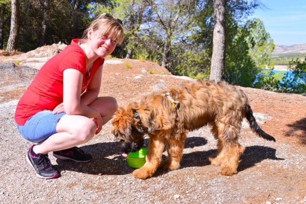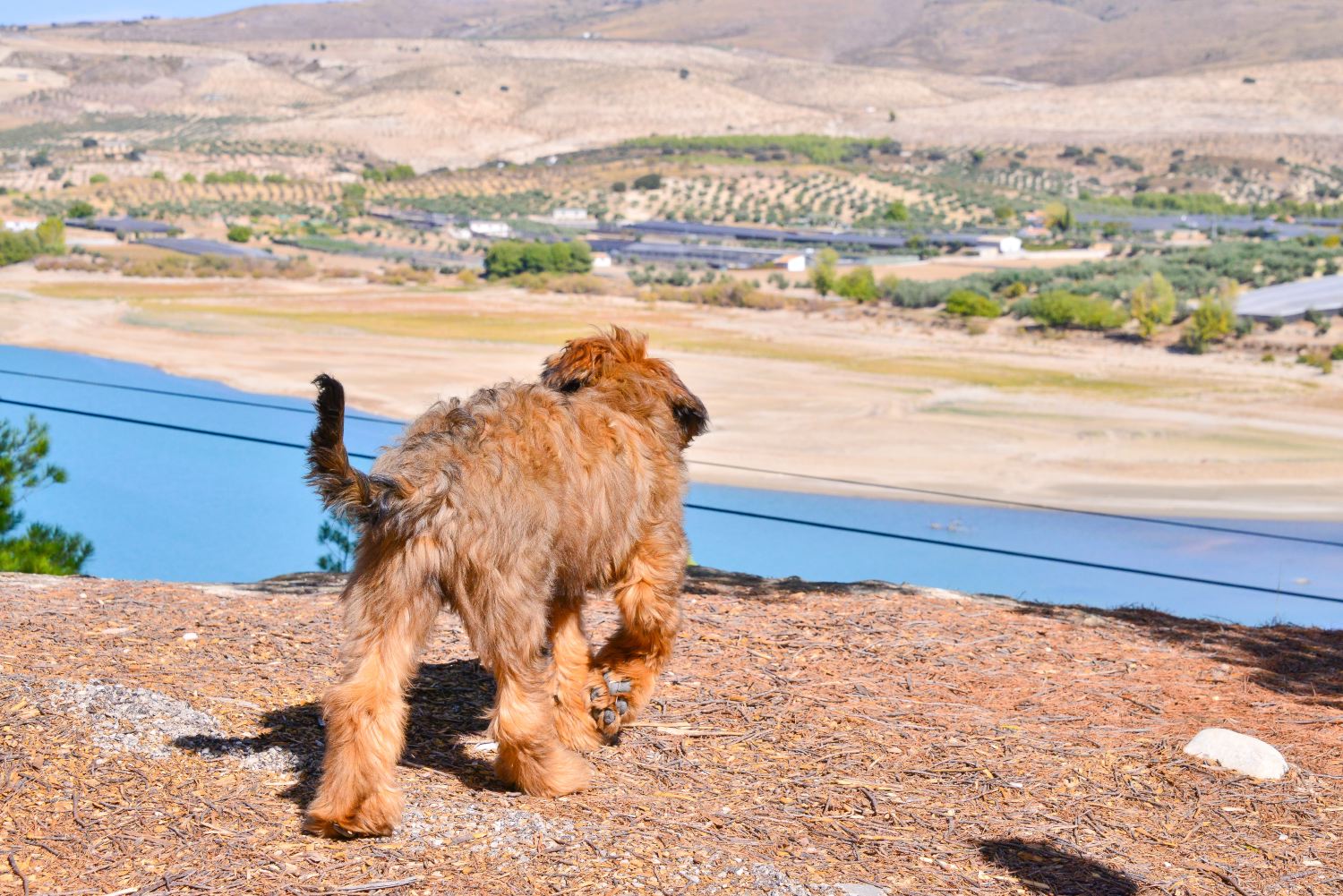 Weiter geht es zum Stausee „Embalse de los Bermejales“ (Foto 18). Das wenige Wasser ist noch blauer als der fast wolkenlose Himmel ... Hier gibt es eine ausgedehnte Hunde-Spiel-Runde. Wir haben bis dahin kaum gemerkt, dass unser kleiner Schatz überhaupt dabei ist (Fotos 19 – 23).