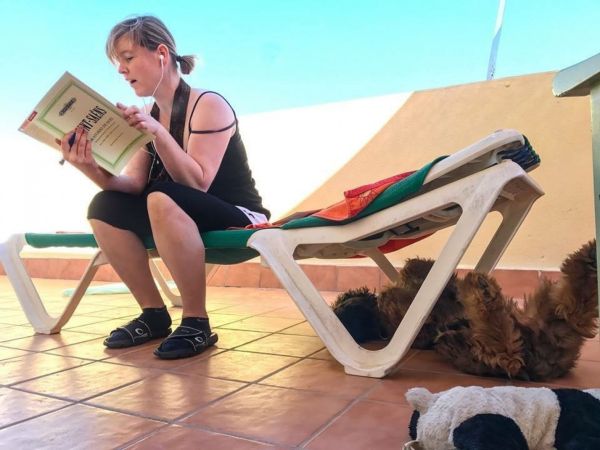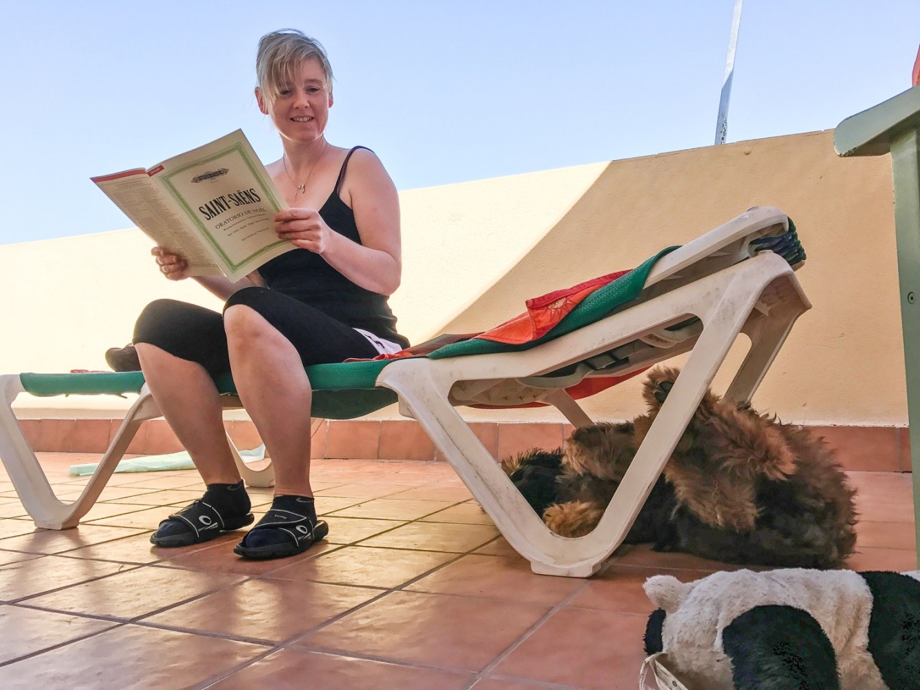 Wie immer stehen nach meinem Urlaub Konzerte an, und da ich nun etliche Proben fehlen werde, muss die Erarbeitung des Notenmaterials hier erfolgen. Weihnachtsoratorien unter Spaniens Sonne bei 27°C einstudieren, das hat schon was und Frau macht dies nicht alle Tage. Archibald nimmt's total gelassen, wie man sieht (Fotos 3 & 4) und ist tiefen entspannt. NEIN, er singt auch nicht mit.