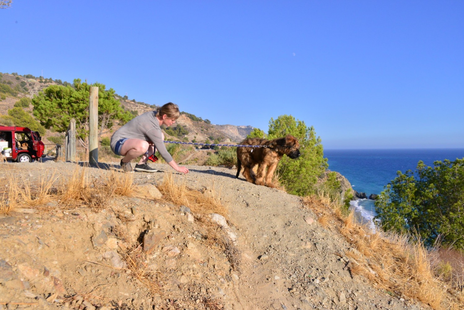 Am späten Nachmittag rappeln wir uns dann doch noch auf. Archibald soll eine eigene Facebook Seite bekommen und dafür fehlt uns noch das passende Titelbild. Die Treppen an der Kirche von Maro (Fotos 5 & 6) scheinen uns eher ungeeignet. Also fahren wir noch ein Stück die Küste entlang und finden einen geeigneten Platz. Mit allerlei gutem Zureden (Fotos 7 – 10) gelingt Hendrik das gewünschte Foto.