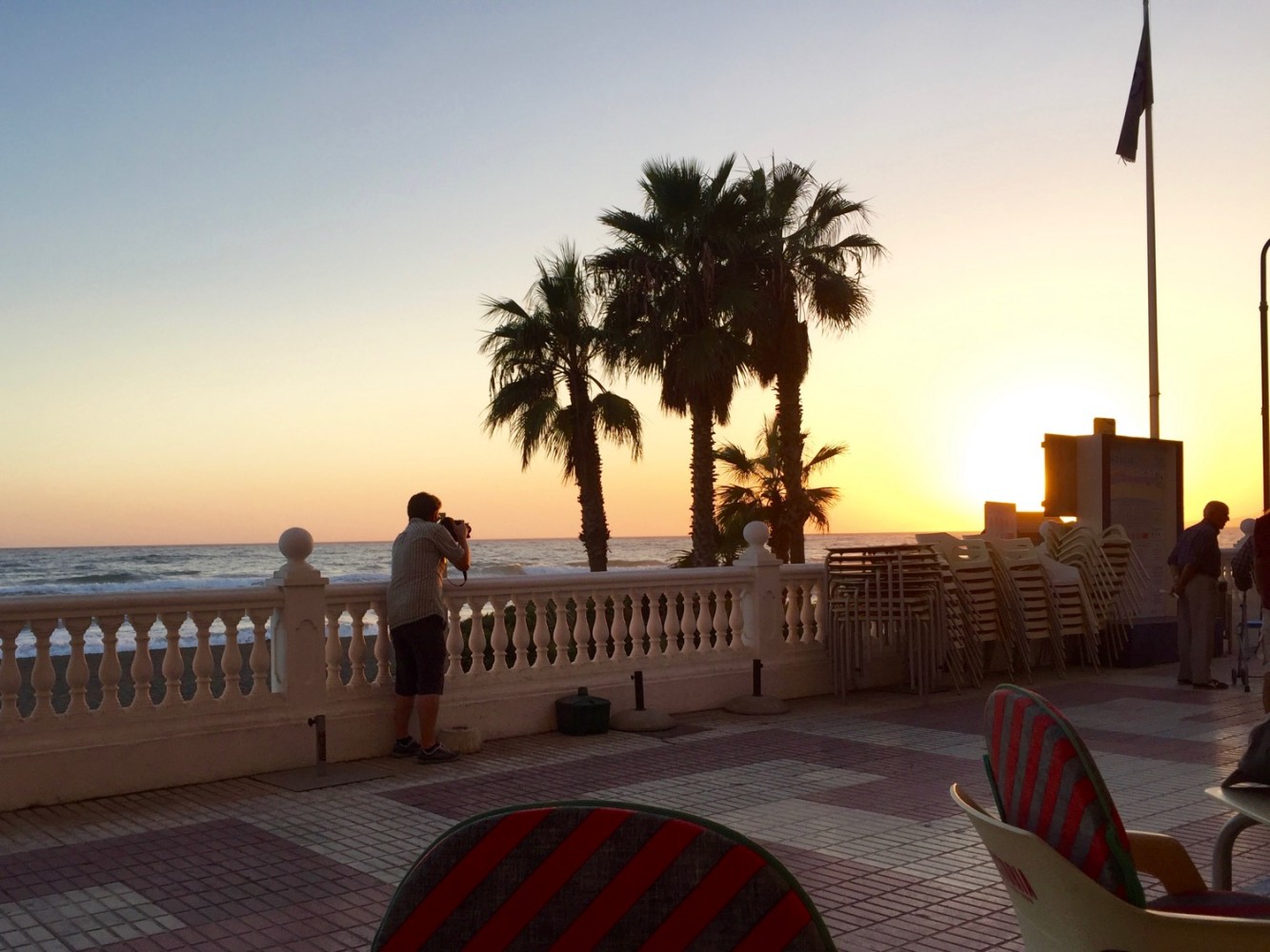 Die Rückfahrt führt uns nach El Morche. Nach einem entspannten Spaziergang auf der Strandpromenade gibt es für mich ein kühles spanischen Bier und für Hendrik eine Cola. Bei sehr leckeren Tapas genießen wir einen traumhaften Sonnenuntergang am Strand (Fotos 11 – 14).