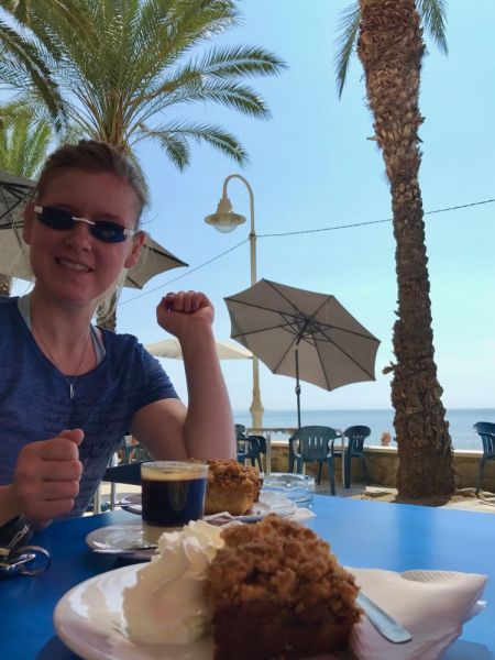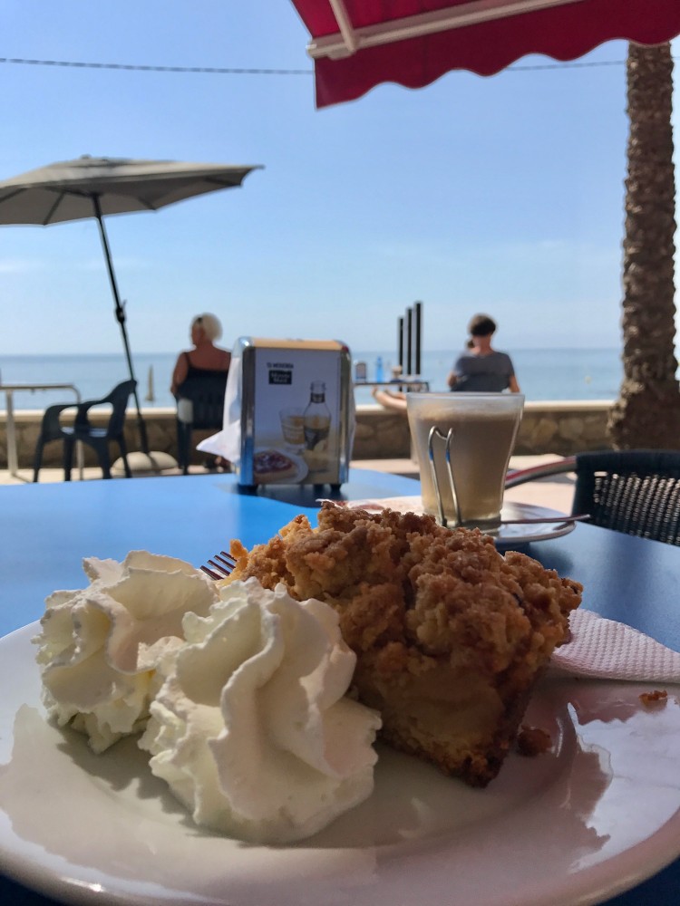 Apfelkuchen und "Kaffee Bonbon" im Dolce Vita in Torre del Mar. Fällt meinen Futterspendern eigentlich nichts spannenderes ein? Und dann einen auf völlig deprimiert machen, wenn dann die Strandfotos die nackte Wahrheit ans Licht bringen. Nee, nee. Ich verstehe die Welt nicht mehr.
