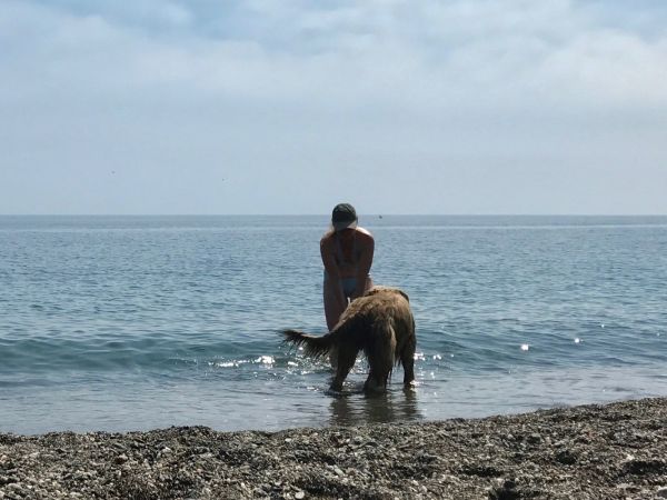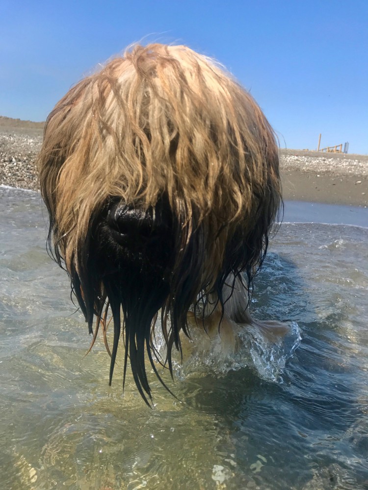 Dann das Theater am Strand! "Huuuuch, ist das kaltttttt! Ich geh da nicht rein!!!!!" Guckt euch Frauchen mal an! Da mach ich eben einen auf Meeresungeheuer oder wie schimpft sich das Monster von dem schottischen Gewässer, Nessiiiiiieeeee?!?!?! Naja, wenigsten planscht Frauchen mit mir noch etwas im kühlen Nass, ehe es heimgeht ...