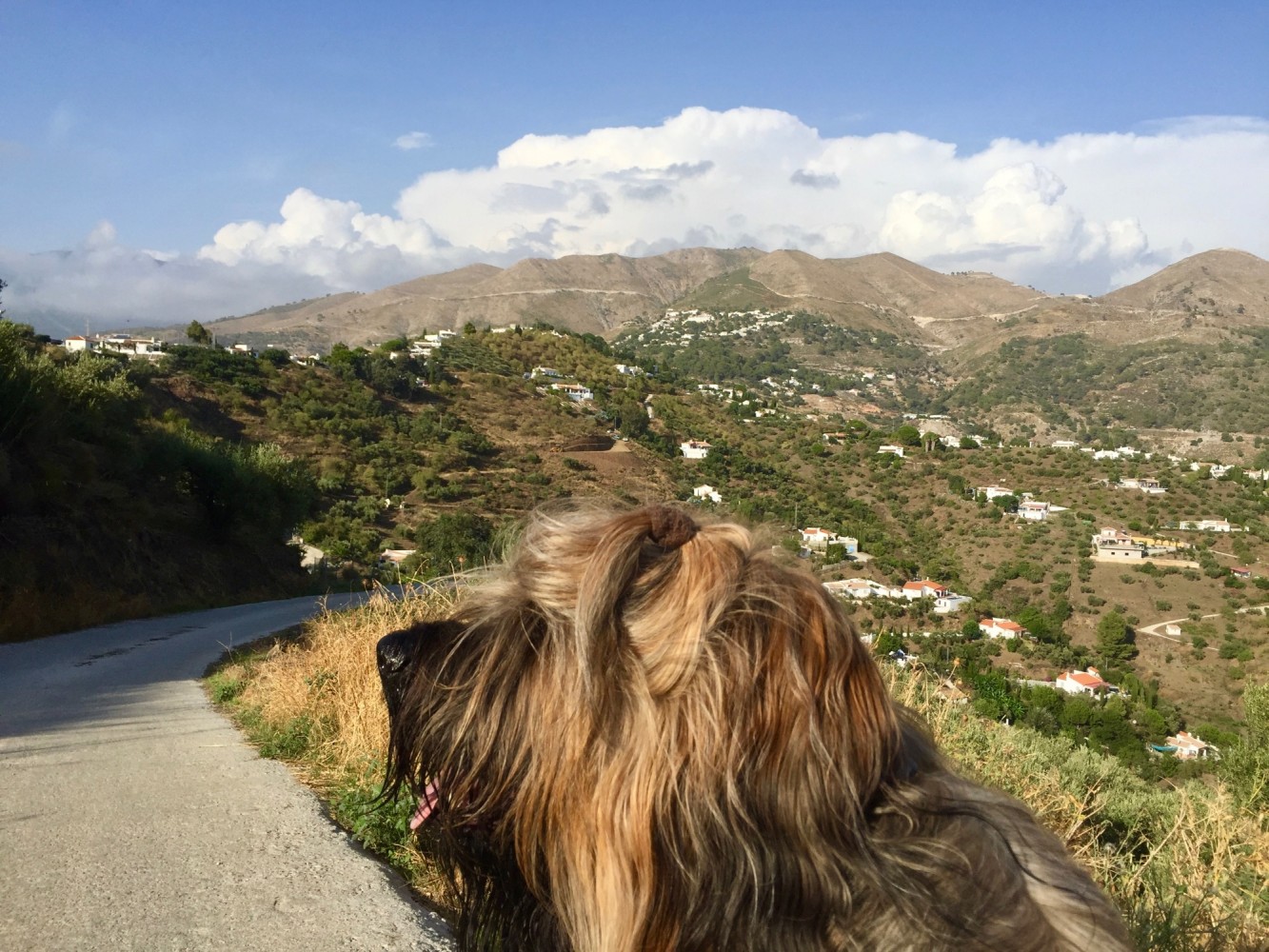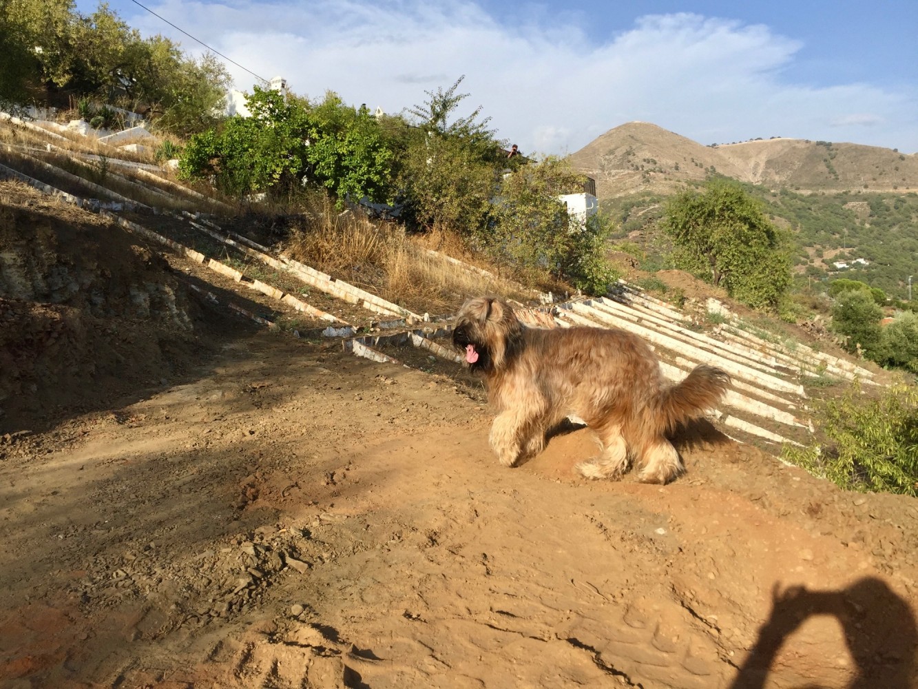 Ja, ein kleiner und wunderschöner Spaziergang am späten Nachmittag. Ich erkunde mit Archibald die nähere Umgebung, will unsere Finca mal von "gegenüber" sehen. An unserer Finca wird ein neuer Weg geschoben und so habe ich Hoffnung, eine "Runde" gehen zu können. Unser Lieblingsmensch bleibt derweil auf der Finca.