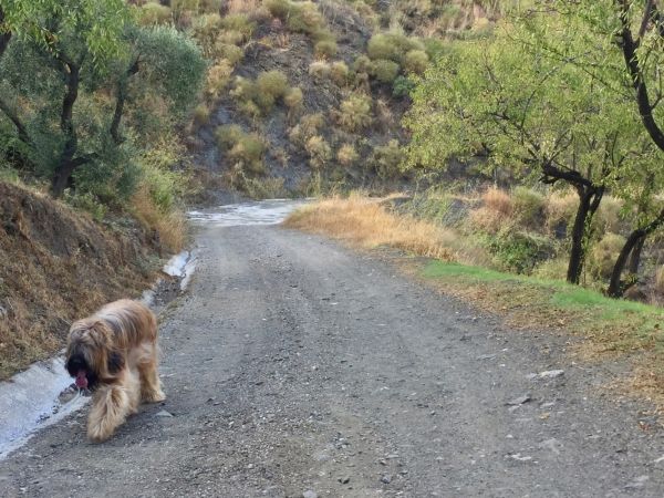 Unsere kleine "Runde" endet wirklich unterhalb unserer Finca auf dem frisch geschobenen Weg, auch wenn wir uns die letzten Meter duch Dickicht über einen Trampelpfad, durch einen Olivenhain schlagen und wir Archibald auf der Finca eine halbe Stunde von nervigen Kletten befreien müssen ...