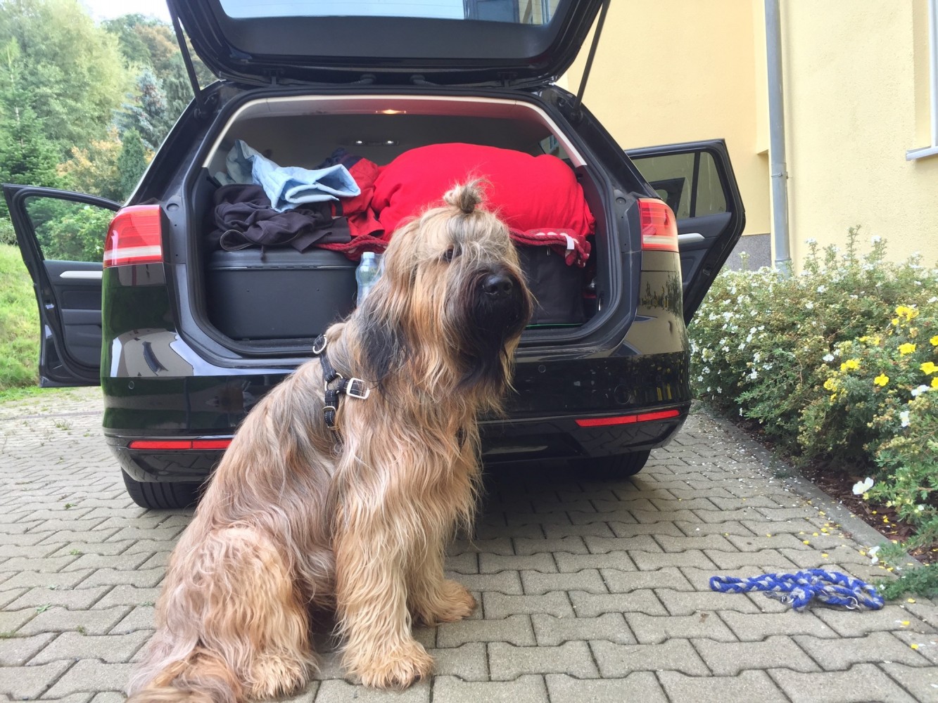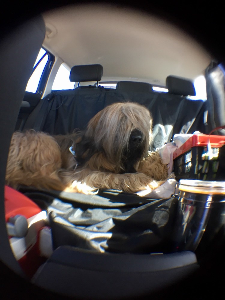 Auch Archi findet seinen Platz im vollbepackten Auto und meistert die 15 Stunden bis Barcelona ganz hervorragend. Völlig unbeeindruckt von der langen Fahrt frisst er seinen Napf leer und fällt wie wir in einen tiefen Schlaf.