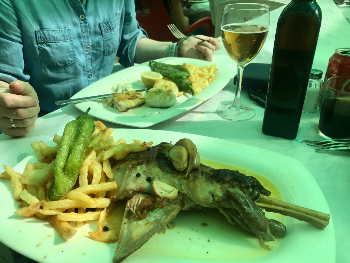Ein bisschen Rumblödeln, das spanische Bier genießen und hervorragend essen ... Eine Stunde später sind wir wieder auf der Autobahn und die letzten zwei Stunden bis zu unserer Finca sind ganz schnell herum. Dort werden wir von "zwei alten Bekannten" :-) begrüßt, unsere zwei Fliegenklatschen vom letzten Jahr leben noch ...