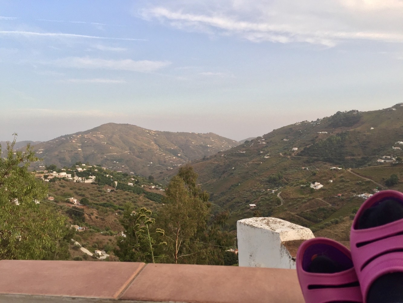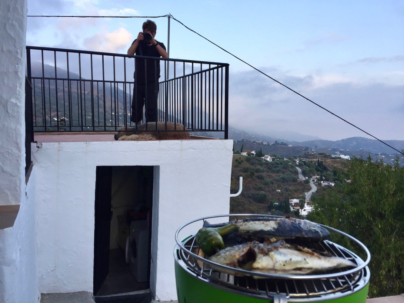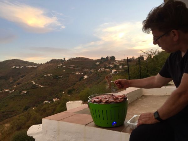 Am Dienstag werden wir früh schon von der Sonne geweckt. Am Mittag fahren wir zu unserer Freundin Petra an die Küste, essen mit Tapas und fahren an der Küste weiter und trinken noch Kaffee. Nachmittags sind wir wieder auf unserer Finca und genießen die herrliche Ruhe, den Ausblick und später den Grillduft. Ja der "kleine Grüne" wird hier noch oft zum Einsatz kommen. Da sind wir uns sicher.