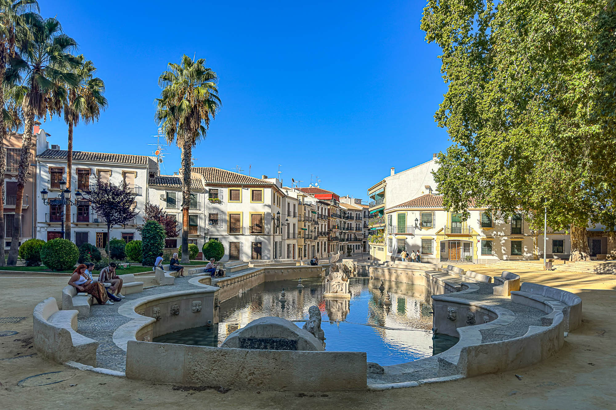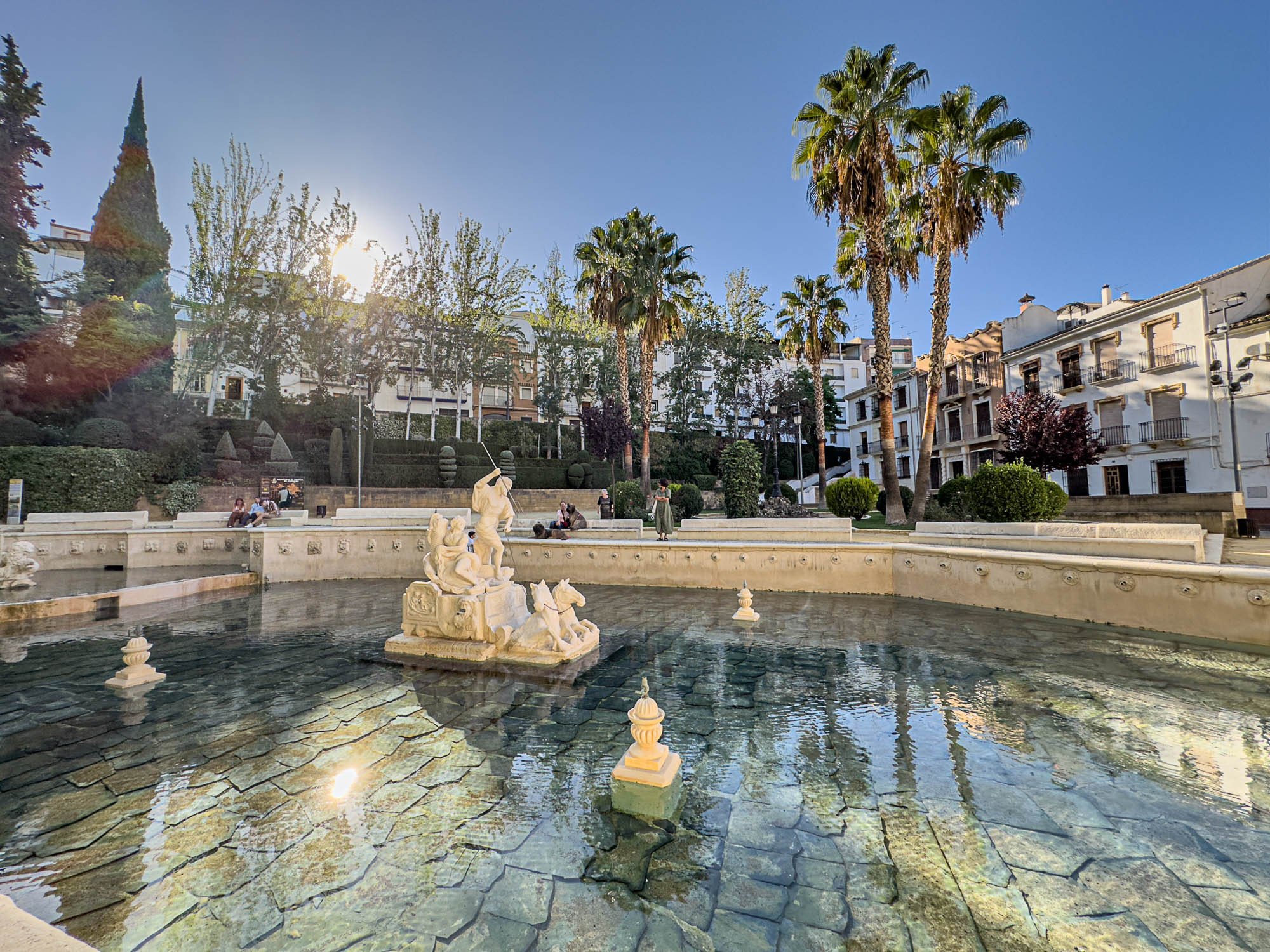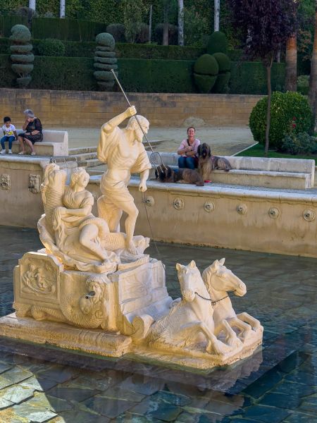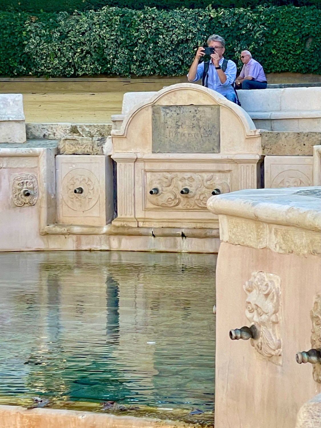 Wir sehen unsals erstes einen riesigen Brunnen, den „Fuente des Rey“ an. Der Königsbrunnen ist ein Brunnen im Barockstil, der 18031 von Remigio del Mármol in Priego de Córdoba erbaut, seit 1985 zum Kulturgut erklärt wurde und zu den zehn schönsten Brunnen Spaniers zählt. Er besitzt eine längliche, geschwungene Form und drei Ebenen. Die Plastik im ersten Becken zeigt einen Löwen, der mit einer Schlange kämpft. Im zweiten Becken entsteigen Neptun und Amphitrite dem Wasser auf einem Wagen, der von aus den Wogen ragenden Pferden gezogen wird. Von dort aus fällt das Wasser in das untere Becken und verlässt es durch einen Fratzenkopf. Den Brunnen speisen 139 Wasserrohre, viele davon mit grotesken Fratzengesichtern versehen. Der ganze Komplex steht unter Denkmalschutz.