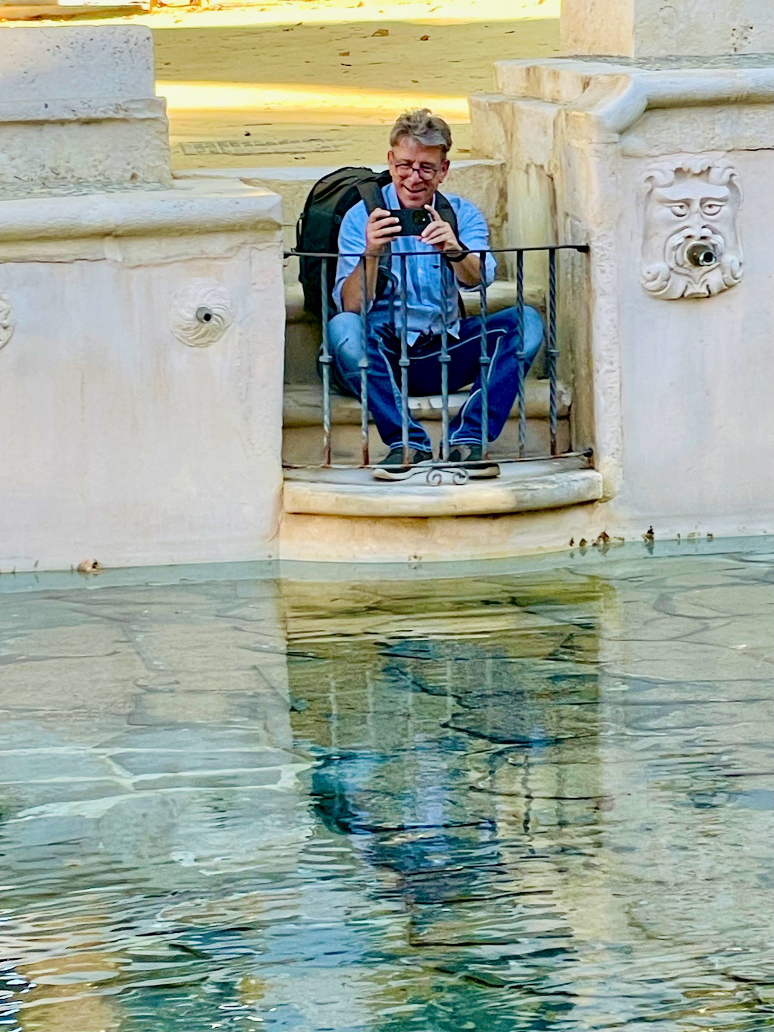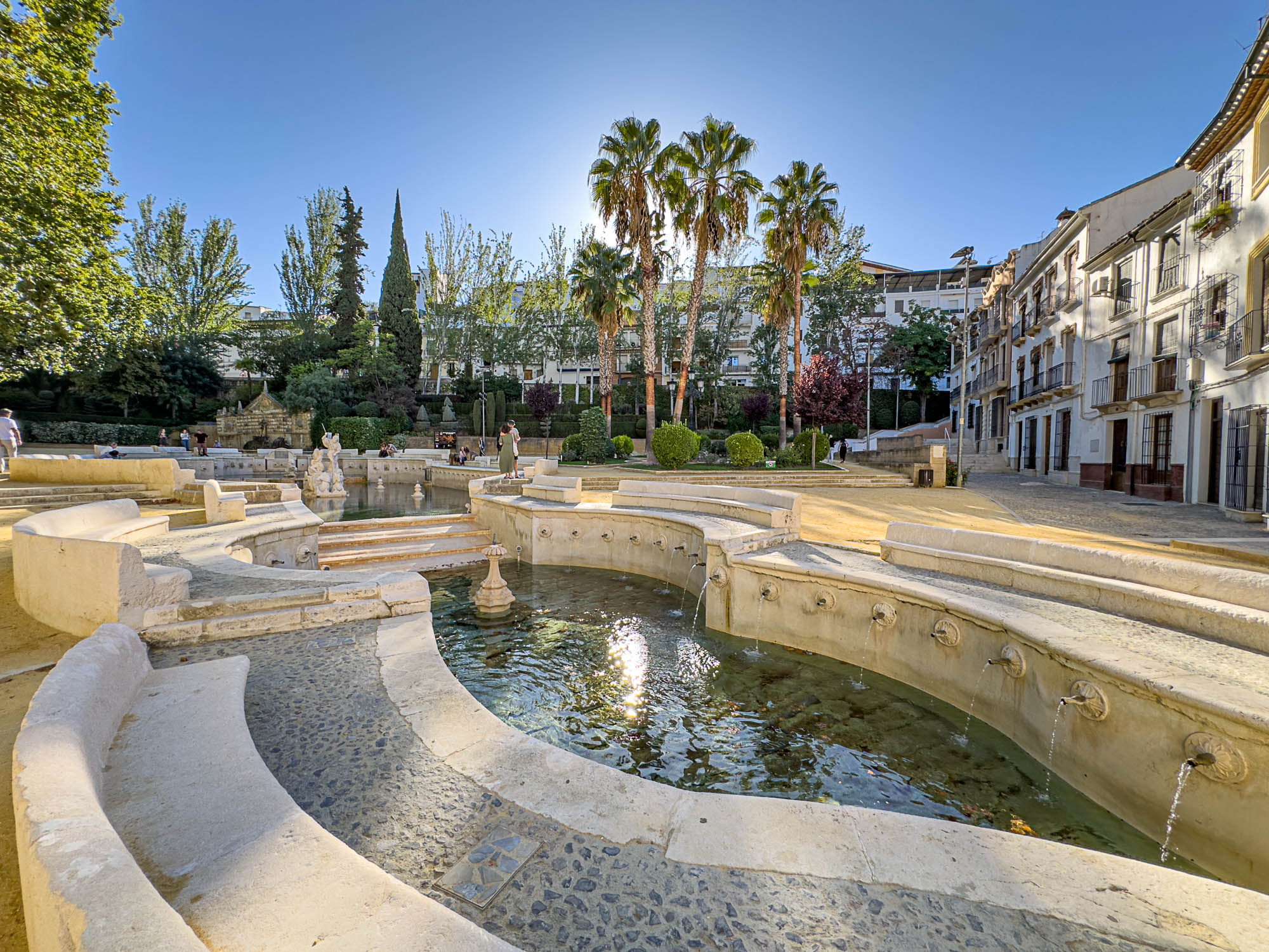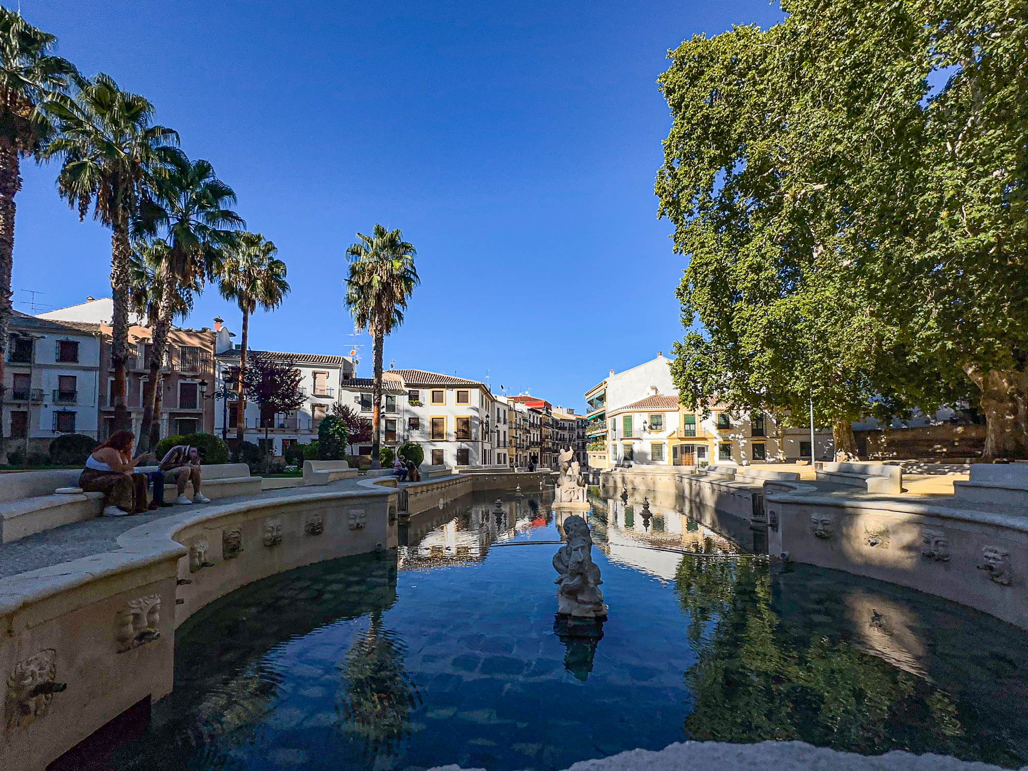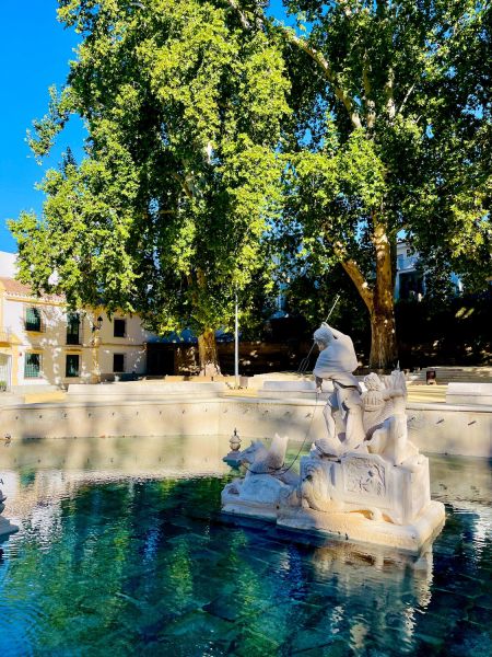 Wir sehen unsals erstes einen riesigen Brunnen, den „Fuente des Rey“ an. Der Königsbrunnen ist ein Brunnen im Barockstil, der 18031 von Remigio del Mármol in Priego de Córdoba erbaut, seit 1985 zum Kulturgut erklärt wurde und zu den zehn schönsten Brunnen Spaniers zählt. Er besitzt eine längliche, geschwungene Form und drei Ebenen. Die Plastik im ersten Becken zeigt einen Löwen, der mit einer Schlange kämpft. Im zweiten Becken entsteigen Neptun und Amphitrite dem Wasser auf einem Wagen, der von aus den Wogen ragenden Pferden gezogen wird. Von dort aus fällt das Wasser in das untere Becken und verlässt es durch einen Fratzenkopf. Den Brunnen speisen 139 Wasserrohre, viele davon mit grotesken Fratzengesichtern versehen. Der ganze Komplex steht unter Denkmalschutz.