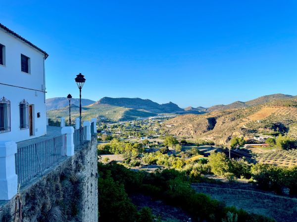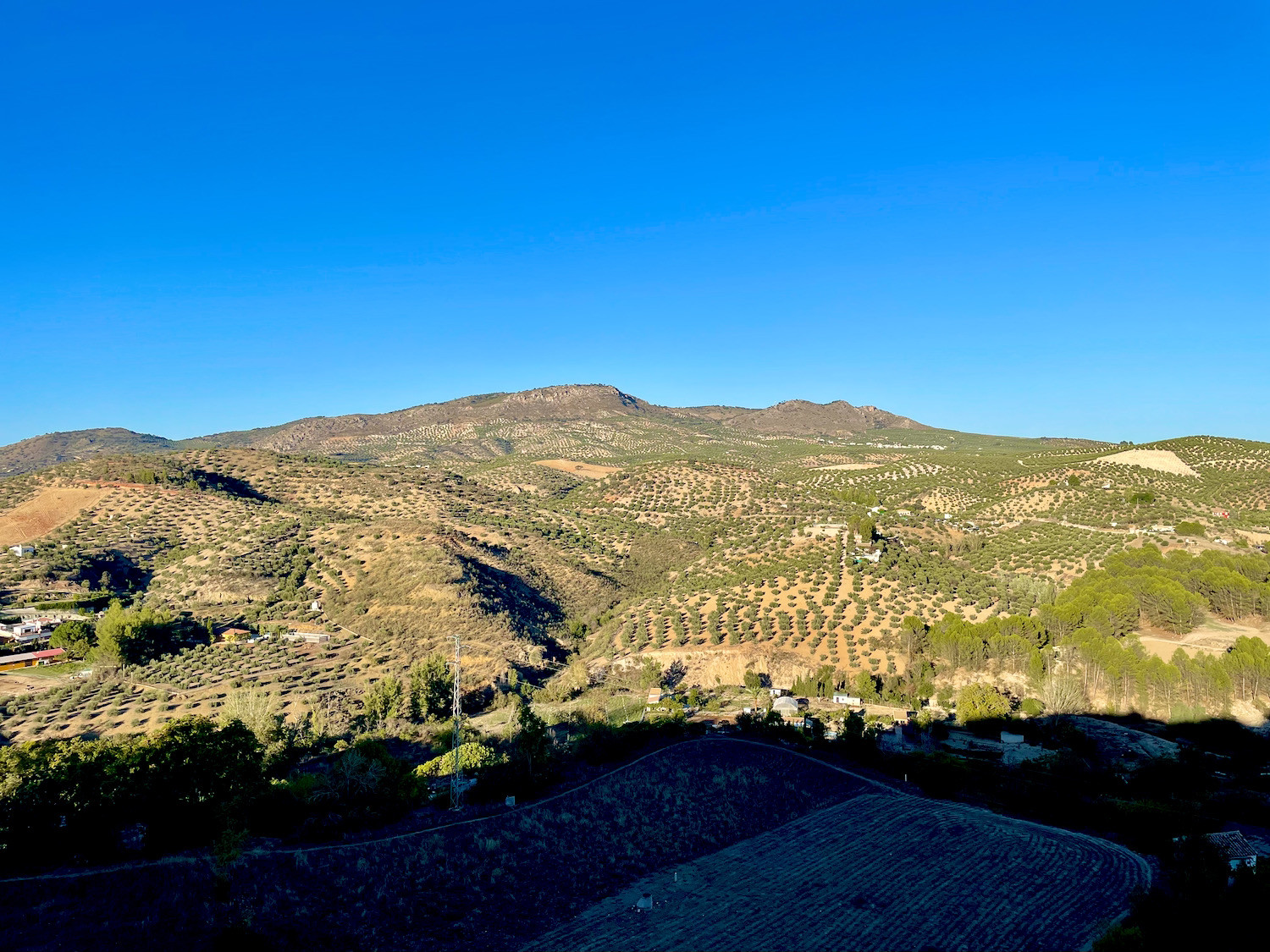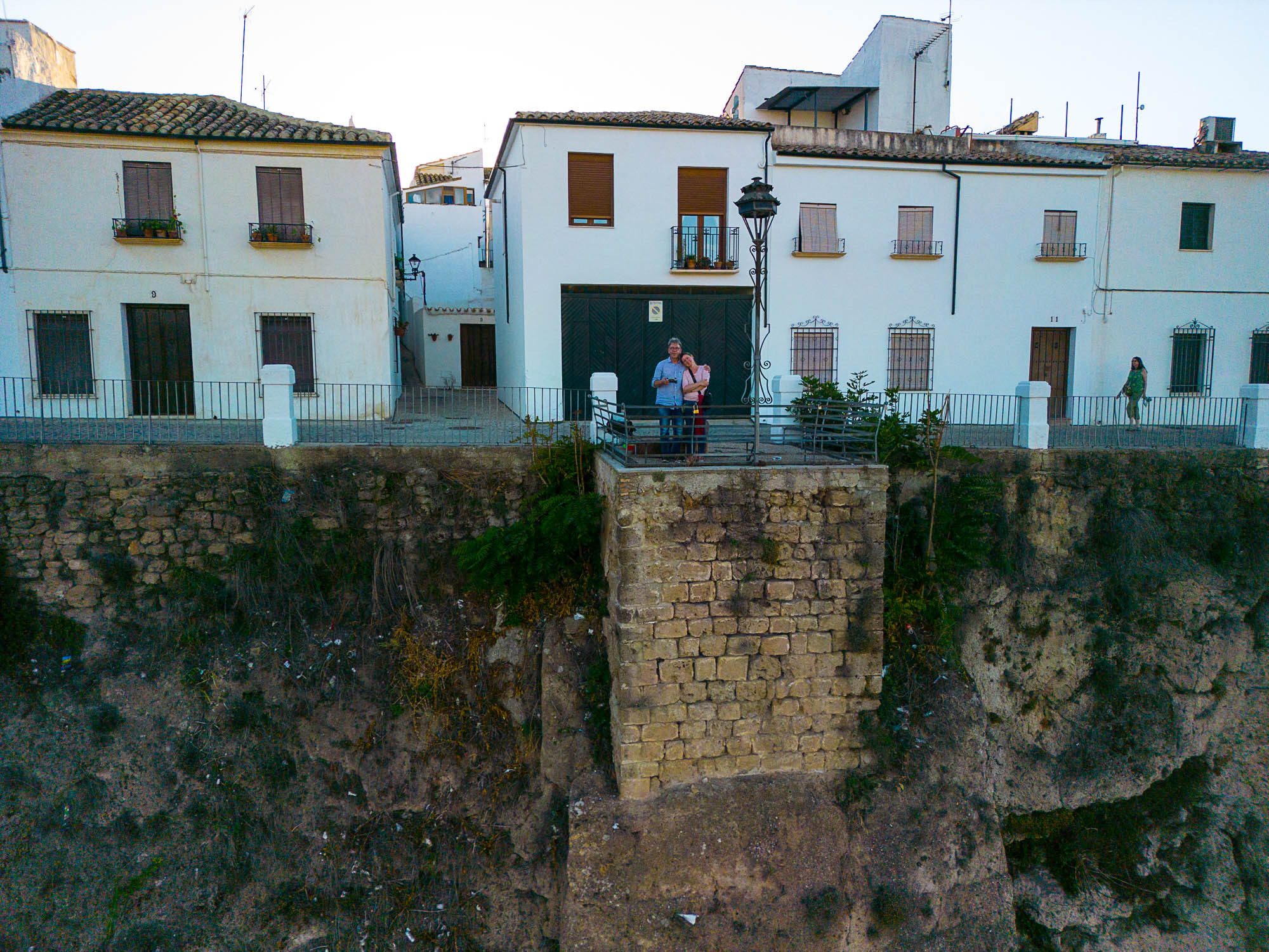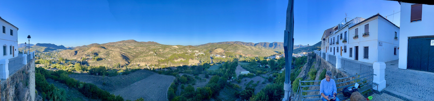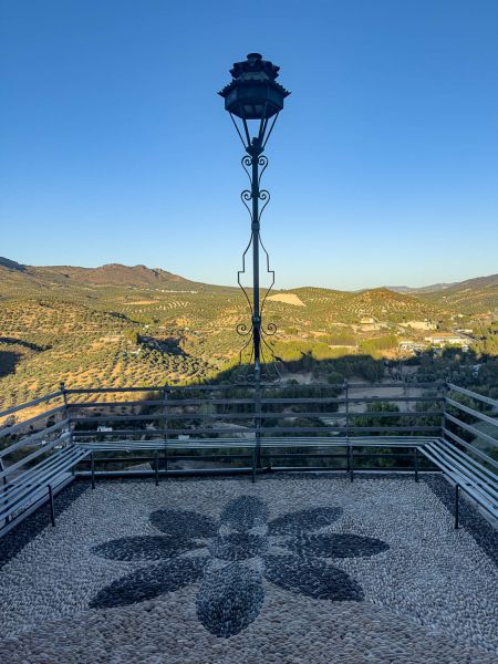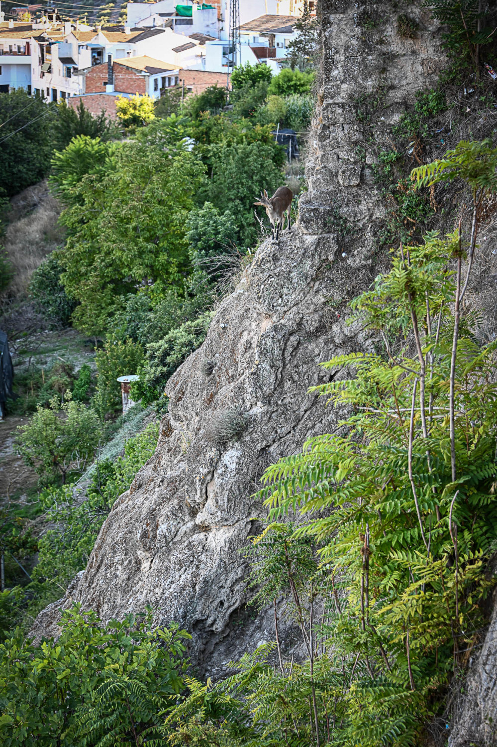 Am nordöstlichen Rand des Viertels gelangen wir zum „Adarve-Balkon“, der sich 55m über der Tiefebene erhebt. Hier bietet sich uns ein weiten Ausblick auf die Ebene, die Olivenhaine und die Berge im Umland. Doch als erstes zieht eine Ziege, die auf den steilen Mauern des Balkons herumklettert ihre ungeteilte Aufmerksamkeit auf sich. Wir bleiben hier eine ganze Zeit. Es ist einfach nur schön, die Aussicht zu genießen, die warmen Temperaturen, die netten Menschen, die hier entlang spaziert kommen. Alles Einheimische übrigens, bis auf ein Pärchen, mit dem Hendrik wegen seiner Drohne ins Gespräch kommt. Nachdem alle Fotoutensilien verstaut sind, schlendern wir zurück zu unserem Parkplatz. Voll von tollen Eindrücken geht es nun die reichlich zwei Stunden Fahrt zurück zu unserer Finca.
