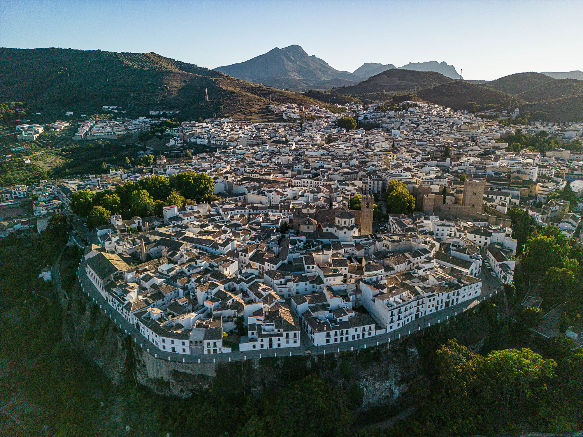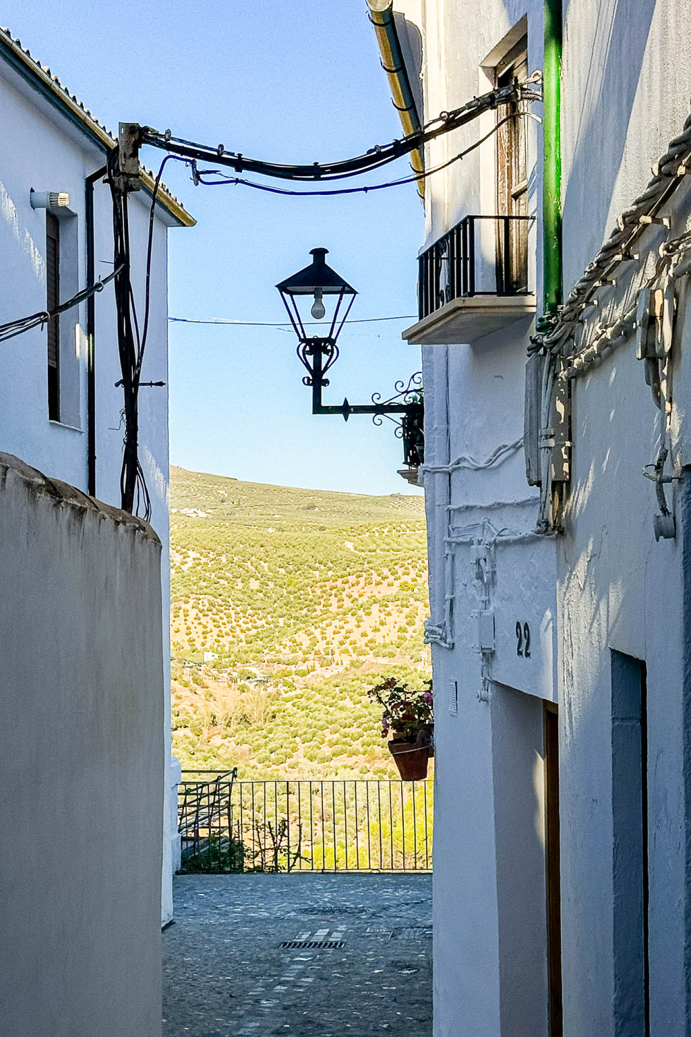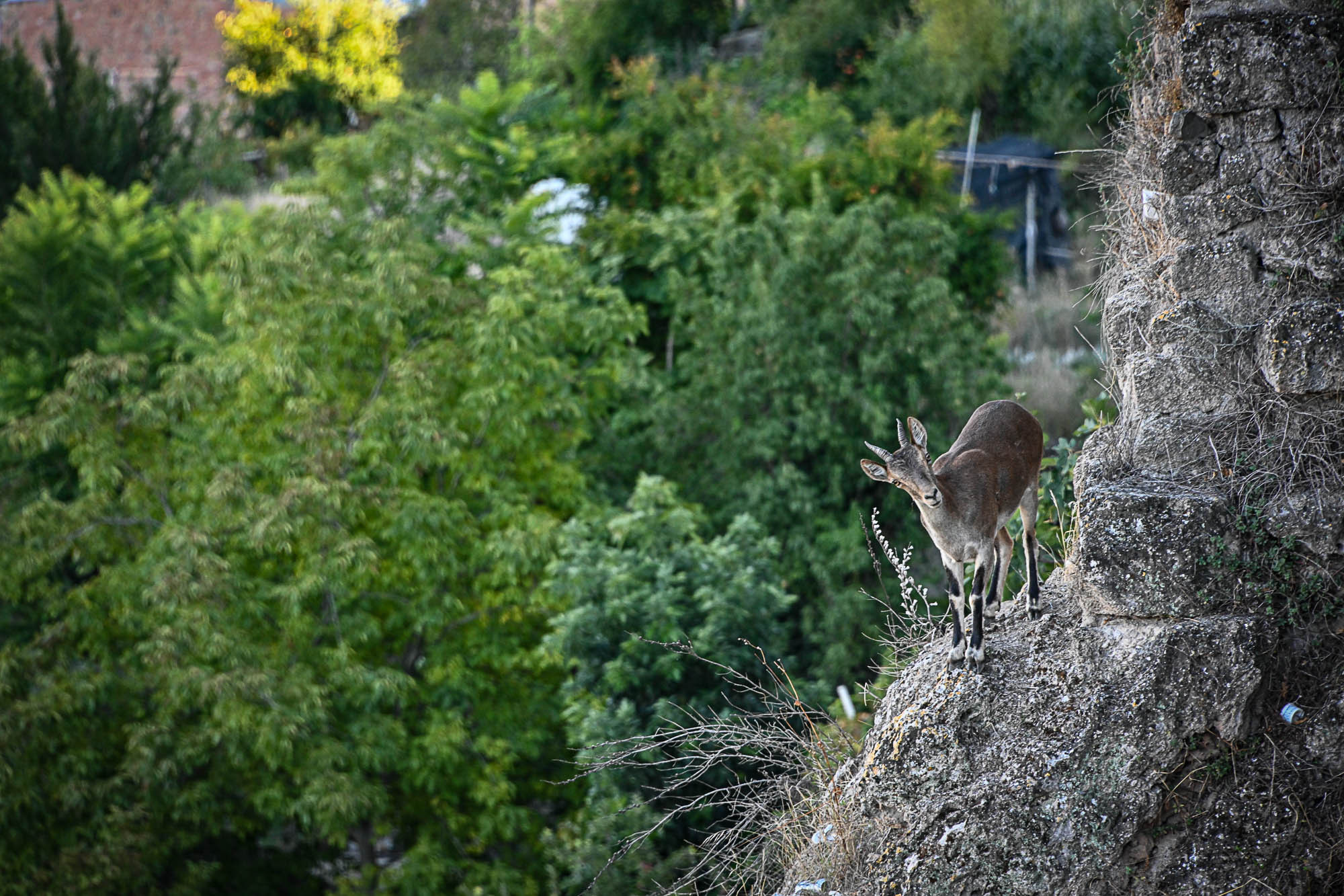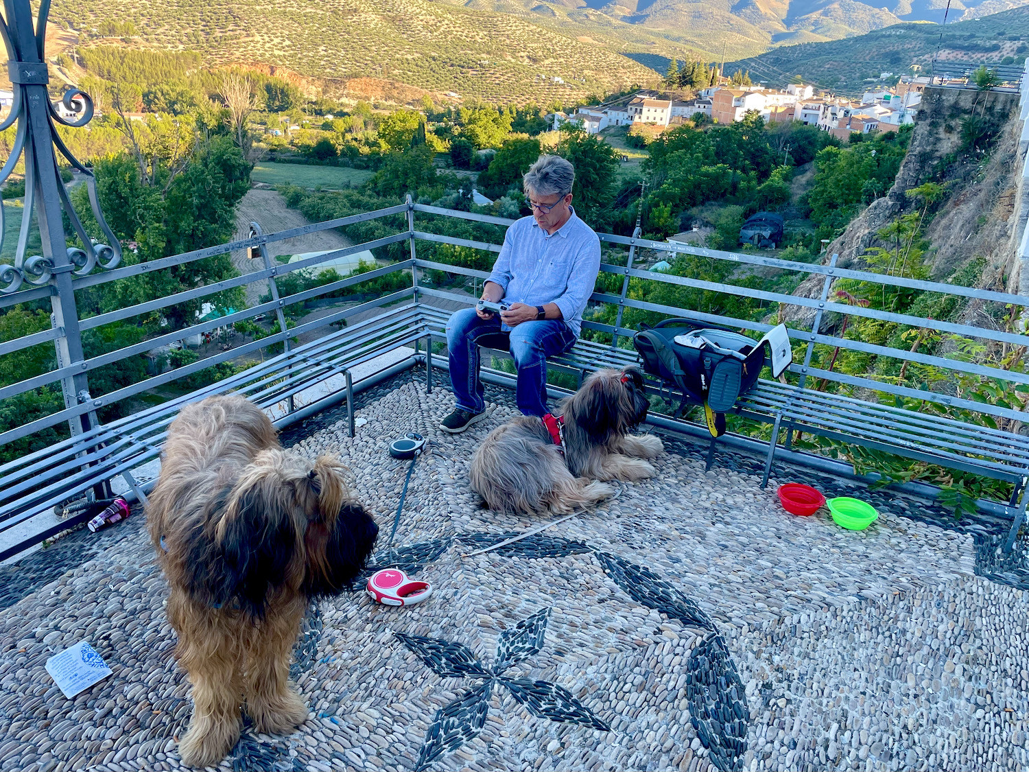 Am nordöstlichen Rand des Viertels gelangen wir zum „Adarve-Balkon“, der sich 55m über der Tiefebene erhebt. Hier bietet sich uns ein weiten Ausblick auf die Ebene, die Olivenhaine und die Berge im Umland. Doch als erstes zieht eine Ziege, die auf den steilen Mauern des Balkons herumklettert ihre ungeteilte Aufmerksamkeit auf sich. Wir bleiben hier eine ganze Zeit. Es ist einfach nur schön, die Aussicht zu genießen, die warmen Temperaturen, die netten Menschen, die hier entlang spaziert kommen. Alles Einheimische übrigens, bis auf ein Pärchen, mit dem Hendrik wegen seiner Drohne ins Gespräch kommt. Nachdem alle Fotoutensilien verstaut sind, schlendern wir zurück zu unserem Parkplatz. Voll von tollen Eindrücken geht es nun die reichlich zwei Stunden Fahrt zurück zu unserer Finca.