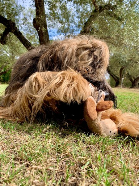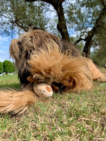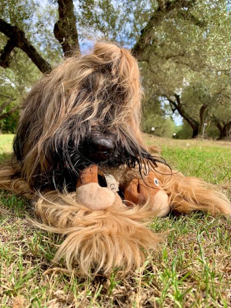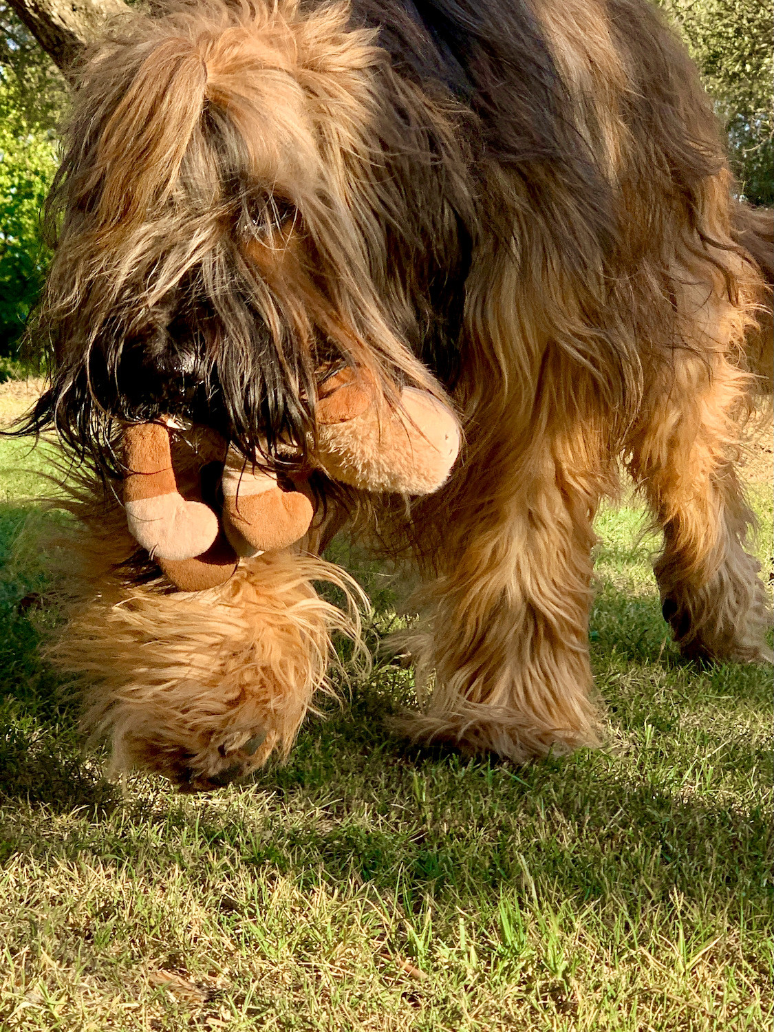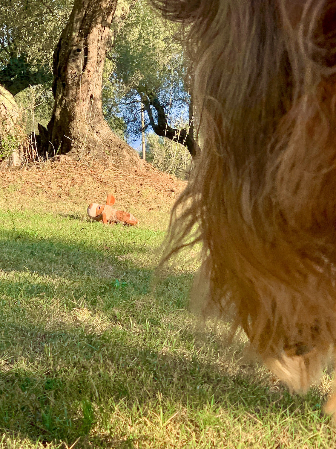 Unter uns gesagt, es quietscht nicht mehr, es piepst nur noch! Dafür wird es überall mit hingerschleppt, liebevoll beknabbert und besabbert und muss gefühlt 50x am Tag als Wurf- und Jagdobjekt herhalten.