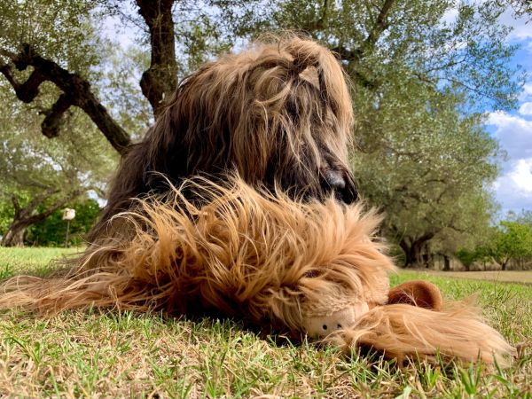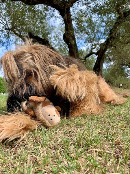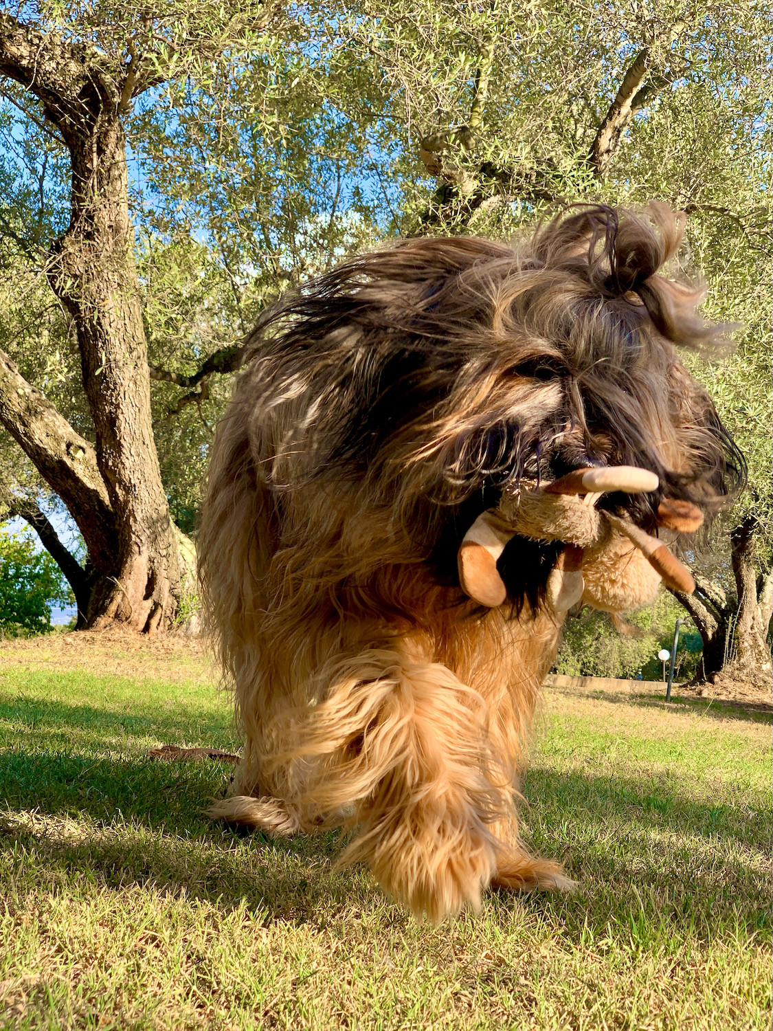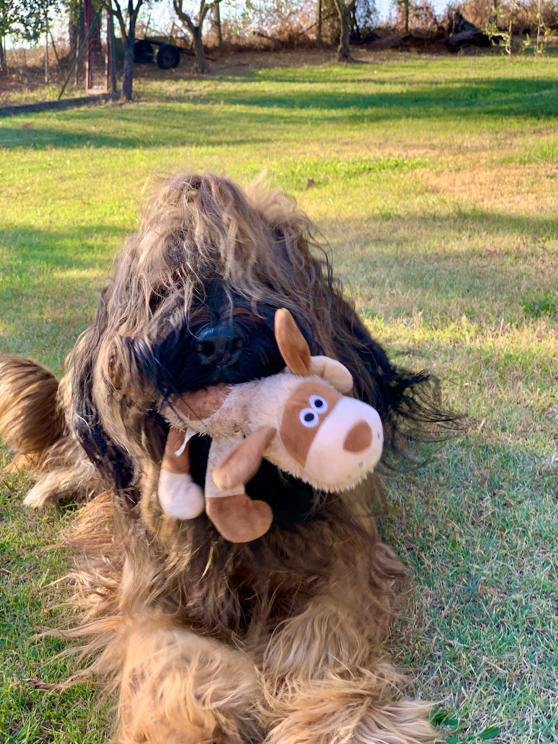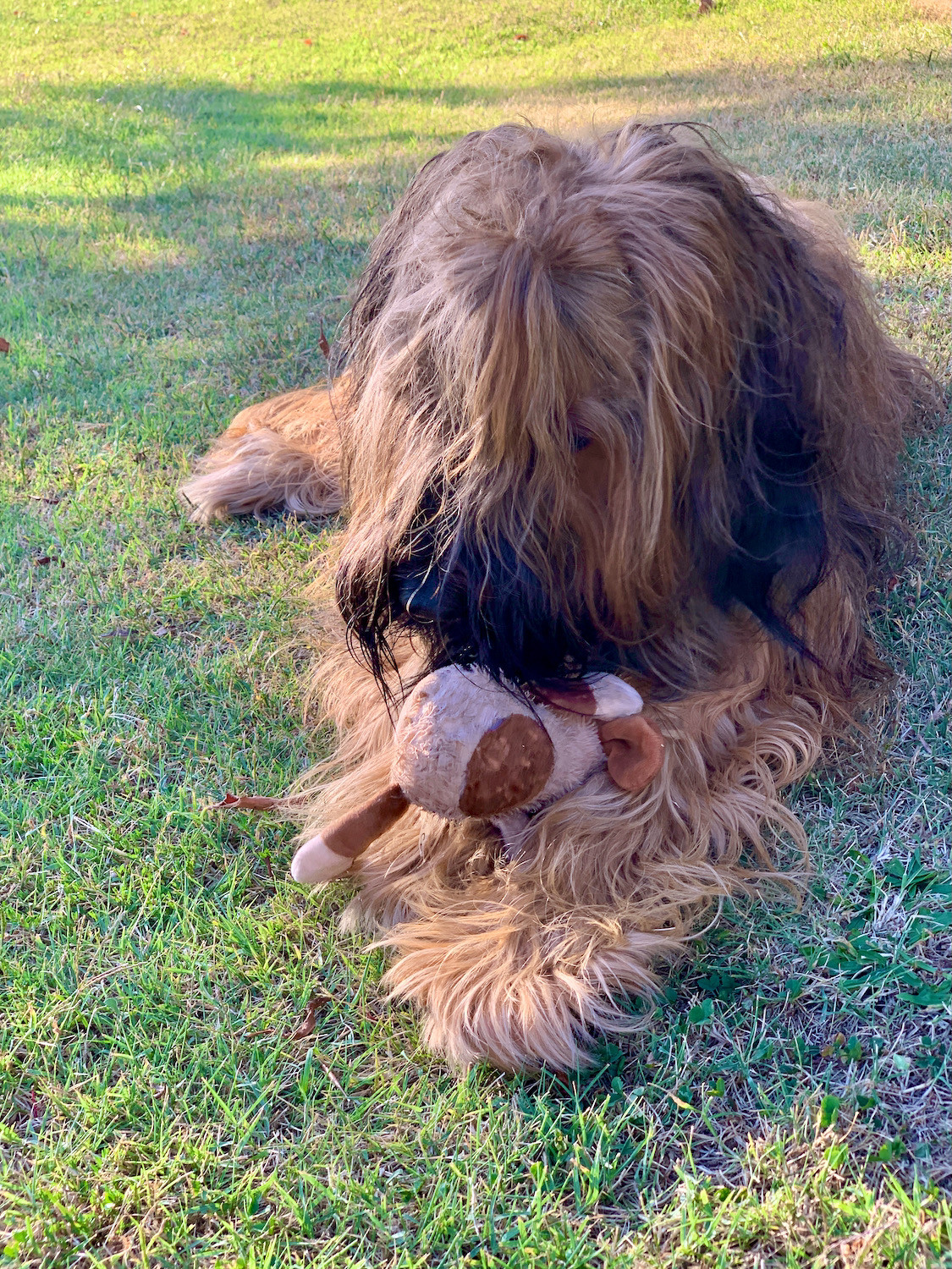 Unter uns gesagt, es quietscht nicht mehr, es piepst nur noch! Dafür wird es überall mit hingerschleppt, liebevoll beknabbert und besabbert und muss gefühlt 50x am Tag als Wurf- und Jagdobjekt herhalten.