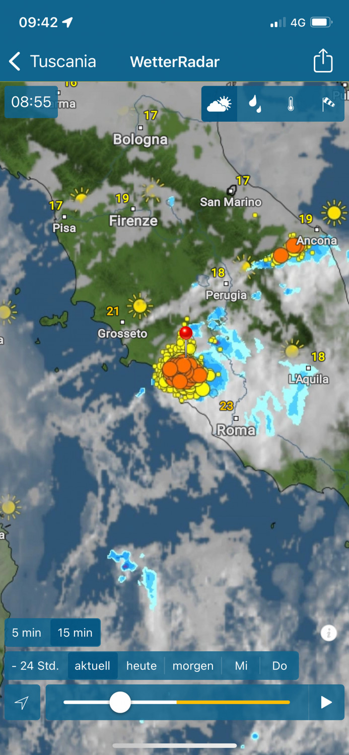 Heute Morgen tobt erst einmal ein heftiges Gewitter über uns. Als wir gegen 9 Uhr aufstehen ist der größte Spuk vorbei, doch wir haben zunächst nicht mehr überall Strom und auch kein Internet. Nach einigem Hin und Her mit unserer Vermieterin finden wir den „richtigen Schalter“ und alles funktioniert wieder, so ist auch der Reiseblog außer Gefahr.