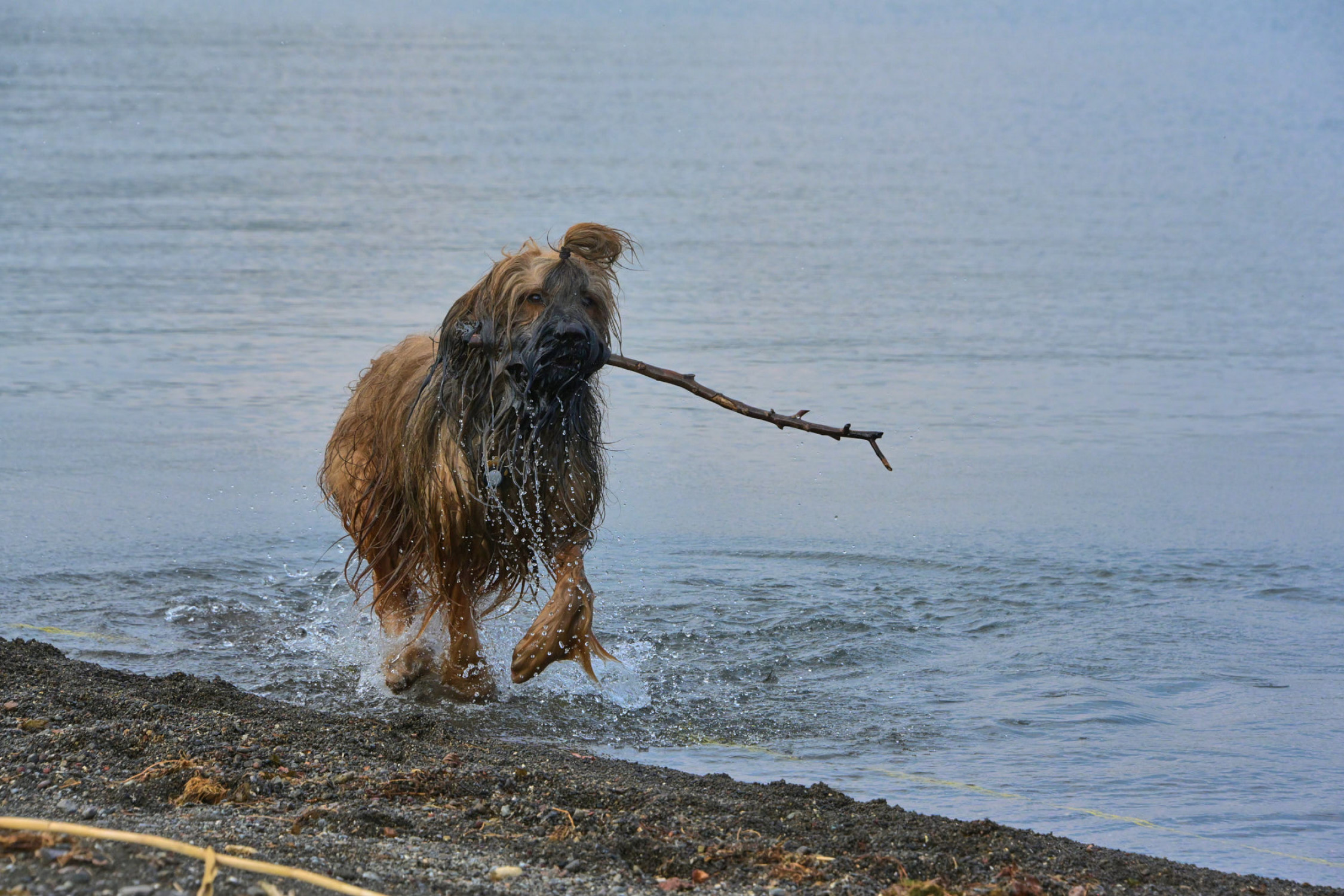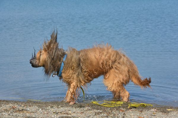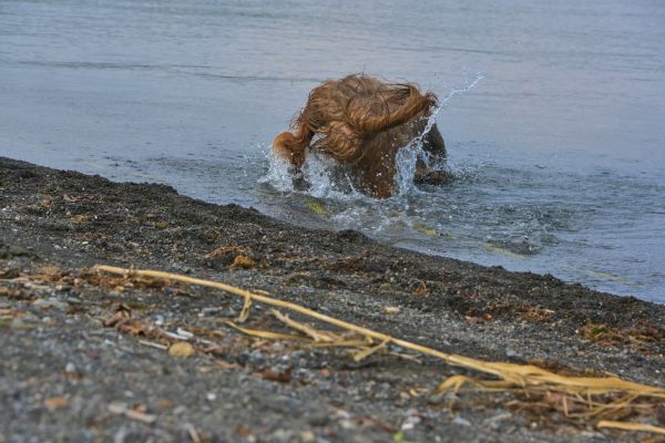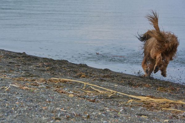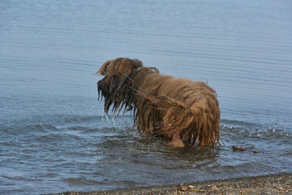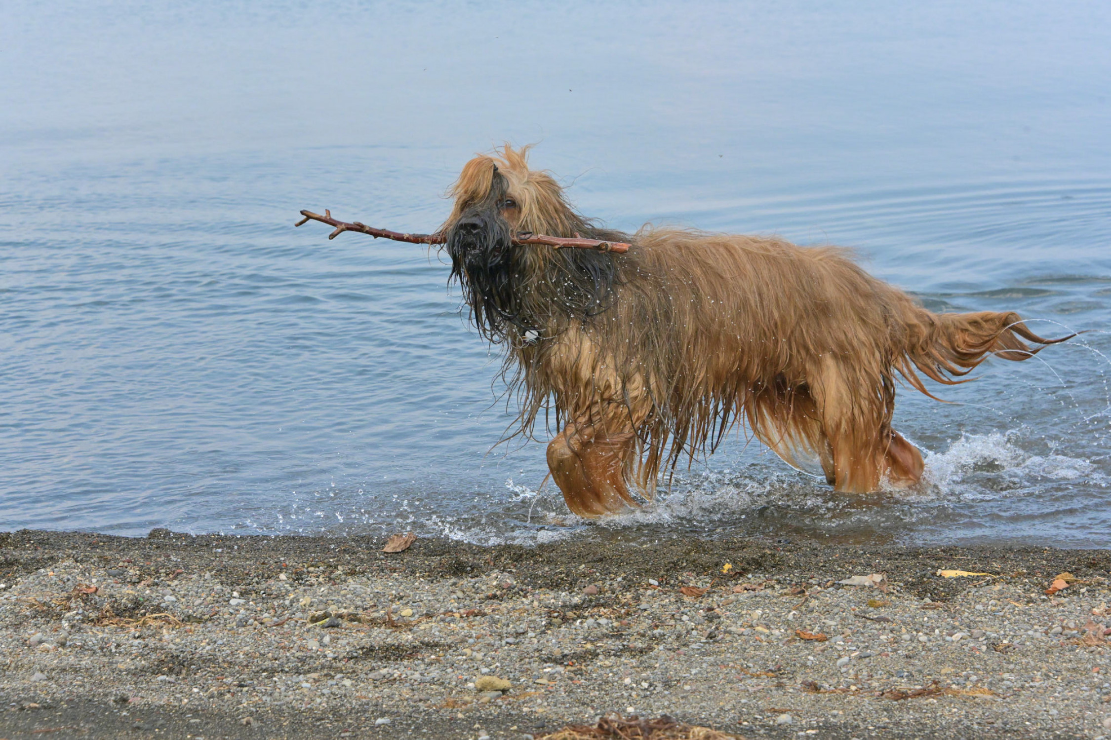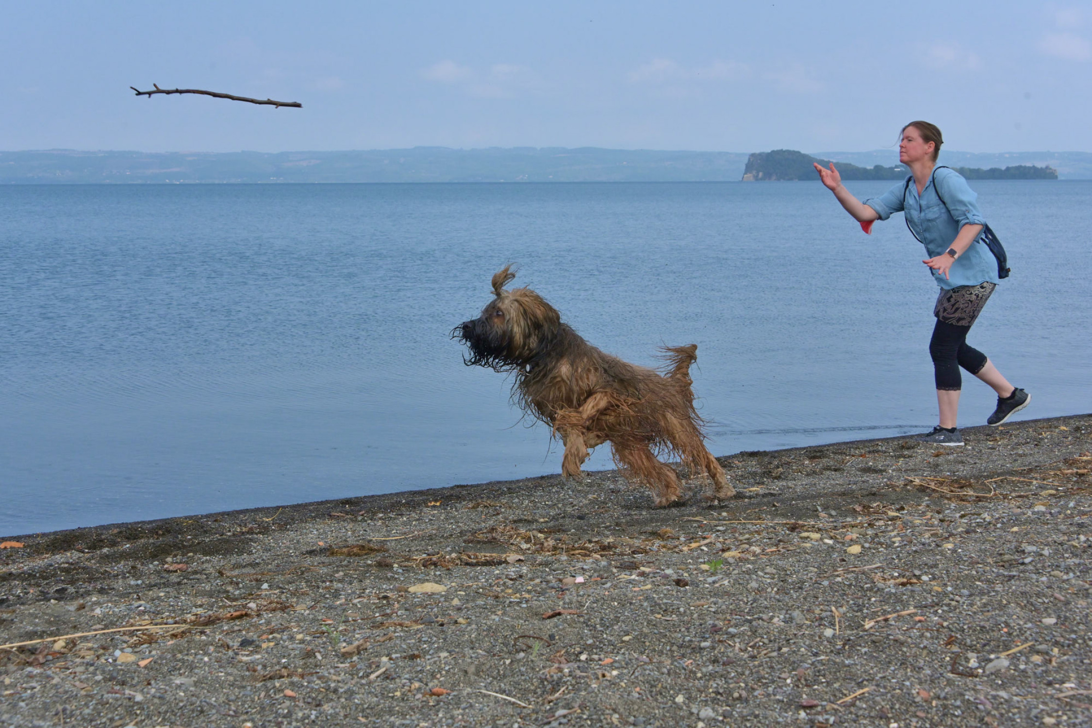 Nun müssen wir 20% Gefälle überwinden, um auf die Strandstraße und an den Strand von Capodimonte, den „Spiagga di Cavajano“ zu gelangen. Hier darf sich Archibald nach Herzenslust im See austoben, hmmm, sofern er will … Mit Hilfe des Stöckchens hat er die Vorsicht etwas überwunden und sich doch noch in die Fluten geschmissen. Herrliche Fotos!!!!!