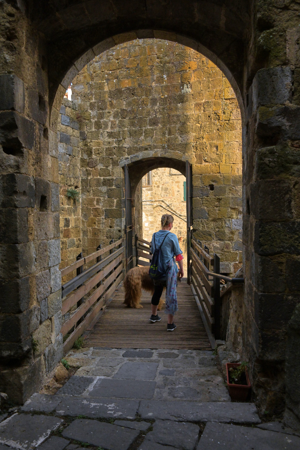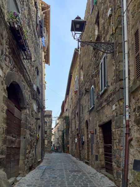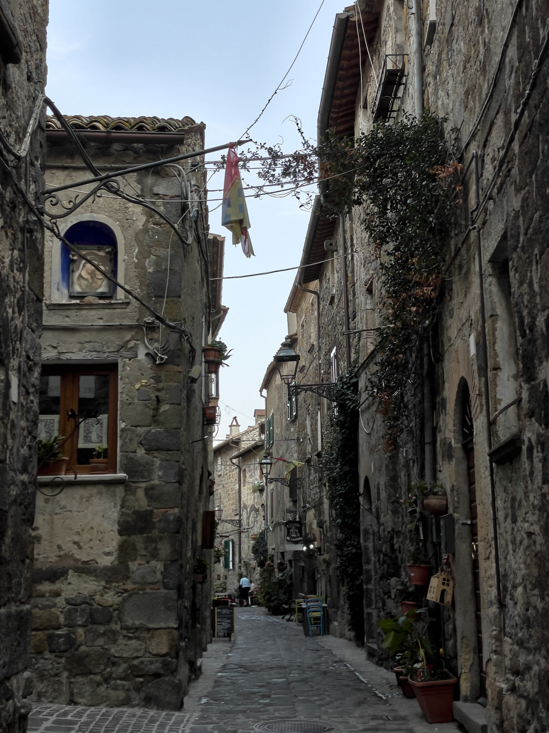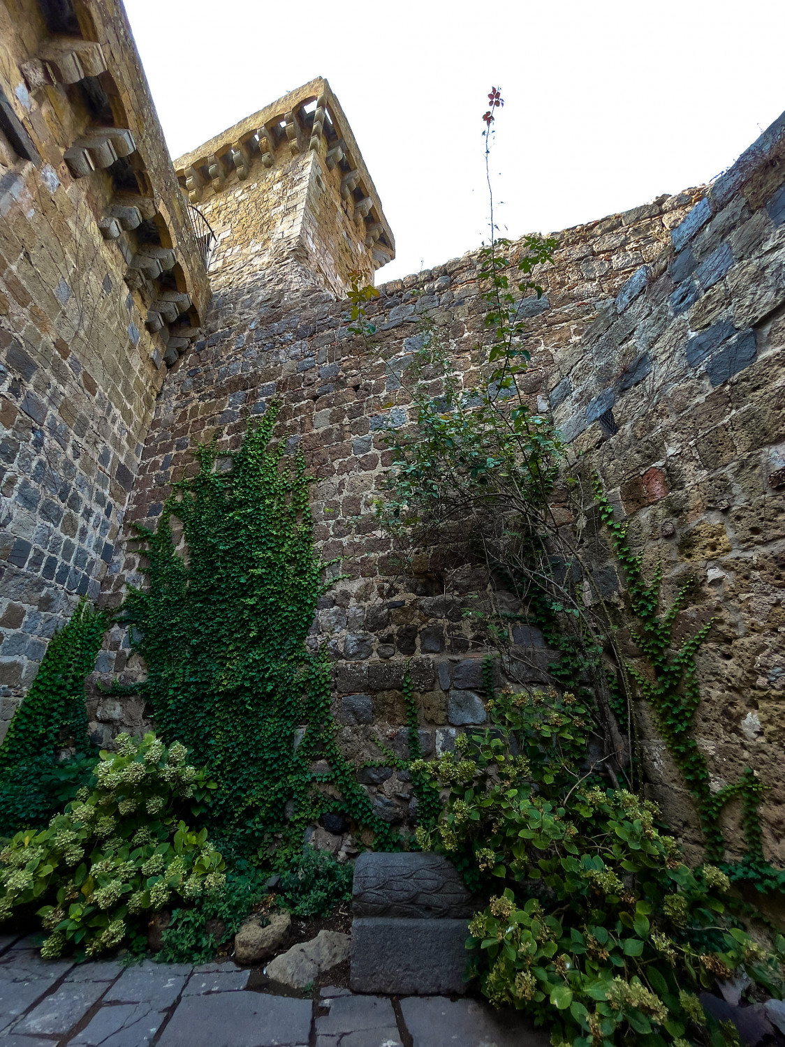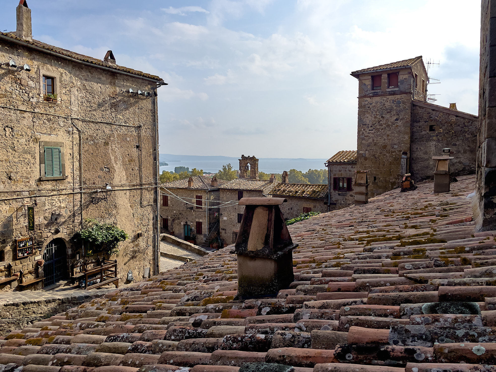 Ja, die Stadt heißt so wie der See und liegt inmitten der vulkanisch entstandenen Monti Volsini. Hier leben ca. 3.900 Menschen. Auf dem das historische Zentrum bildenden Ortshügel erhebt sich die mittelalterliche Burg, die Rocca Monaldeschi della Cervara, mit vier Rechtecktürmen. Sie beherbergt seit 1991 das Museo Territoriale del Lago di Bolsena mit etruskischer, römischer und mittelalterlicher Abteilung. Für das Museum interessieren wir uns nicht so, dafür genießen wir den tollen Ausblick über die Dächer Bolsenas auf den See und das Flair des mittelalterlichen Städtchens um so mehr. Auch hier können wir die Menschen, die uns begegnen an zwei Händen abzählen, und das sind in der Regel freundliche, entspannte Italiener. Alles wirkt weniger hektisch und sehr friedlich.