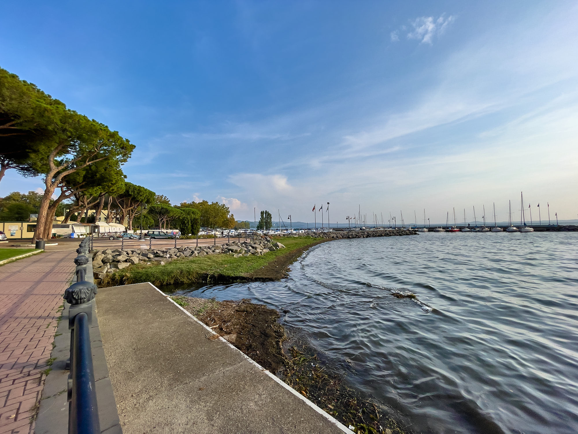 Am Bolsenasee können wir eine ganze Weile wirklich einmal direkt am Wasser entlang fahren. Und das genießen wir. Es ist herrlich hier, ja, wir überlegen schon, ob es nächstes Jahr ein Haus direkt hier am See werden sollte. Sicher ist hier im Sommer auch etwas mehr los, die Campingplätze, die Strandabschnitte mit Liegen und Sonnenschirmen, die Strandkneipen, da scheint in der Hauptsaison schon ein bisschen mehr Betrieb zu sein. Doch wir sind jetzt in der Nachsaison fast allein hier unterwegs und steuern nun das am Nordostufer gelegene Städtchen Bolsena an.