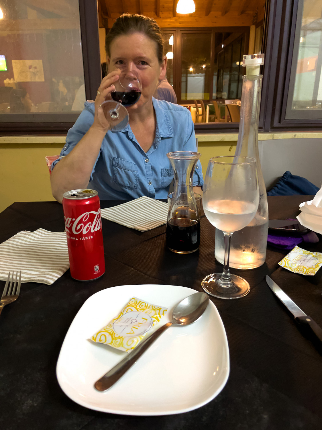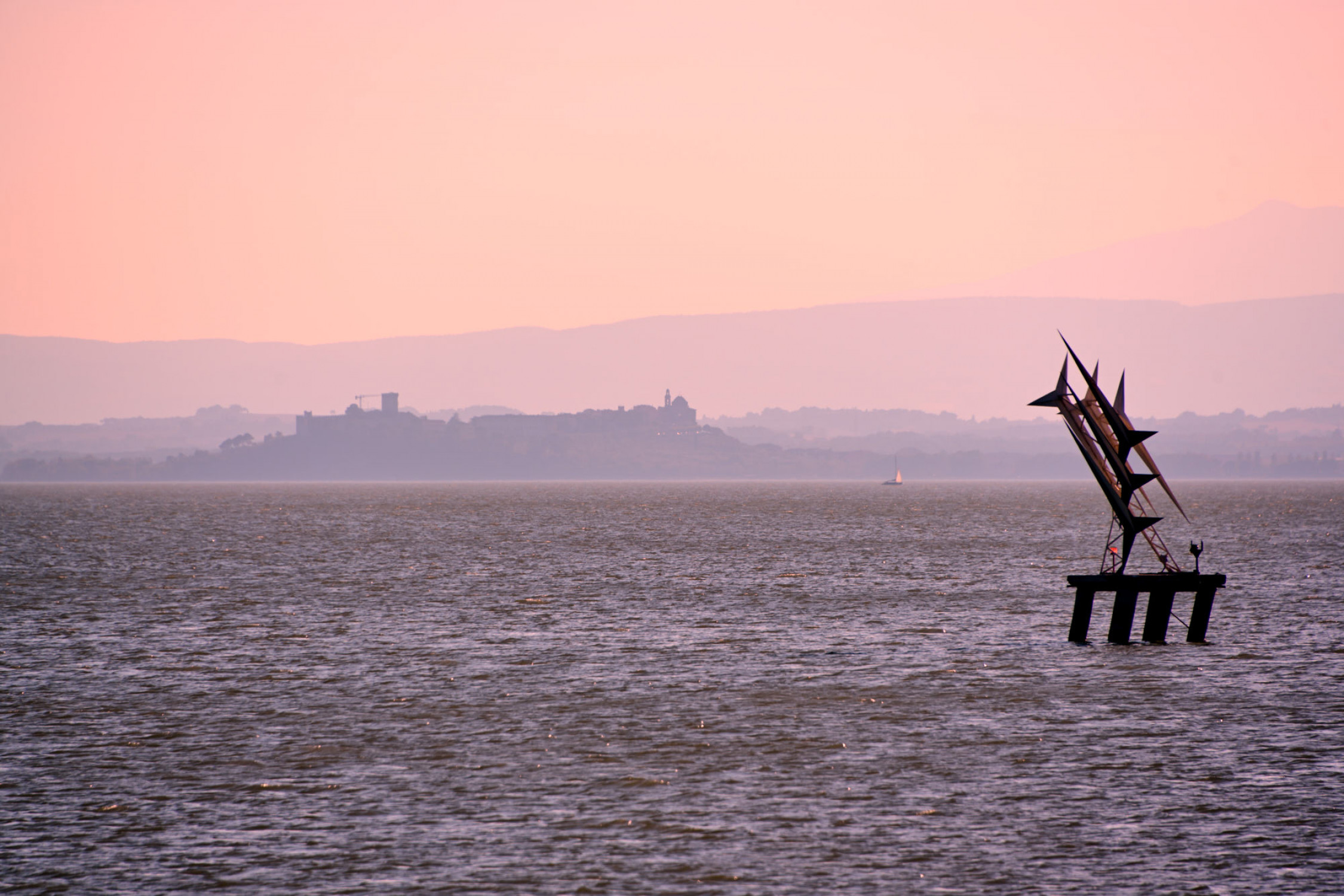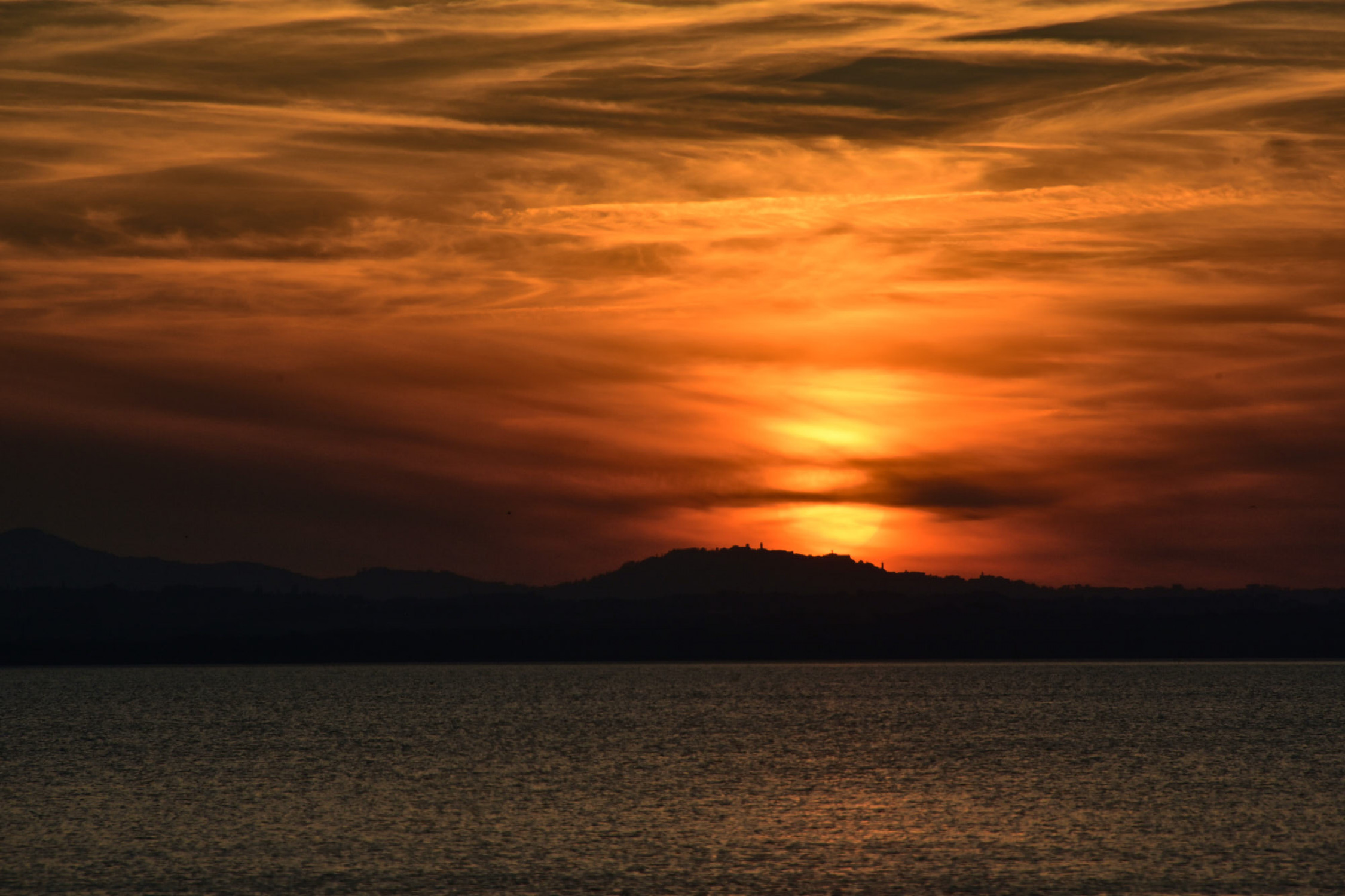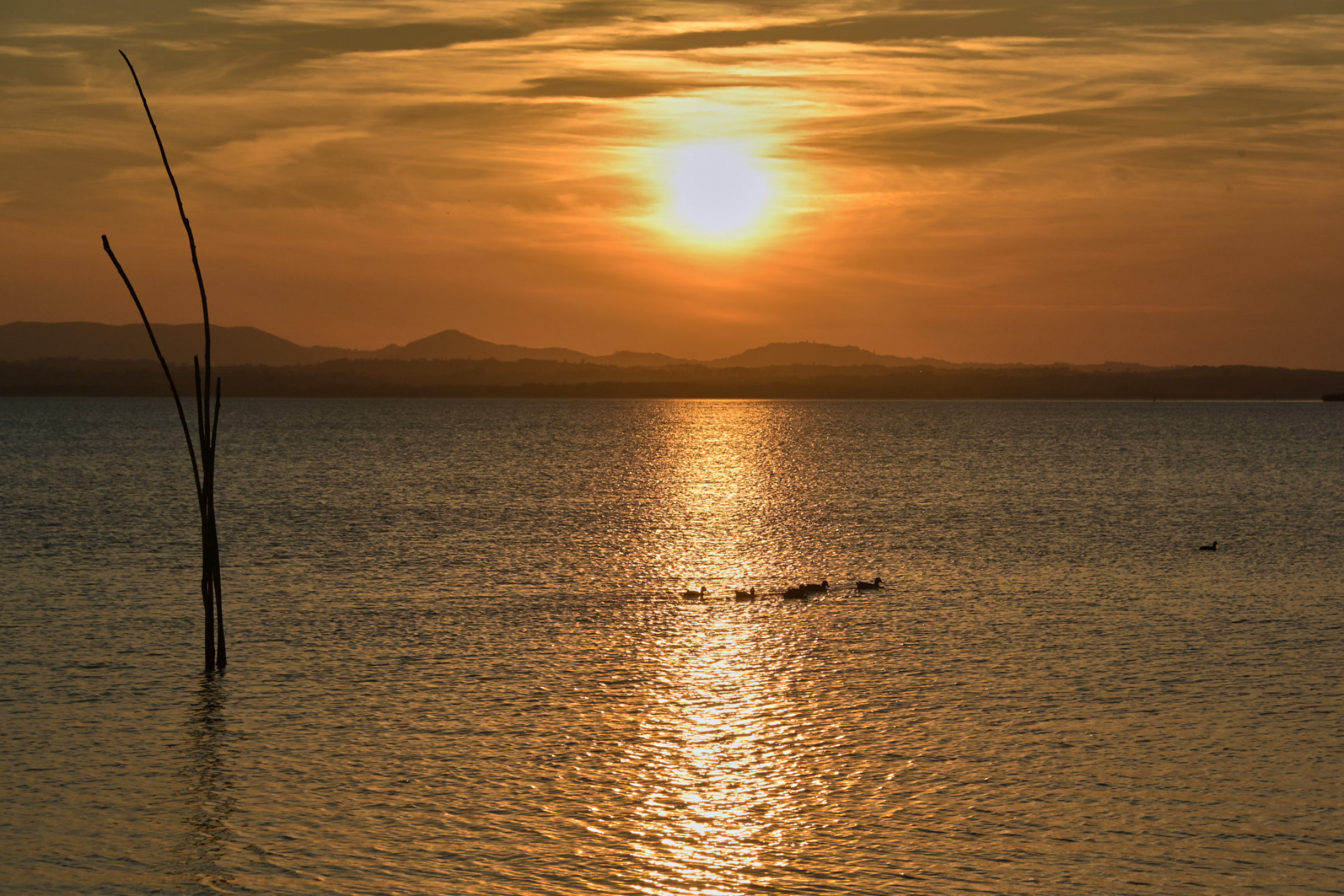 Nächster Halt „Spiaggia di Tuoro sul Trasimeno“ im Norden des Sees (2C) . Hier am Strand schlürfen wir gemütlich einen Kaffee und schauen den ganzen zwei vorhandenen Badegästen zu. Vom Anleger startet hier die Fähre zur „Isola Maggiore“. Den Skulpturenpark „Campo del Sole“ besuchen wir leider nicht, denn wir merken wieder einmal, wie die Zeit rennt und wir haben noch ein paar Stationen vor uns. Deshalb fällt der Stopp in „Passignano sul Trasimeno“, (2D) ebenfalls noch im Norden nur ganz kurz aus und auch in „Toricella“ (2E) im Osten des Sees verweilen wir nicht lang. Hier haben wir den Trasimenischen See schon im Juni besucht und im Anschluss unweit davon fürstlich gegessen. Wir schauen kurz den Windsurfern zu. Was uns aber bis hierher verfolgt ist das dreckige Wasser. Die braune Brühe, der braune Schlamm, alles immer in Ufernähe – nicht wirklich einladend. Liegt es vielleicht doch daran, dass die wenigen Zuflüsse zum See im Sommer austrocknen und kein sauberes Wasser bringen? Einen Abfluss gibt es auch nicht. Im Juni sah das Wasser noch wesentlich sauberer aus …