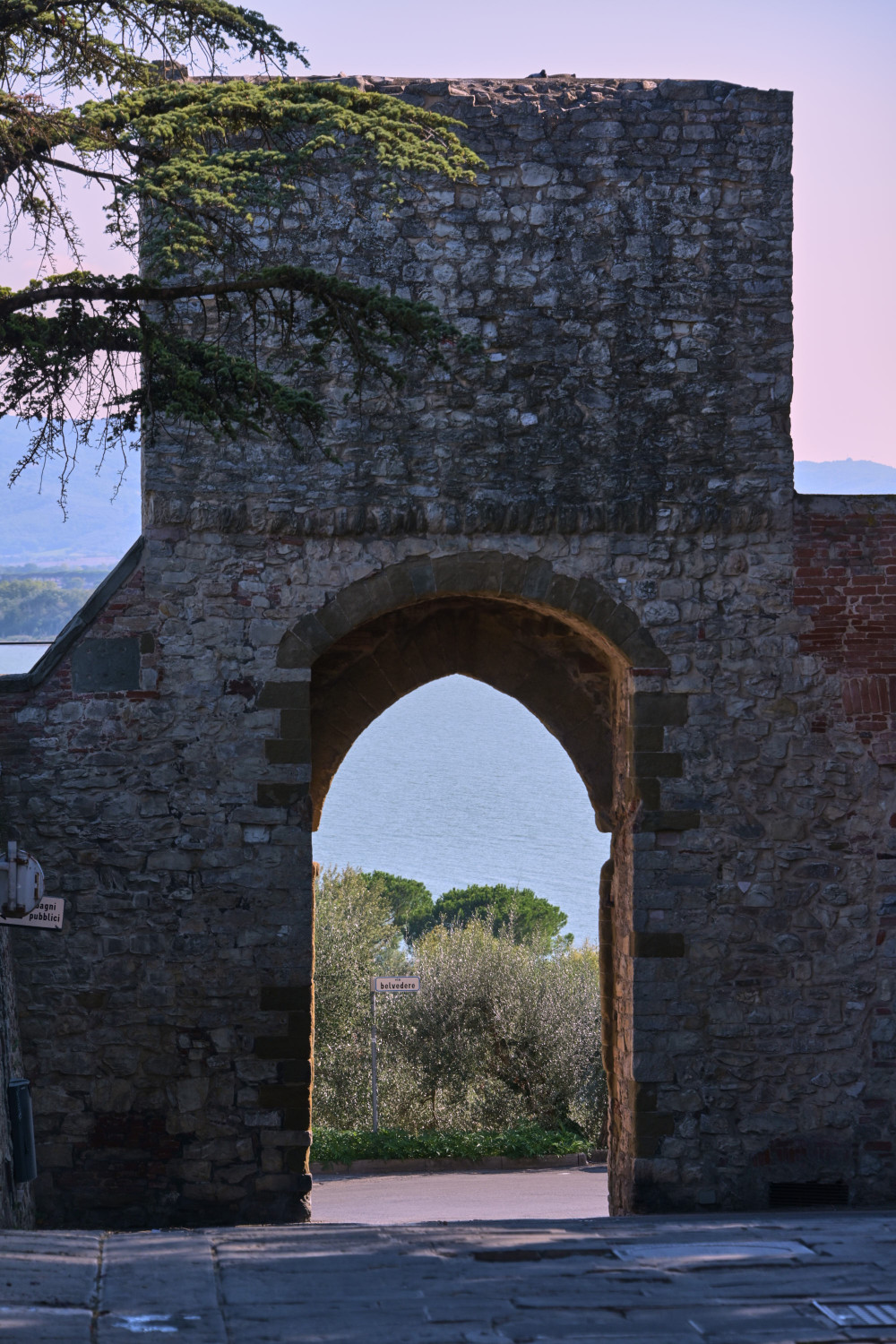 Die einzelnen Stopps sind immer nur wenige Kilometer und wenige Minuten Fahrt voneinander entfernt. Als nächstes halten wir in Castiglione del Lago (2B) im Westen an. In der Stadt leben knapp 15.400 Einwohner. Damit ist der Ort, der reichlich 300 m über dem Meeresspiegel liegt der größte am See. Die Festung ist hier das eigentliche Highlight, der Blick auf den See wenig eindrucksvoll.