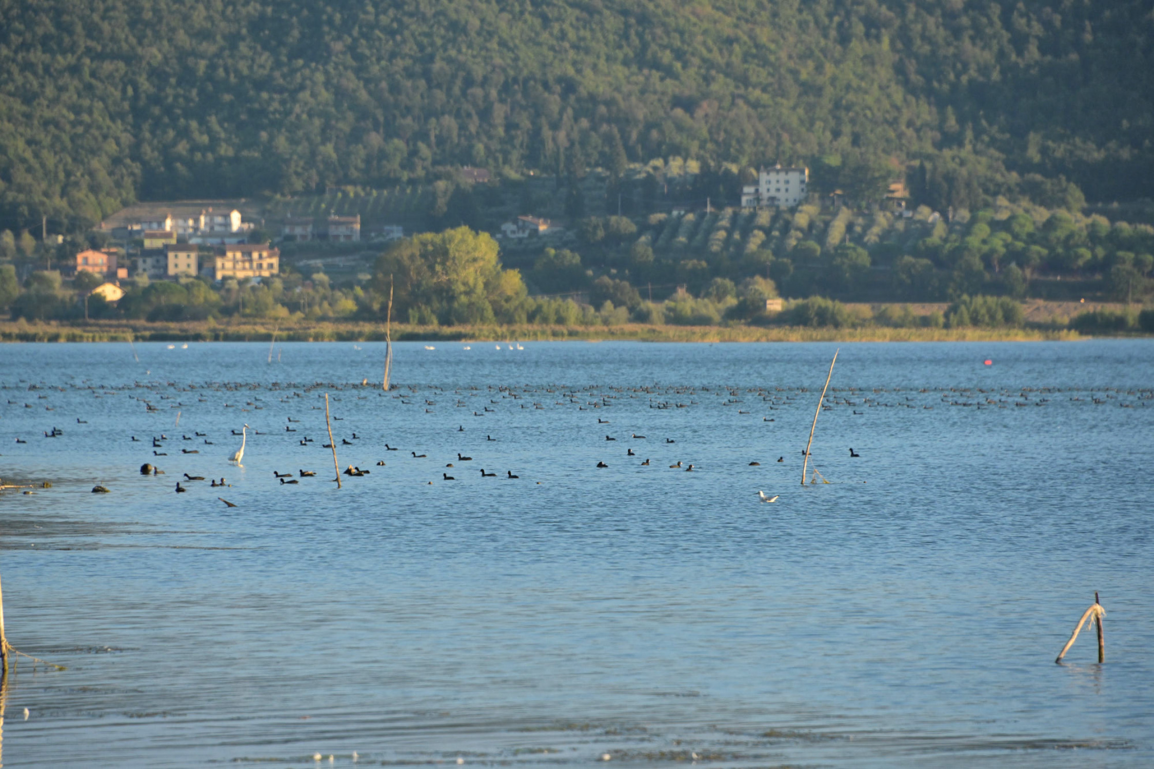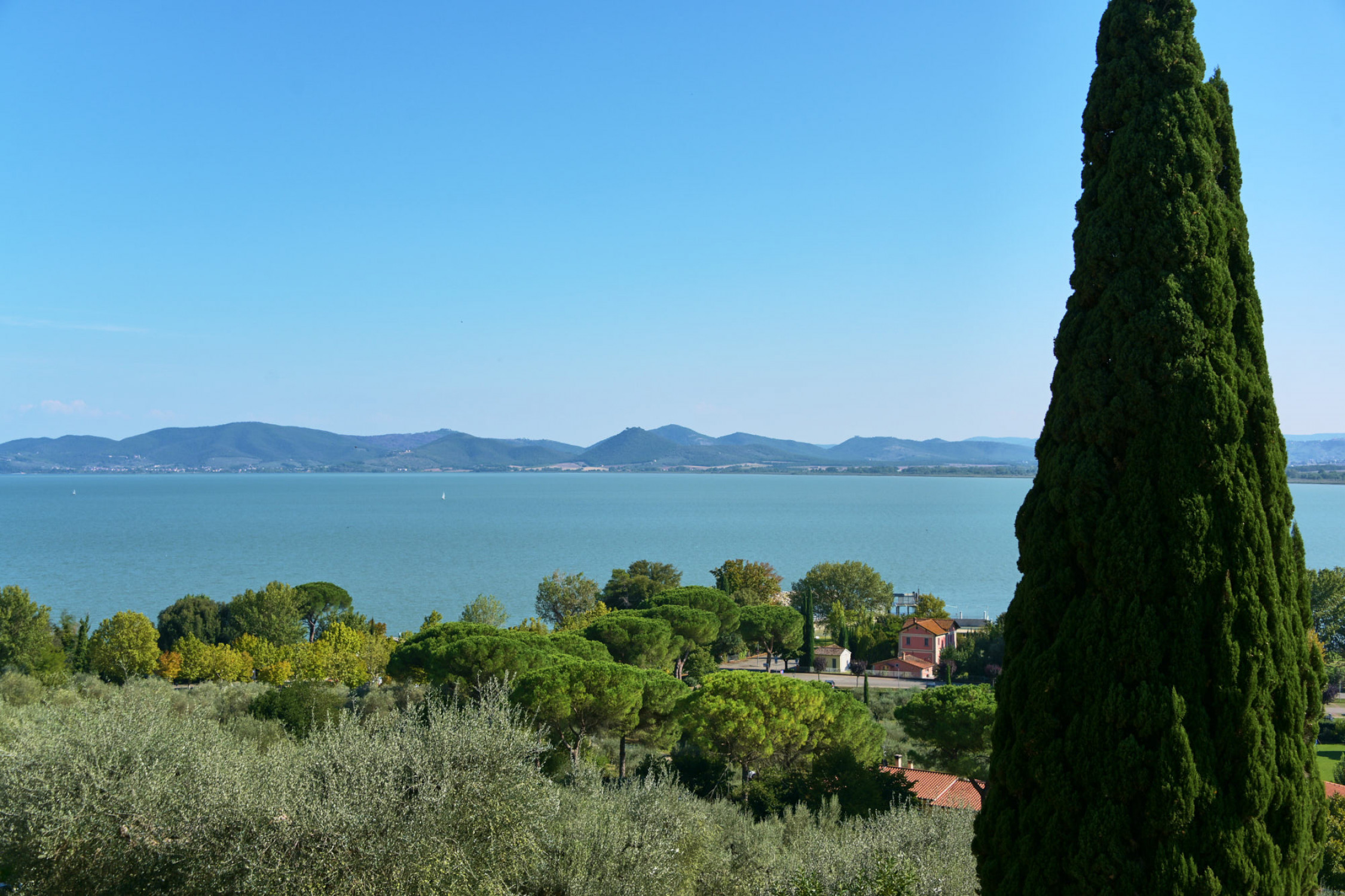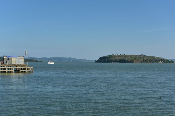 Der Blick auf und über den See mit seinen drei Inseln ist fantastisch. Die Isola Maggiore im Norden des Sees ist bewohnt, allerdings leben hier nur noch eine Handvoll Leute, die vom Tourismus und vom Fischfang leben. Auf den anderen beiden Inseln lebt niemand, die Isola Polvese ist ein Naturschutzgebiet und darf noch nicht einmal betreten werden. Die Isola Minore, die kleinste der drei Inseln, ist in Privatbesitz. Die 5 Hektar große Insel ist dicht bewaldet mit Steineichen und Pinien uns sie beherbergt eine Brutkolonie Kormorane.