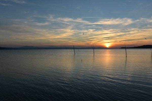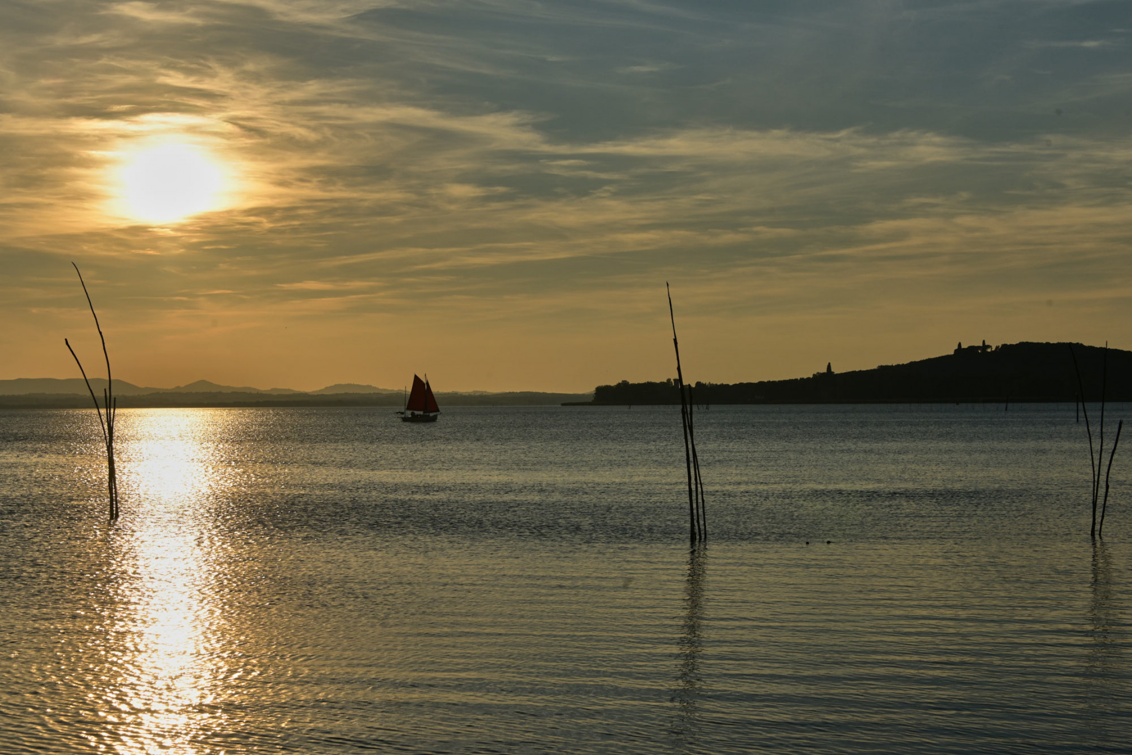 Der Trasimenische See (ital. Lago Trasimeno) ist mit 128 km² und einem Umfang von 54 Kilometern der größte See der Apenninhalbinsel und der viertgrößte Italiens. Er liegt in der Region Umbrien westlich von Perugia 259 Meter über dem Meeresspiegel, ist umgeben von bis zu 600 Meter hohen Bergen und ist bis zu 7 Meter tief. 18 Fischarten leben im See. In den Dörfern am Ost- und Südufer ist der Fischfang noch immer eine wichtige Erwerbsquelle. (Quelle Wikipedia)