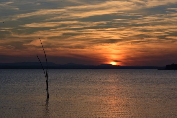 San Feliciano (2F) am Südostufer des Sees wird unser letzter Stopp. Hier, endlich im sauberen Wasser, steht schon unser Empfangskommando, bestehend aus Nutria und Enten zur Begrüßung bereit. Wir finden zunächst ein gemütliches Plätzchen, an dem wir den Sonnenuntergang genießen. Die Fotos sind so schön, die Entscheidung, welches wir nehmen und welches nicht, fällt uns richtig schwer. So seht ihr einfach alle.